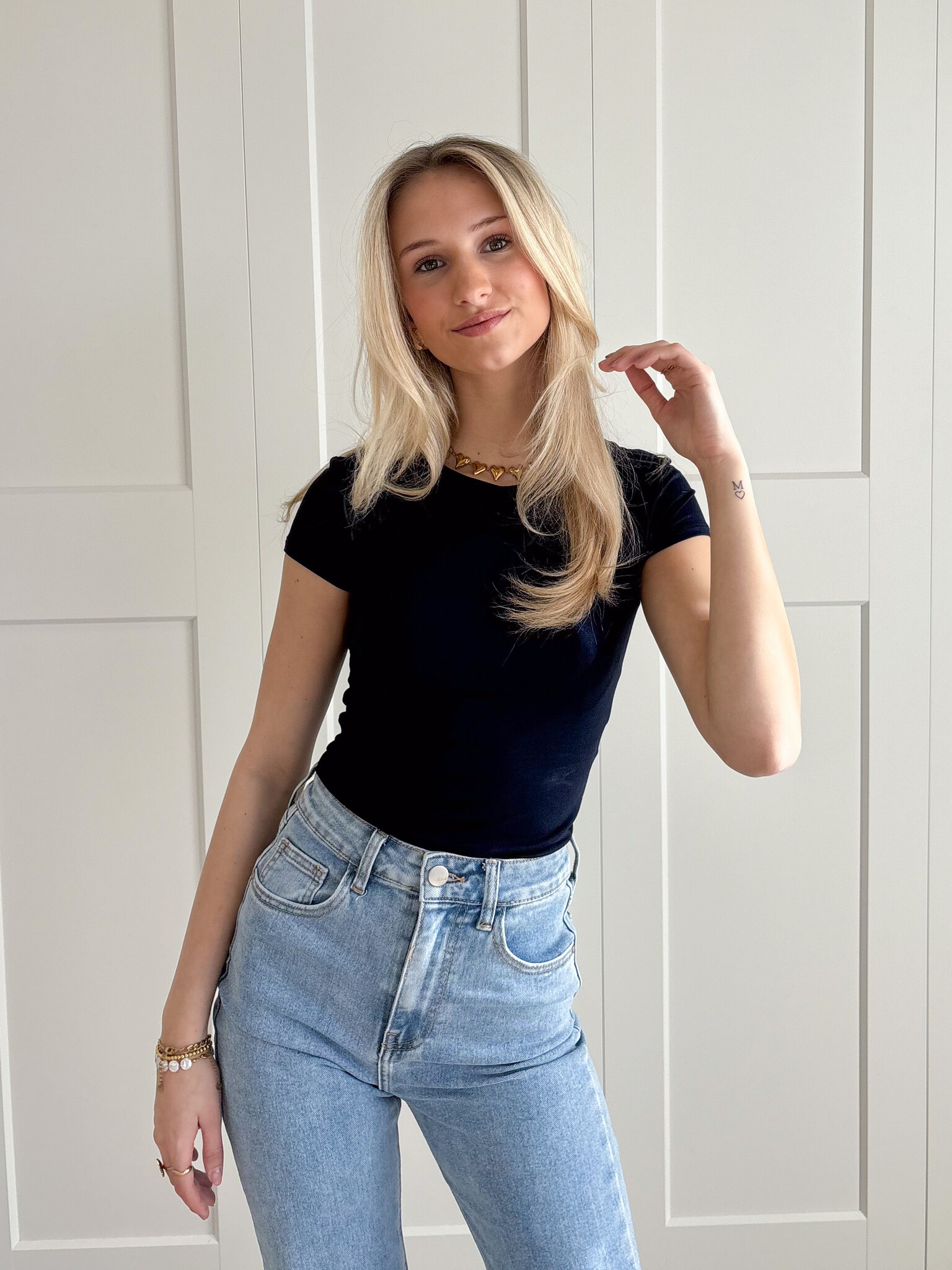 Deze basic top past overal perfect bij en maakt de outfit af! De top heeft een fijne strecht en sluit daardoor goed aan, is dubbel gevoerd en schijnt niet door. Je shopt dit topje in meerdere kleuren!