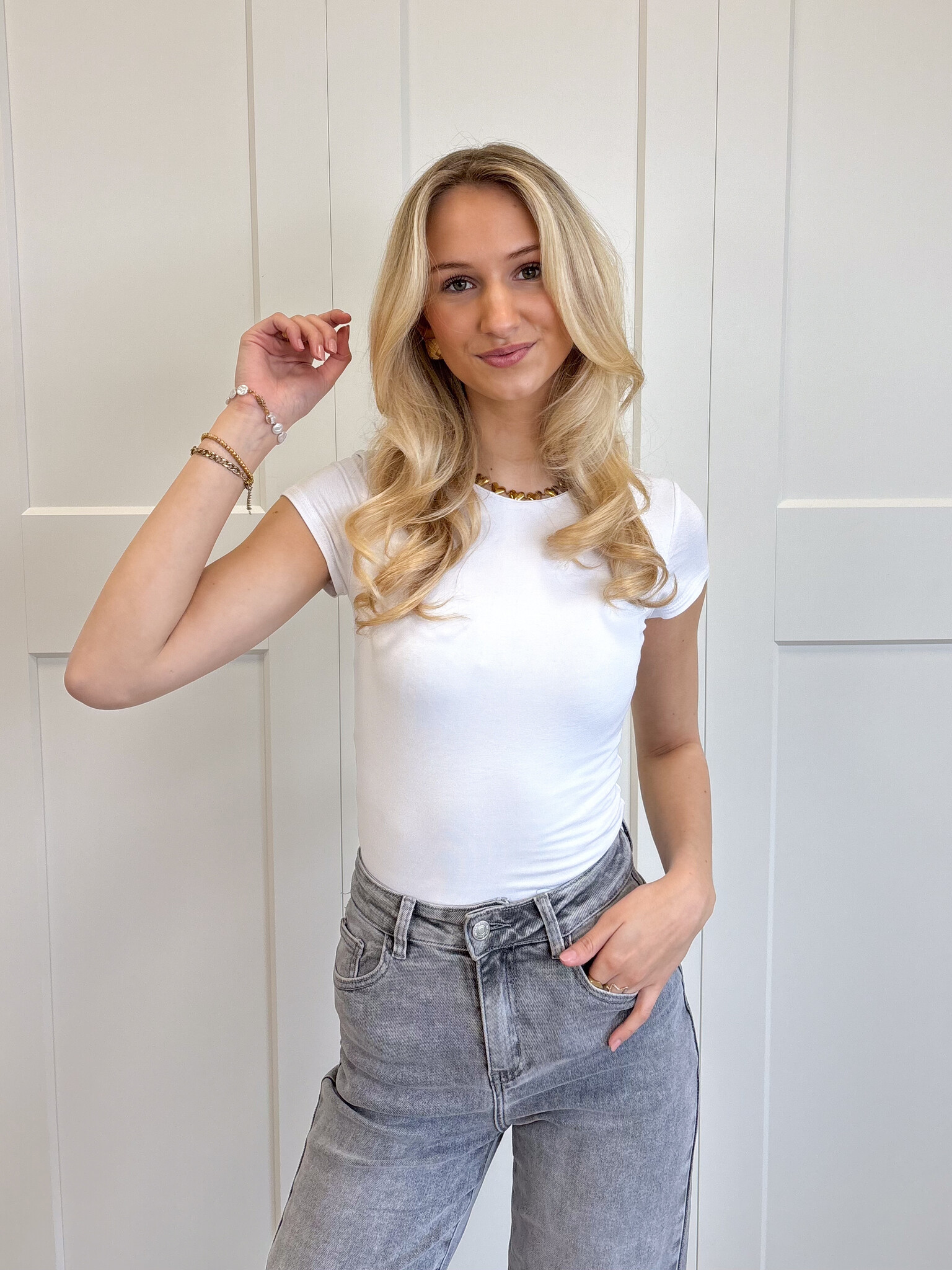 Deze basic top past overal perfect bij en maakt de outfit af! De top heeft een fijne strecht en sluit daardoor goed aan, is dubbel gevoerd en schijnt niet door. Je shopt dit topje in meerdere kleuren!