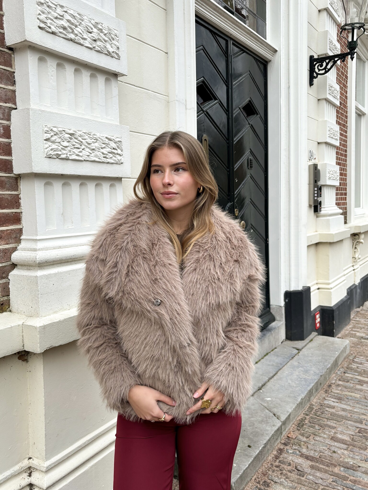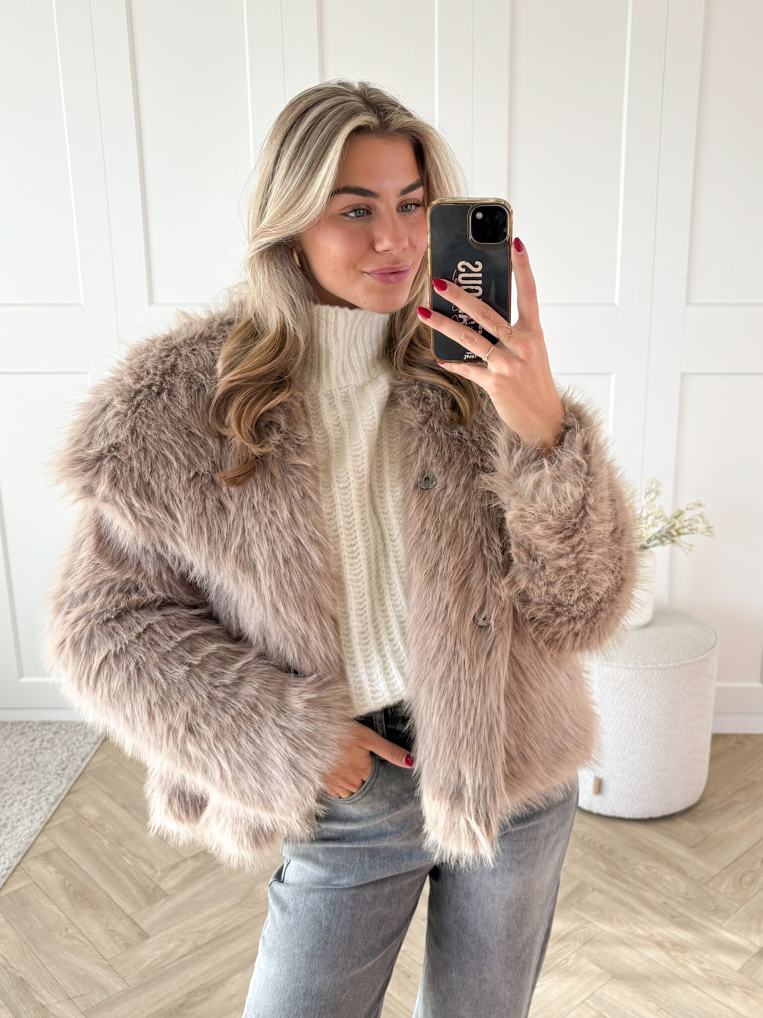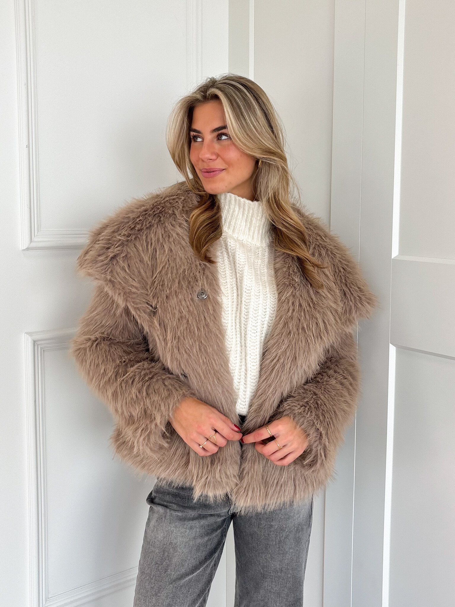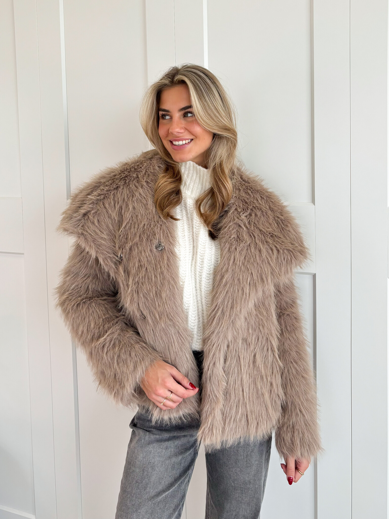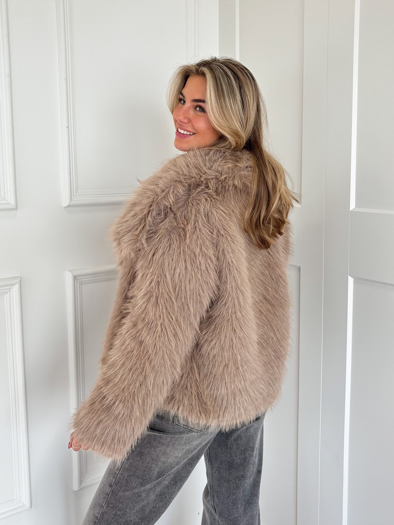 Jas van nepbont taupe