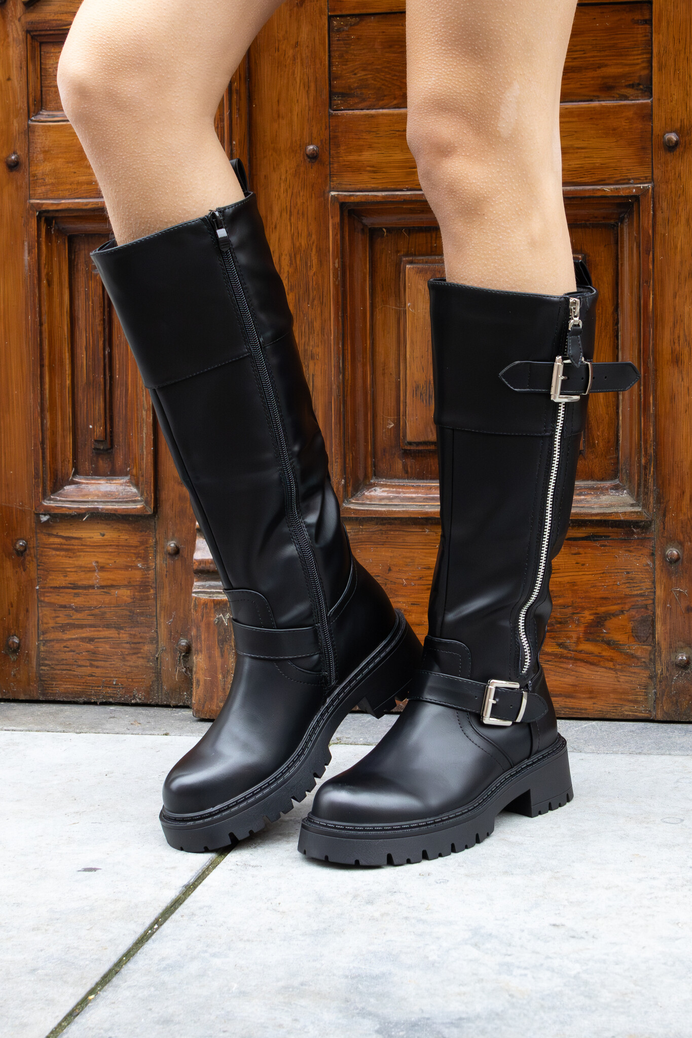 Deze biker boots zijn echt een eye catcher! Aan de zijkant van de laars zit een gesp, waardoor het een stoere look geeft. Fashion tip... combineer het met een oversized blazer en een shortje. Deze boots zijn echt een musthave voor een dagje festival om je outfit helemaal fashionable af te stylen!