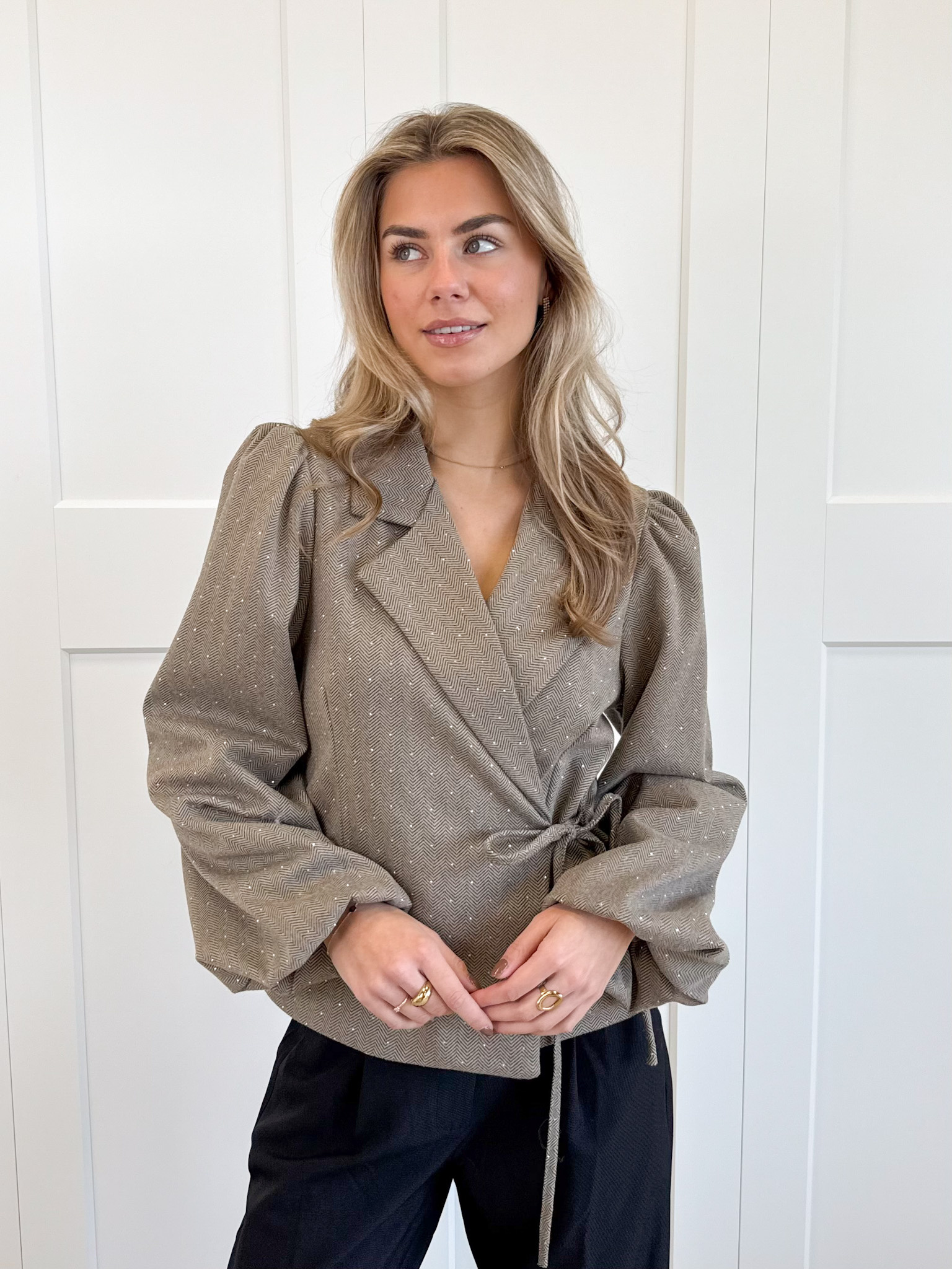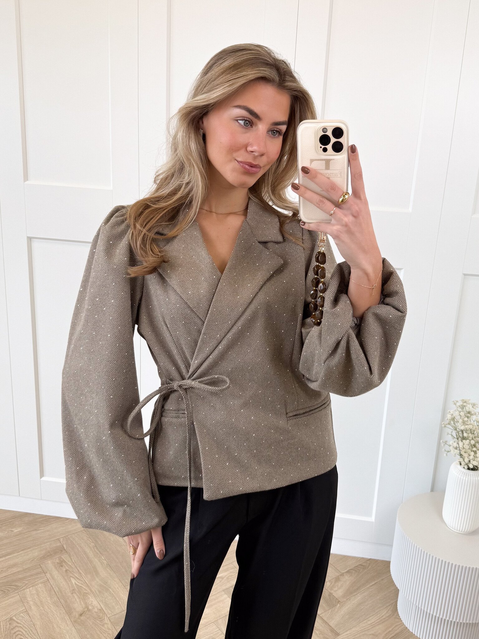 De blazer met glitter steentjes is niet te missen in deze collectie! De blazer heeft super leuke glitter steentjes wat de blazer helemaal party proof maakt! De blazer is echt een eye-catcher dus echt perfect voor de feestdagen die er weer aankomen of voor een avondje uit! De blazer met glitter steentjes is verkrijgbaar in 3 verschillende kleuren. Namelijk in het lichtgrijs, taupe en donkergrijs!
