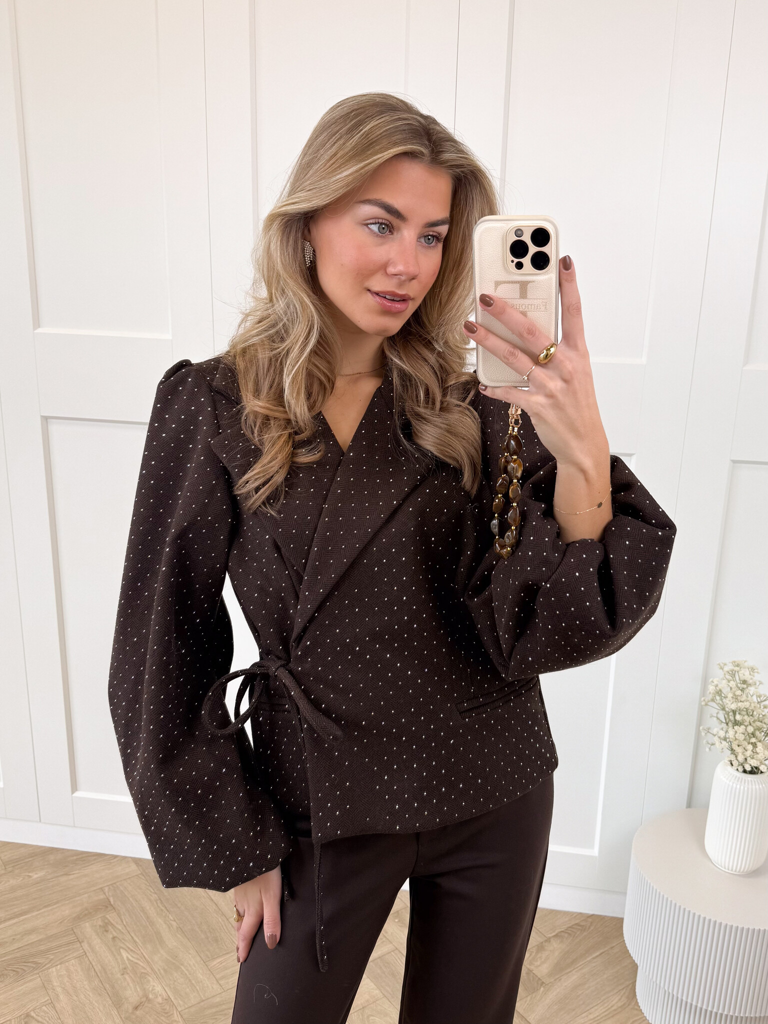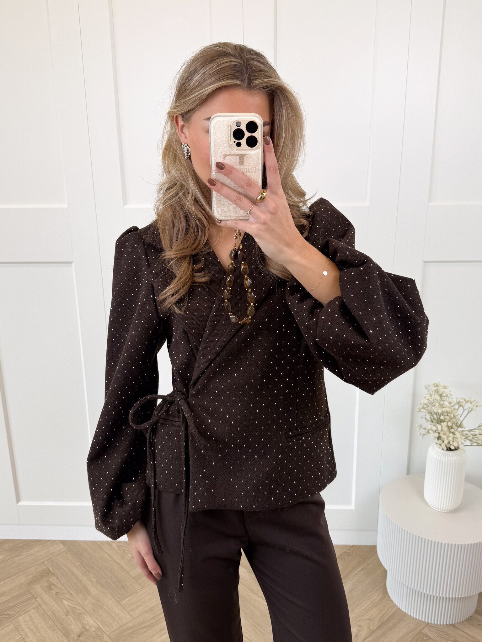 De blazer met glitter steentjes is niet te missen in deze collectie! De blazer heeft super leuke glitter steentjes wat de blazer helemaal party proof maakt! De blazer is echt een eye-catcher dus echt perfect voor de feestdagen die er weer aankomen of voor een avondje uit! De blazer met glitter steentjes is verkrijgbaar in 3 verschillende kleuren. Namelijk in het lichtgrijs, taupe en donkergrijs!