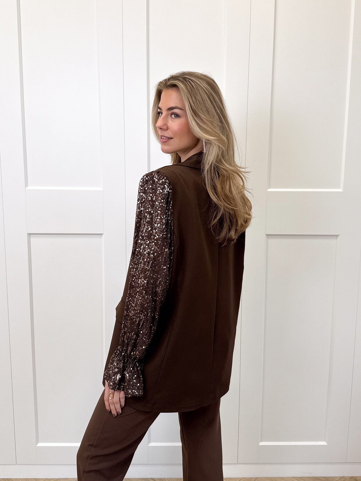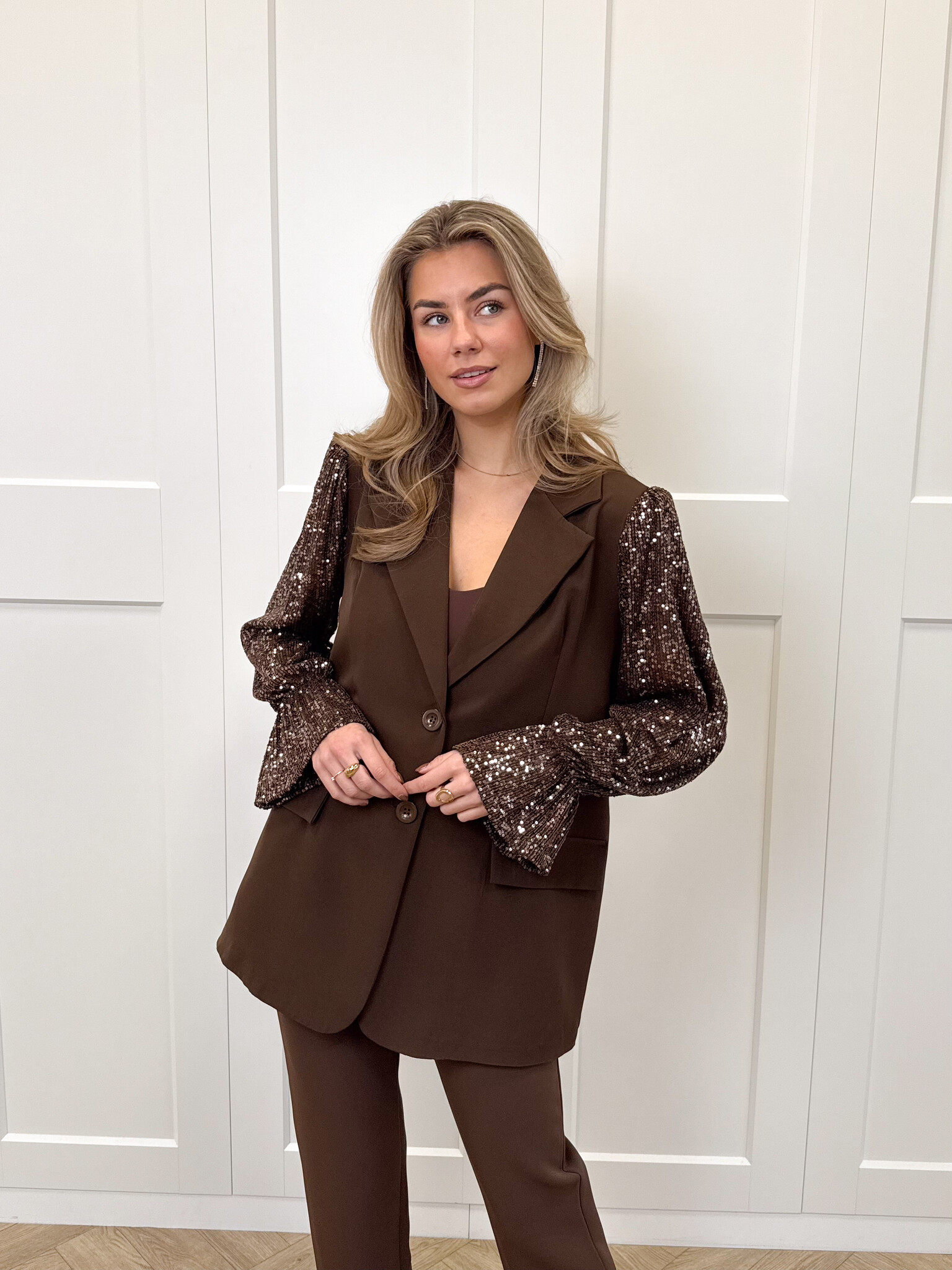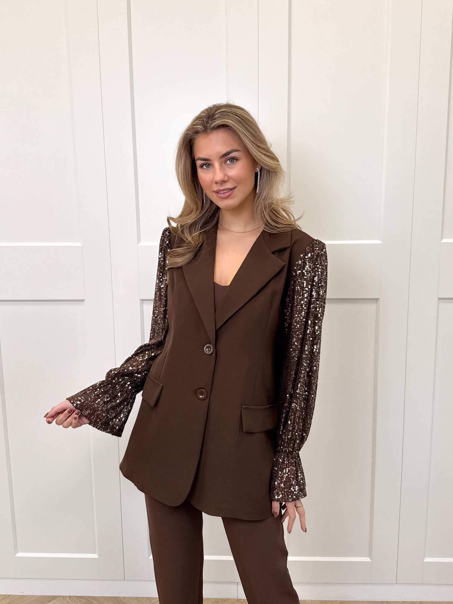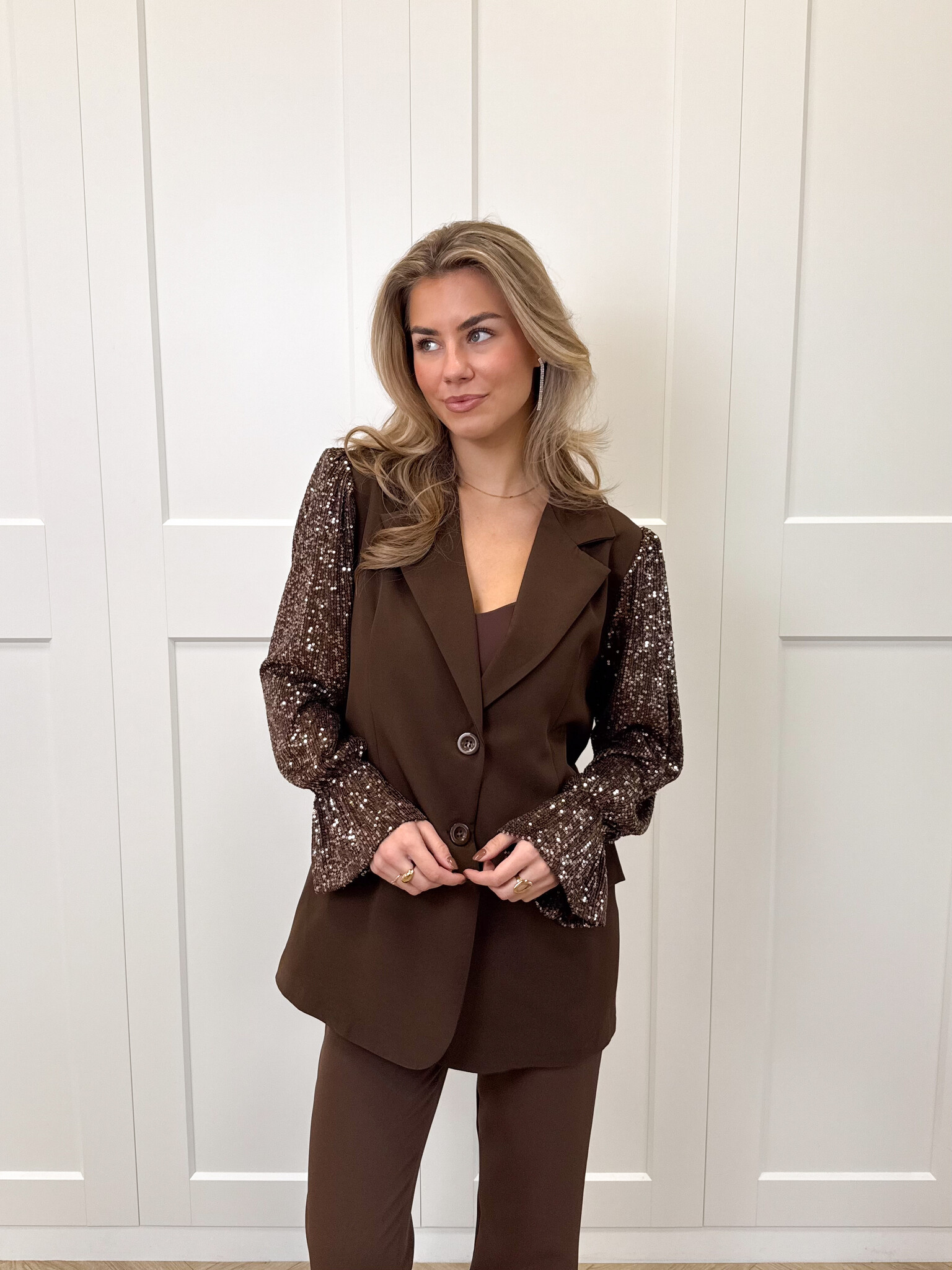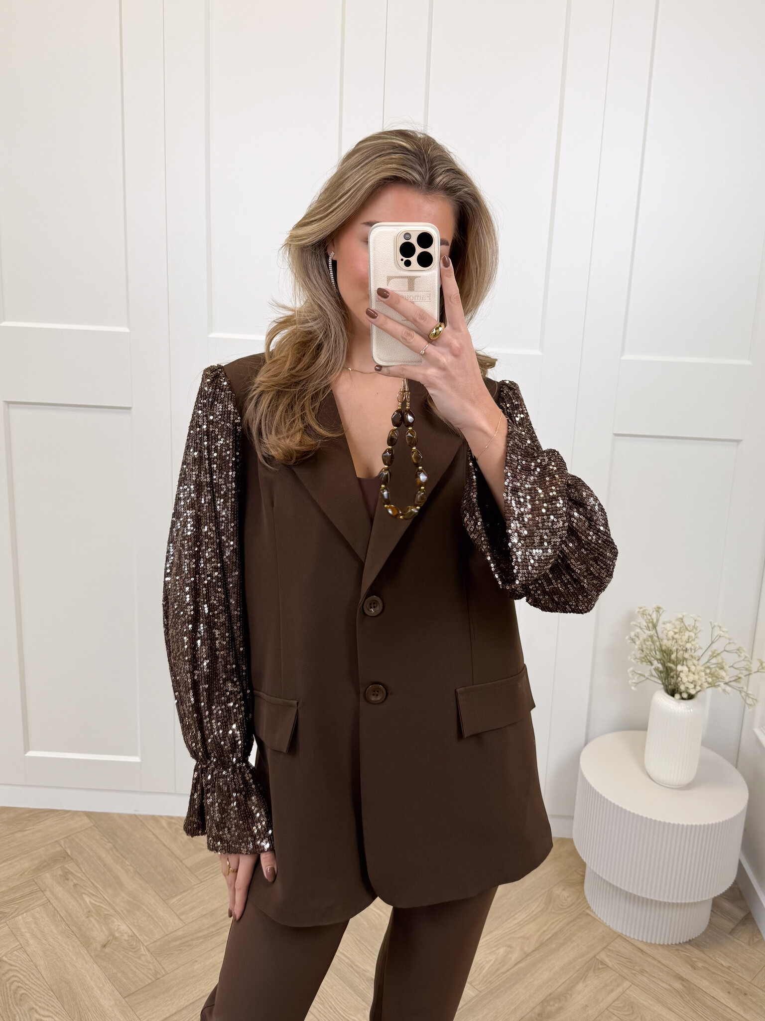 Deze blazer is een echte eyecatcher binnen de party collectie. De mouwen, versierd met pailletten en glitterdetails, geven een doorzichtige sparkle look die je outfit direct een glam boost geeft. De flair aan de mouwen zorgt voor een speelse, vrouwelijke beweging bij elke stap die je zet. De knopen aan de voorkant geven een chique, klassieke touch, terwijl de sierzakken het geheel een luxe uitstraling geven. Perfect om te dragen over een simpele top, een glitterjurk of een stijlvolle pantalon. Of je nu naar een feestelijke dinner, girls night of holiday event gaat: deze blazer tilt je look moeiteloos naar high-glam niveau. Comfortabel, stijlvol en onweerstaanbaar sparkly. Dé must-have voor vrouwen en meiden die houden van een mix van classy & shine.