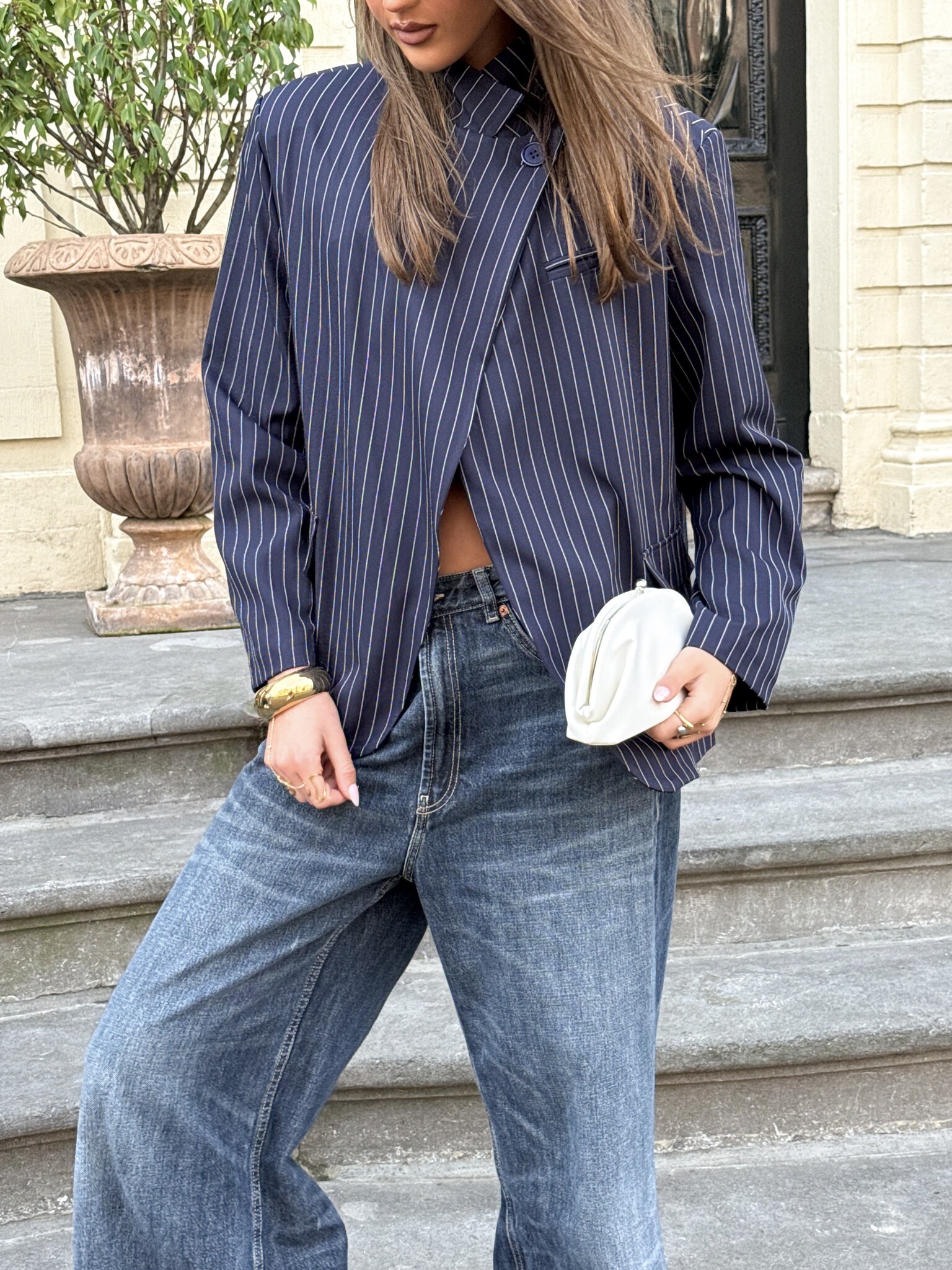 Deze gestreepte blazer is de perfecte mix tussen classy en modern. Het model heeft één knoop aan de bovenkant waardoor je ‘m subtiel kunt sluiten, maar ook supermooi open kunt dragen voor een effortless vibe. De sierzakken aan de voorkant geven een stijlvolle touch en maken het geheel net wat speelser. De fijne pasvorm zorgt ervoor dat hij mooi valt zonder te strak te zitten. Combineer met een pantalon voor een power look of draag ‘m casual op een jeans met sneakers. Ideaal voor werk, een meeting, diner of een stijlvolle dag in de stad. Een echte wardrobe essential.
