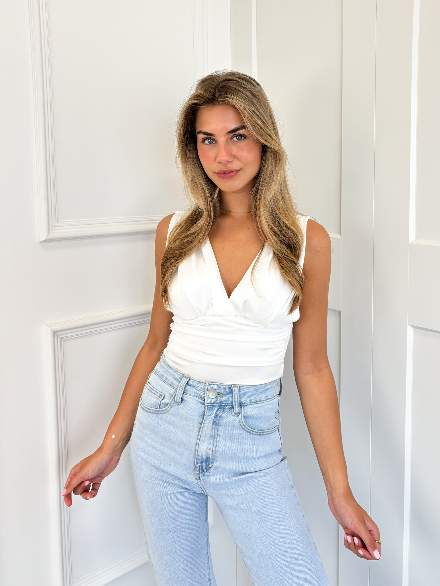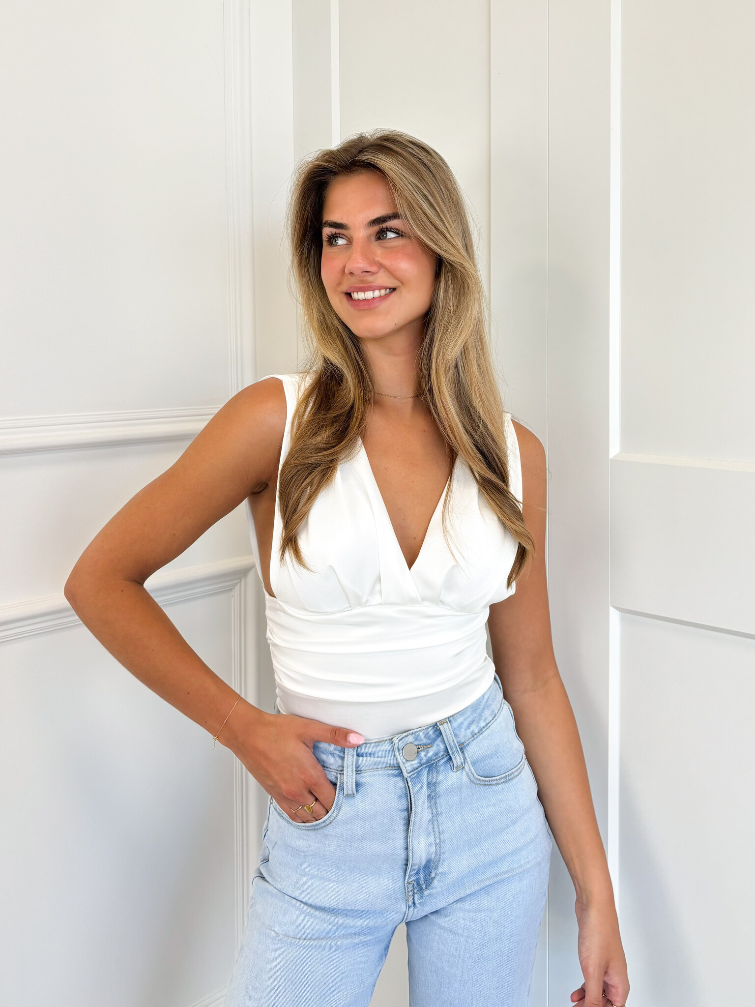 Meiden.... hoe perfect is deze body! Een prachtige satijnen look stofje met een echte chique uitstraling. Het zit heerlijk door de stretch en sluit daardoor perfect aan. No worries voor zichtbare bh bandjes, want er zit namelijk al pads in de top. Een echte summer musthave die je shopt in meerdere kleuren!