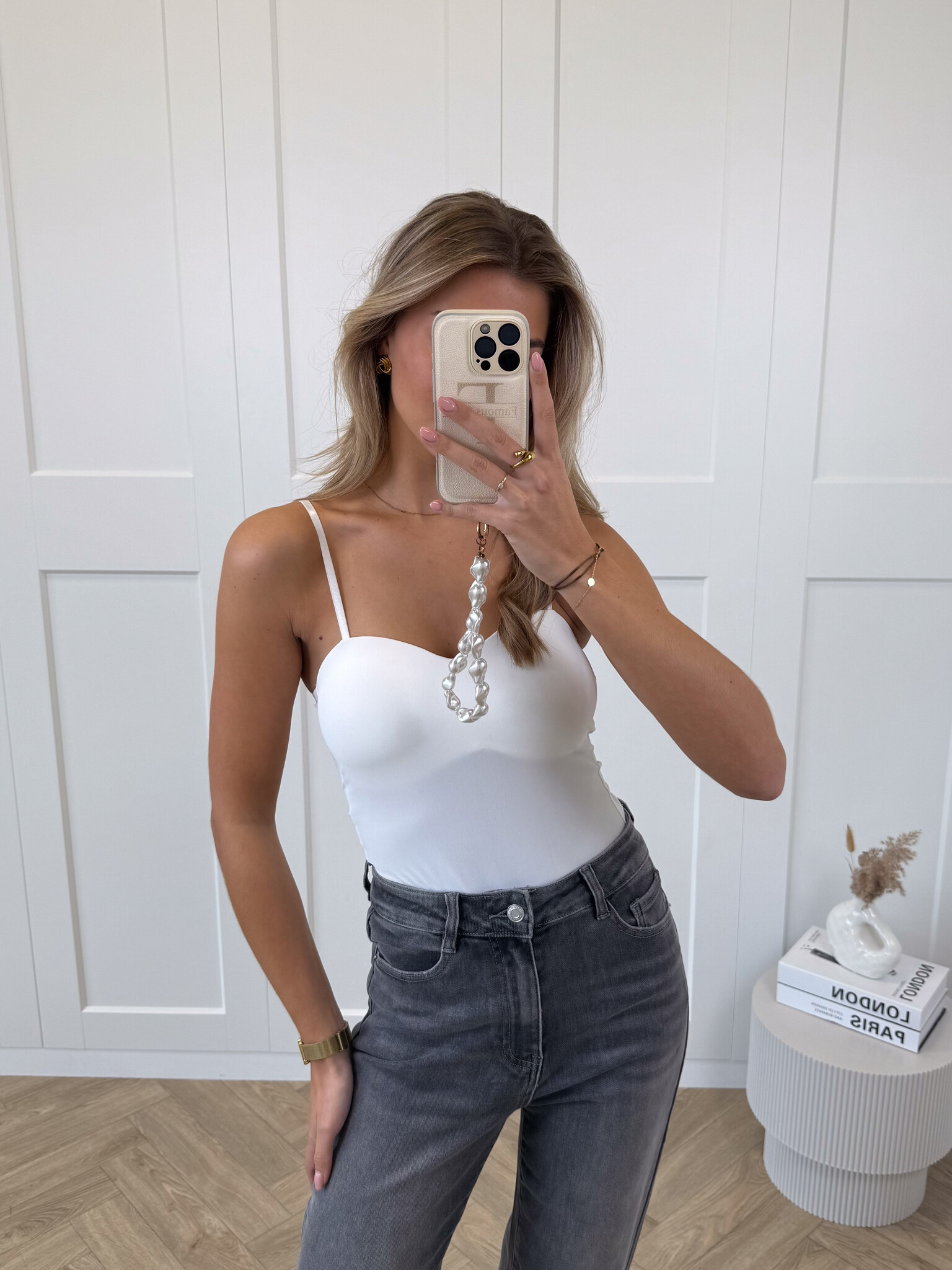 Deze prachtige body is het perfecte item voor elke vrouw die houdt van een elegante en vrouwelijke uitstraling. Dankzij de voorgevormde cups biedt hij een mooie ondersteuning en creëert hij een natuurlijk gevormd silhouet. De verstelbare bandjes zorgen voor de ideale pasvorm, terwijl de sluiting aan de onderkant praktisch en comfortabel is. De zachte, elastische stof vormt zich subtiel naar je lichaam en benadrukt je rondingen op een flatterende manier, zonder in te leveren op draagcomfort. Draag hem onder een blazer of blouse voor een classy outfit, of combineer hem met een jeans voor een meer casual, maar toch verfijnde look. Deze body is een absolute essential die elke outfit naar een hoger niveau tilt.