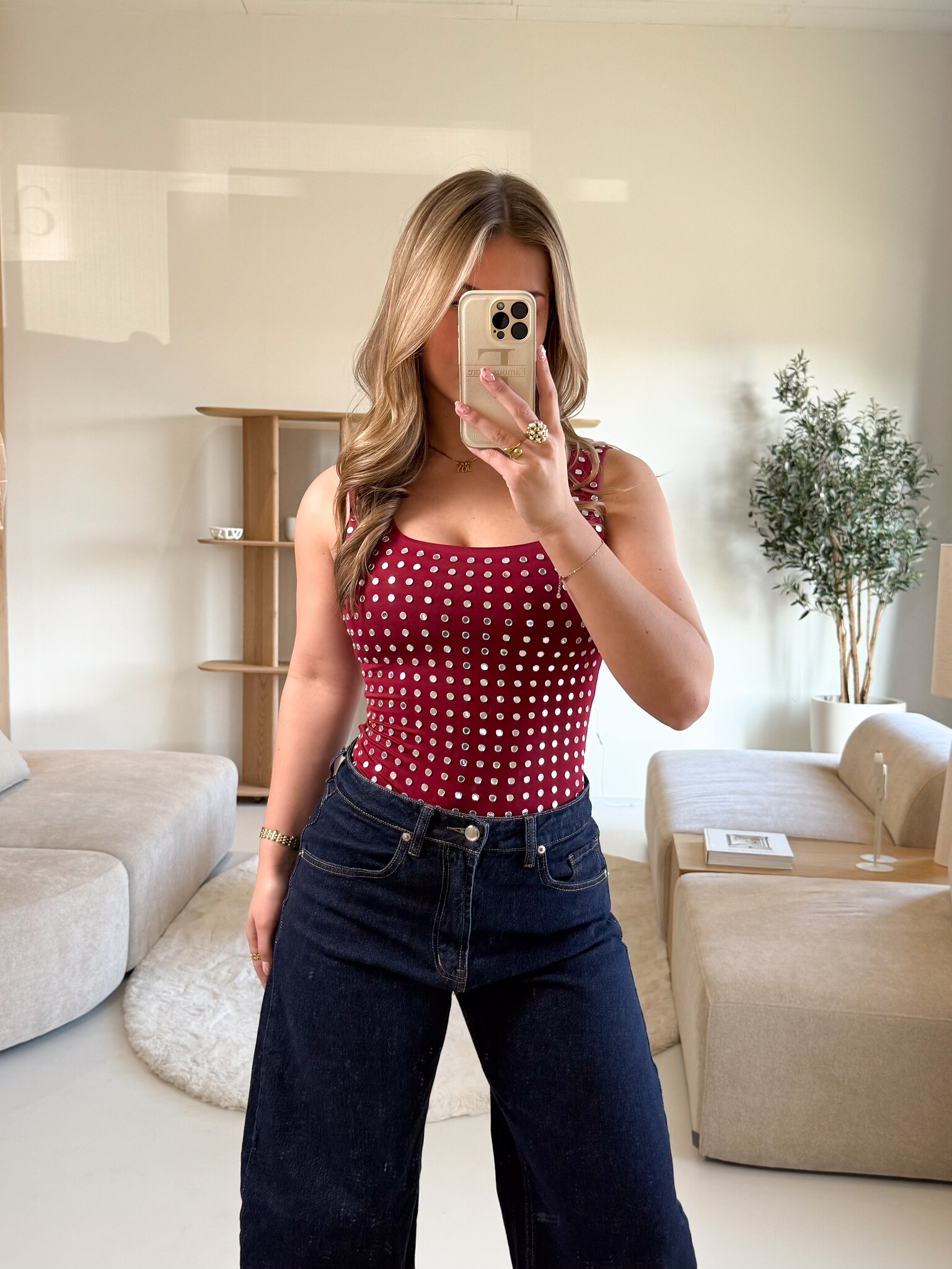 Deze body is perfect voor girls die houden van een statement look. De vierkante hals zorgt voor een vrouwelijke en trendy uitstraling, terwijl de studs een stoere, feestelijke touch geven. Dankzij de stretchstof sluit de body mooi aan op je lichaam en zit hij comfortabel, ook tijdens een lange avond uit. De pasvorm accentueert je silhouet en blijft goed op zijn plek, ideaal om te combineren met een high waist jeans, rok of pantalon. Of je nu naar een feestje, een clubnight of een avondje cocktails gaat, met dit item steel je gegarandeerd de show. Selena combineert girly vibes met een edgy twist en maakt elke party outfit compleet.