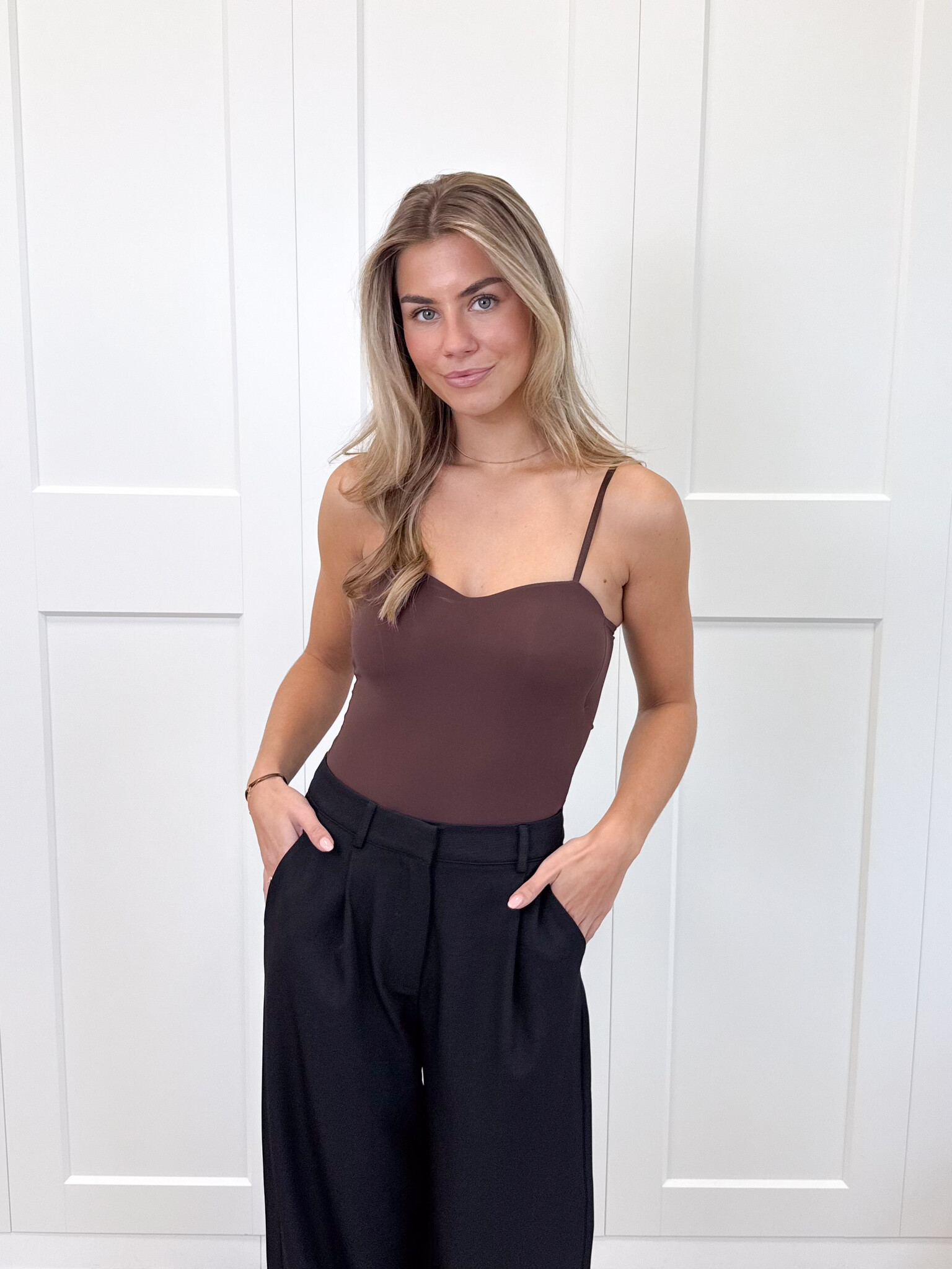 Deze prachtige body is het perfecte item voor elke vrouw die houdt van een elegante en vrouwelijke uitstraling. Dankzij de voorgevormde cups biedt hij een mooie ondersteuning en creëert hij een natuurlijk gevormd silhouet. De verstelbare bandjes zorgen voor de ideale pasvorm, terwijl de sluiting aan de onderkant praktisch en comfortabel is. De zachte, elastische stof vormt zich subtiel naar je lichaam en benadrukt je rondingen op een flatterende manier, zonder in te leveren op draagcomfort. Draag hem onder een blazer of blouse voor een classy outfit, of combineer hem met een jeans voor een meer casual, maar toch verfijnde look. Deze body is een absolute essential die elke outfit naar een hoger niveau tilt.