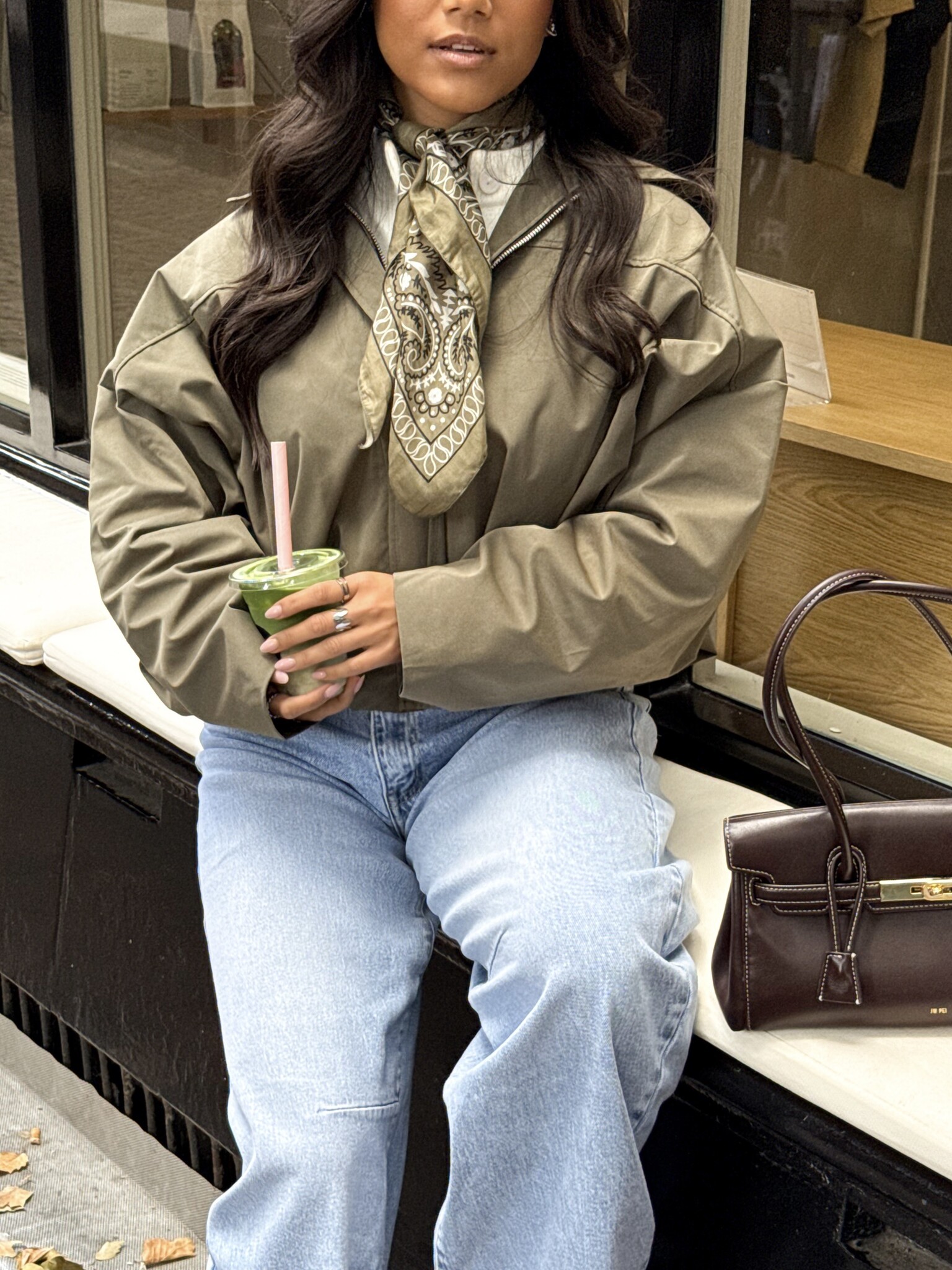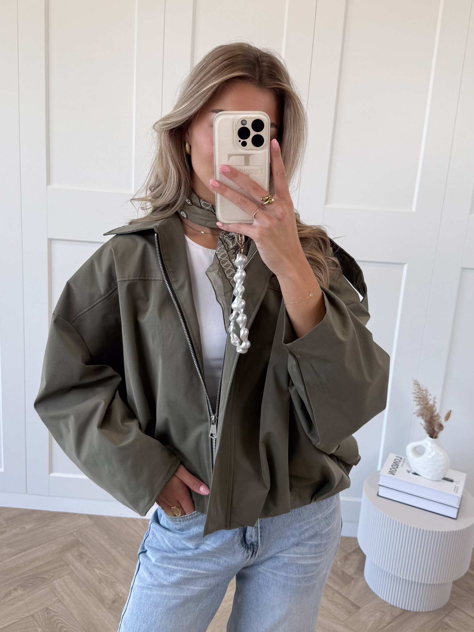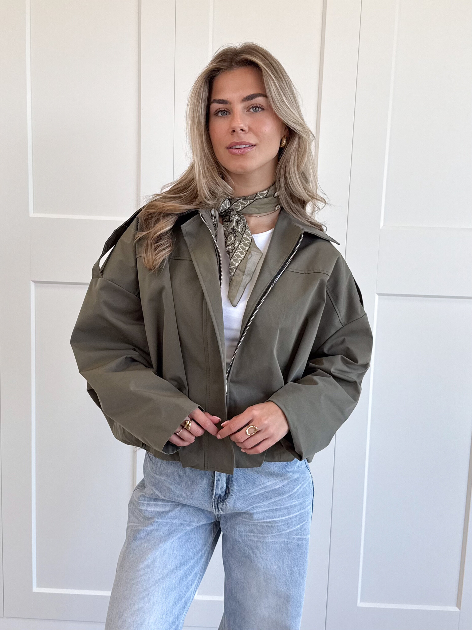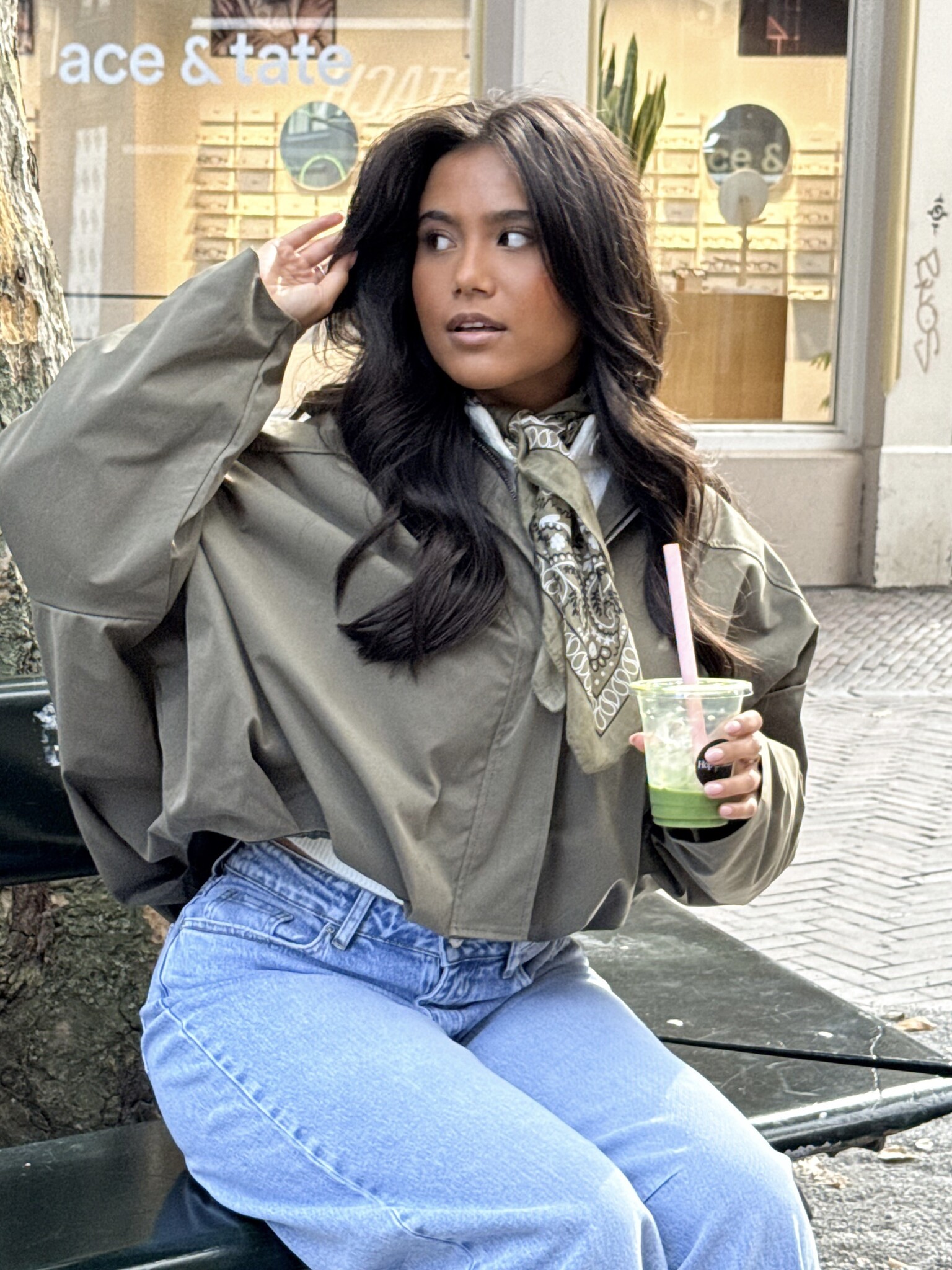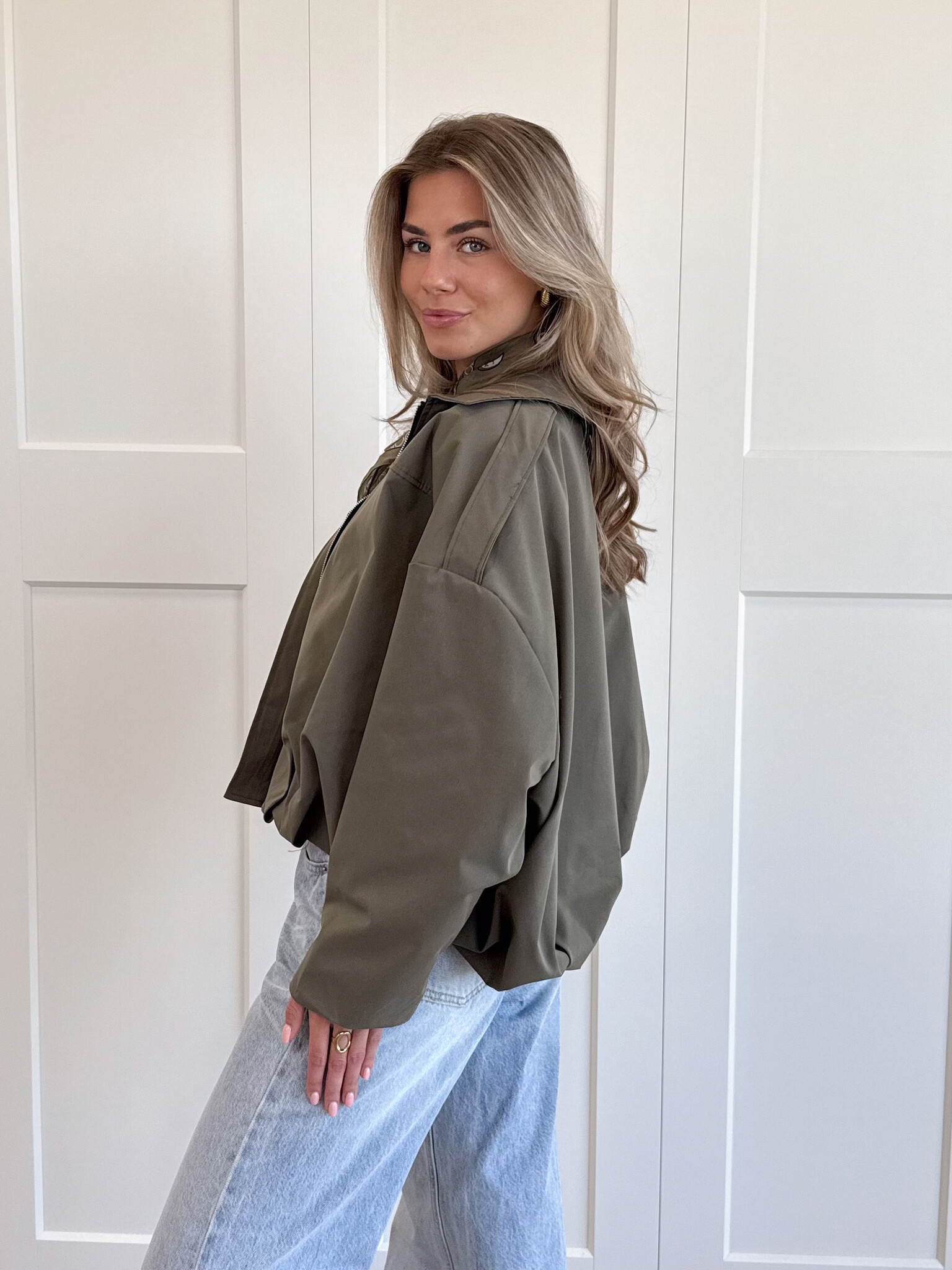 Dit oversized bomberjack geeft jouw look direct een stoere en trendy vibe. De jas is voorzien van een ritssluiting en een kraag, waardoor je hem makkelijk dicht of open draagt. Opvallend detail is de afwerking bij de schouders die zorgt voor nét dat extra beetje stijl. Dankzij de loose fit voelt de jas comfortabel en nonchalant aan, ideaal voor dagelijks gebruik of om een casual outfit net wat stoerder te maken. De elastieken boorden bij de mouwen en onderkant zorgen ervoor dat de pasvorm mooi blijft zitten en je look een clean silhouet houdt. Combineer hem met jeans en sneakers voor een laid-back vibe of draag hem over een jurkje voor een speelse twist.
