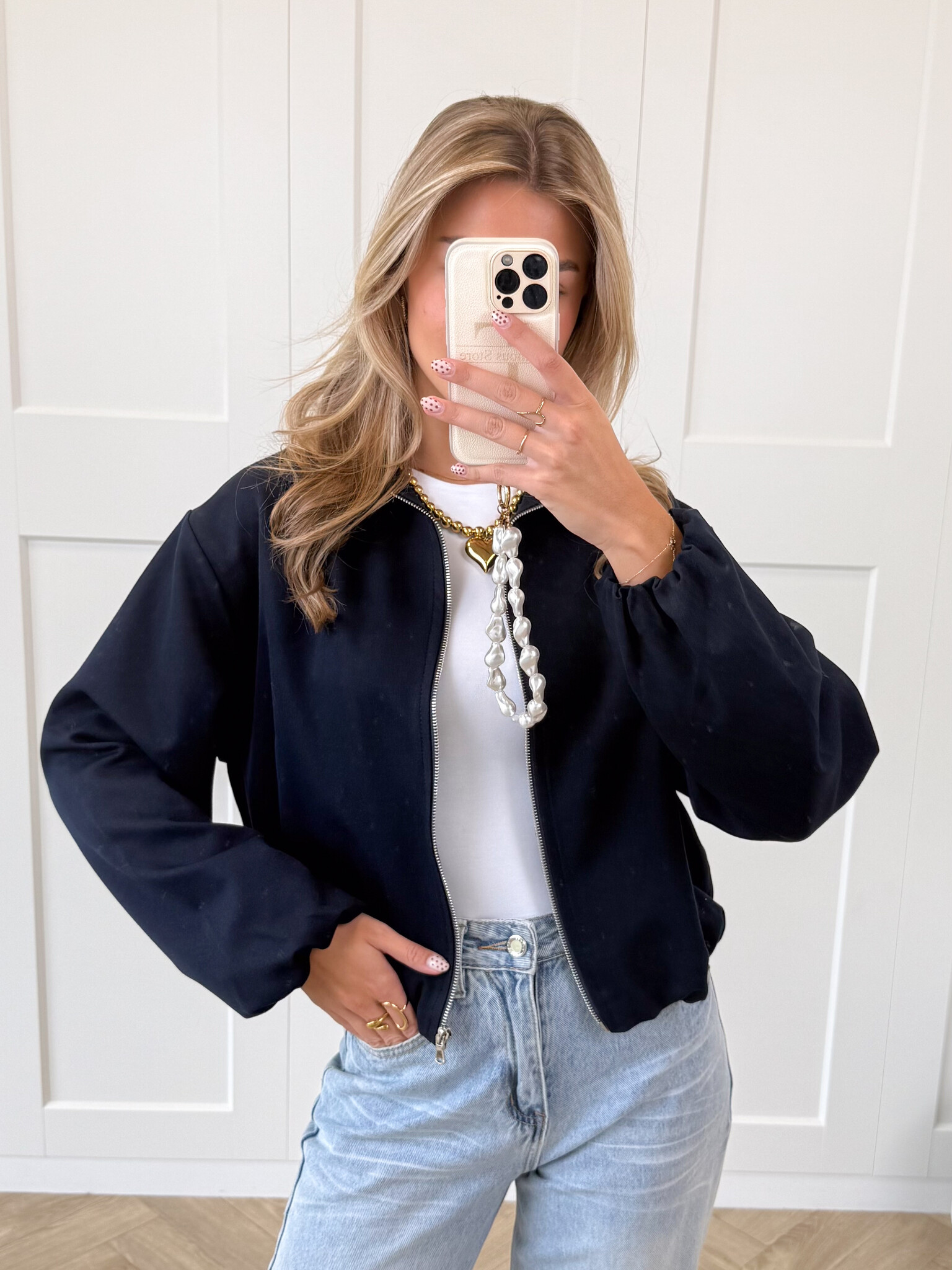 Deze bomberjas is een absolute favoriet voor wie houdt van een stoere maar toch vrouwelijke look. Met de rits en klassieke kraag straalt de jas tijdloze stijl uit, terwijl de neppe steekzakken aan de voorkant zorgen voor een moderne twist. De elastische details aan de mouwen en onderkant geven niet alleen een comfortabele fit, maar ook die herkenbare bomber-vibe die dit model zo geliefd maakt.