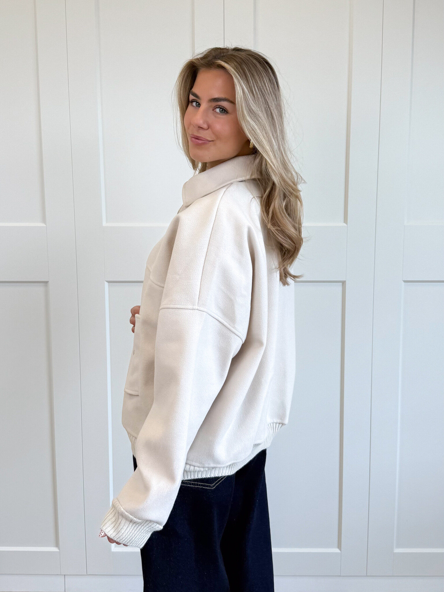 Deze bomberjas combineert comfort en stijl moeiteloos. Gemaakt van een gladde, zachte stof die heerlijk warm aanvoelt, is hij perfect voor frisse dagen. De klassieke kraag geeft de jas een elegante touch, terwijl de twee zakken aan de voorkant met knoop praktische en stijlvolle details toevoegen.