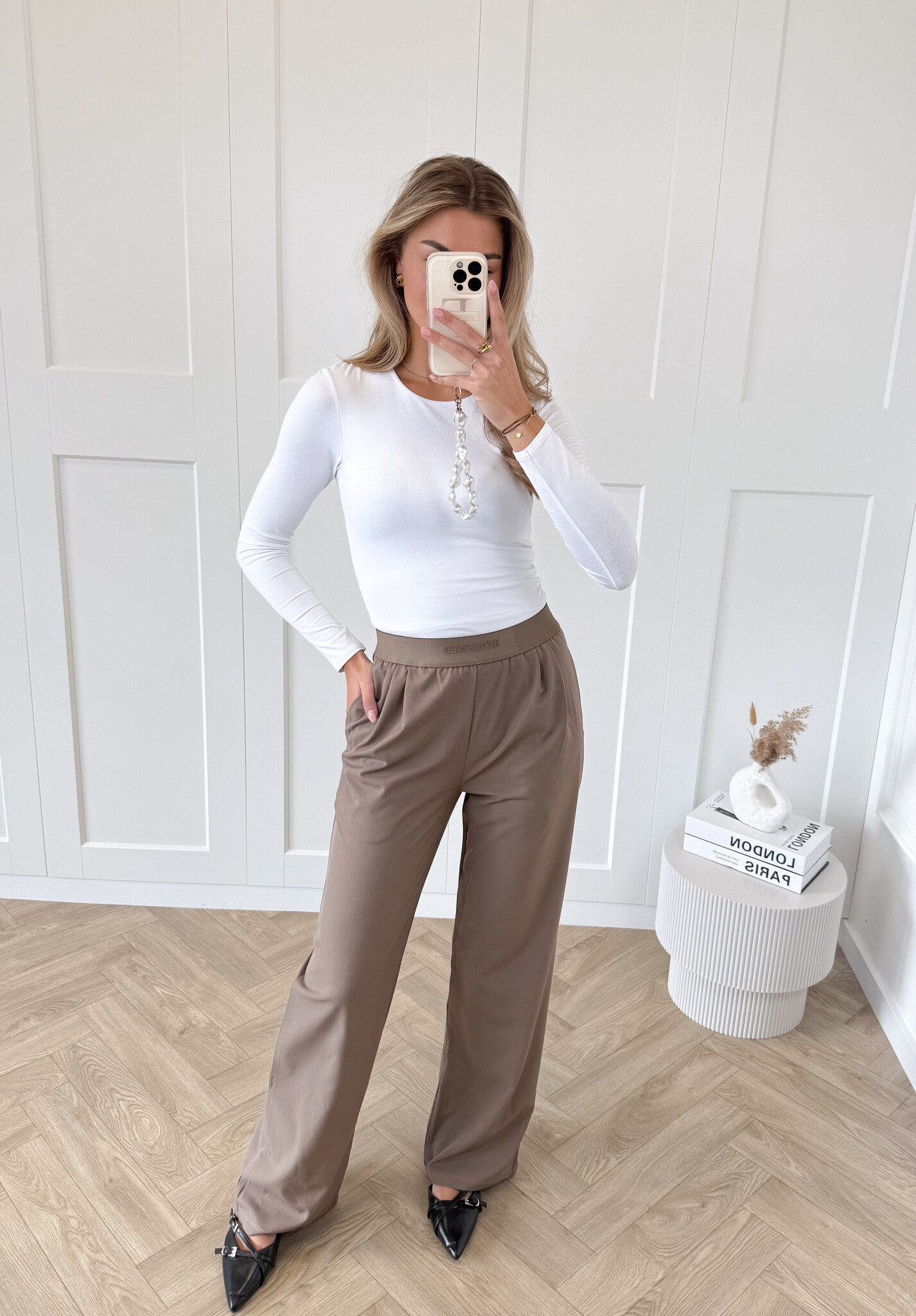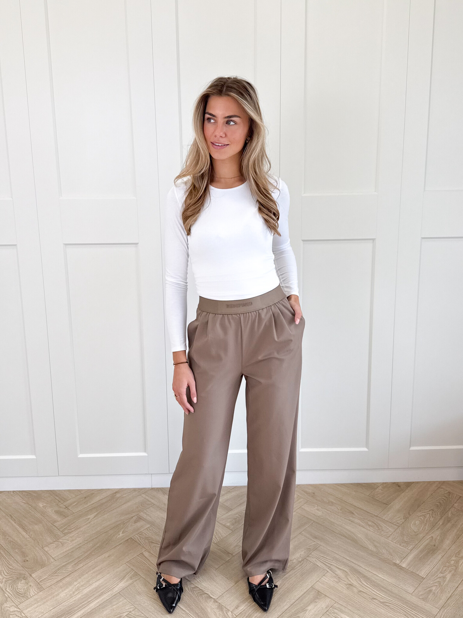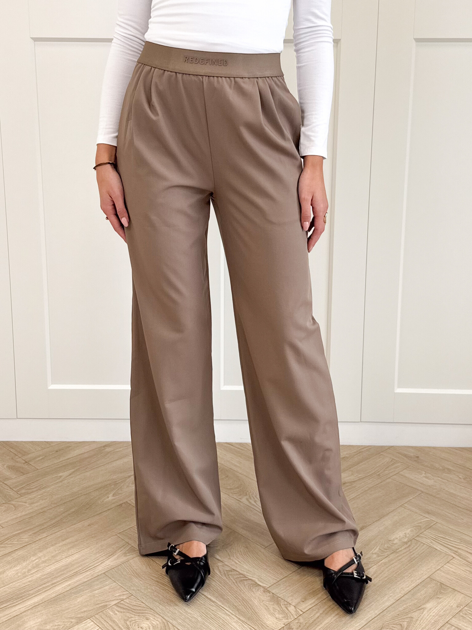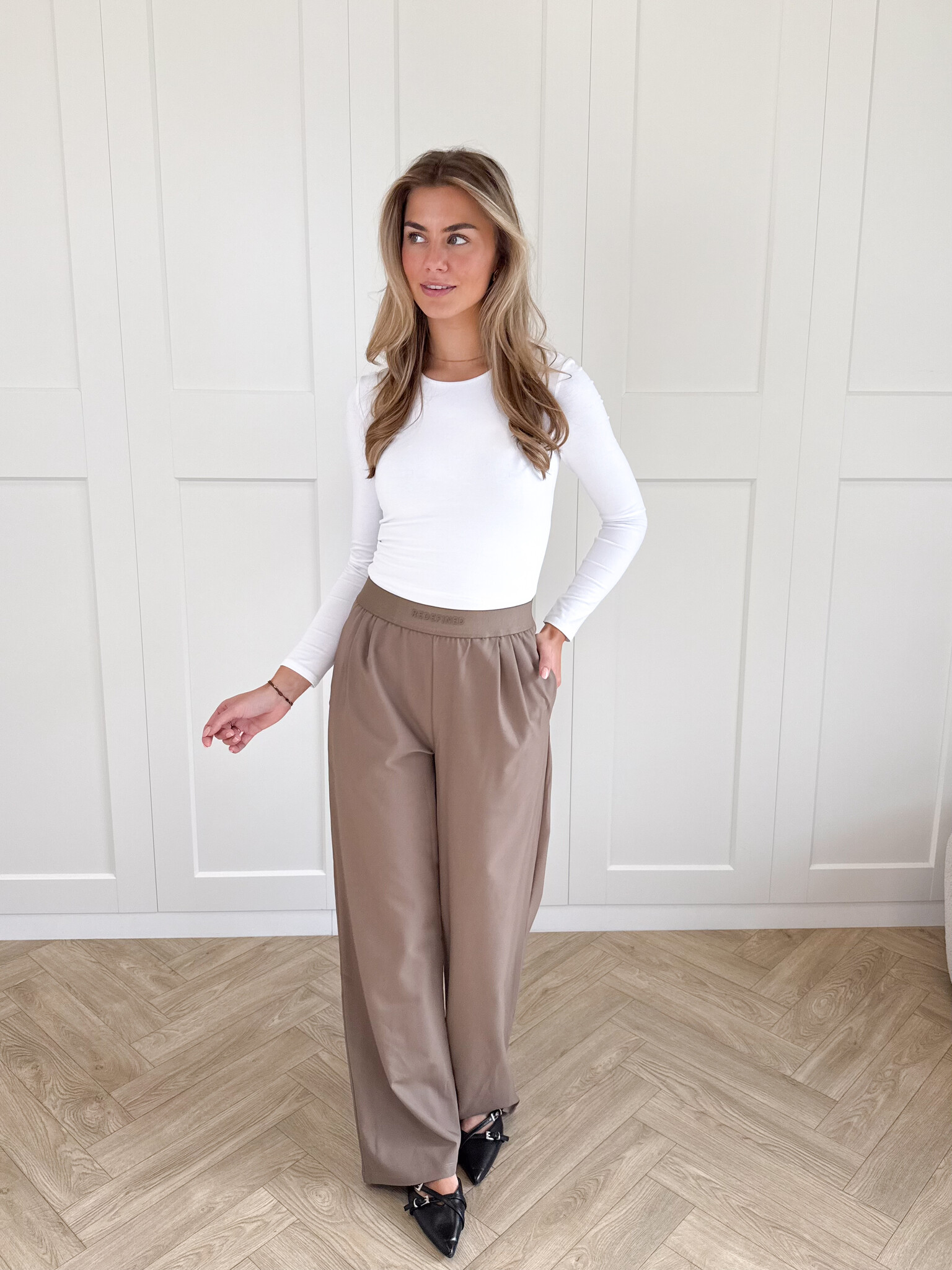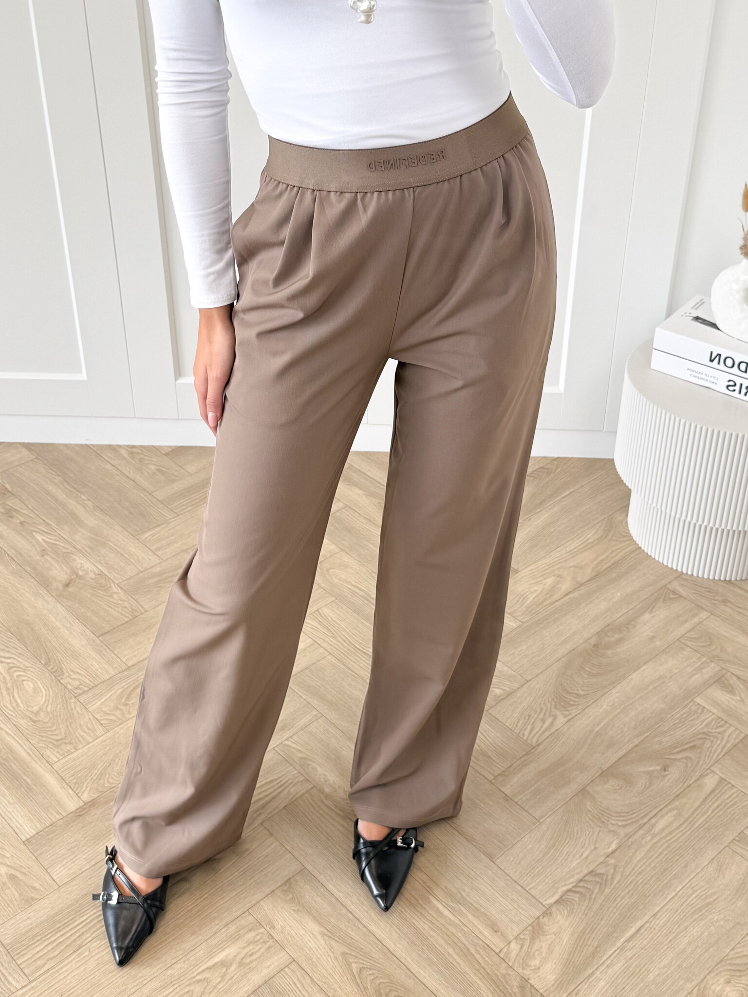 Deze bruine pantalon is een echte eyecatcher voor iedereen die houdt van stijl en comfort. De broek heeft een elegante uitstraling met een moderne twist dankzij de elastische band met subtiele letters. De stretchy stof zorgt voor een perfecte pasvorm die met je meebeweegt. De pantalon is tijdloos, comfortabel en supermakkelijk te stylen, jouw nieuwe favoriet voor elk seizoen!