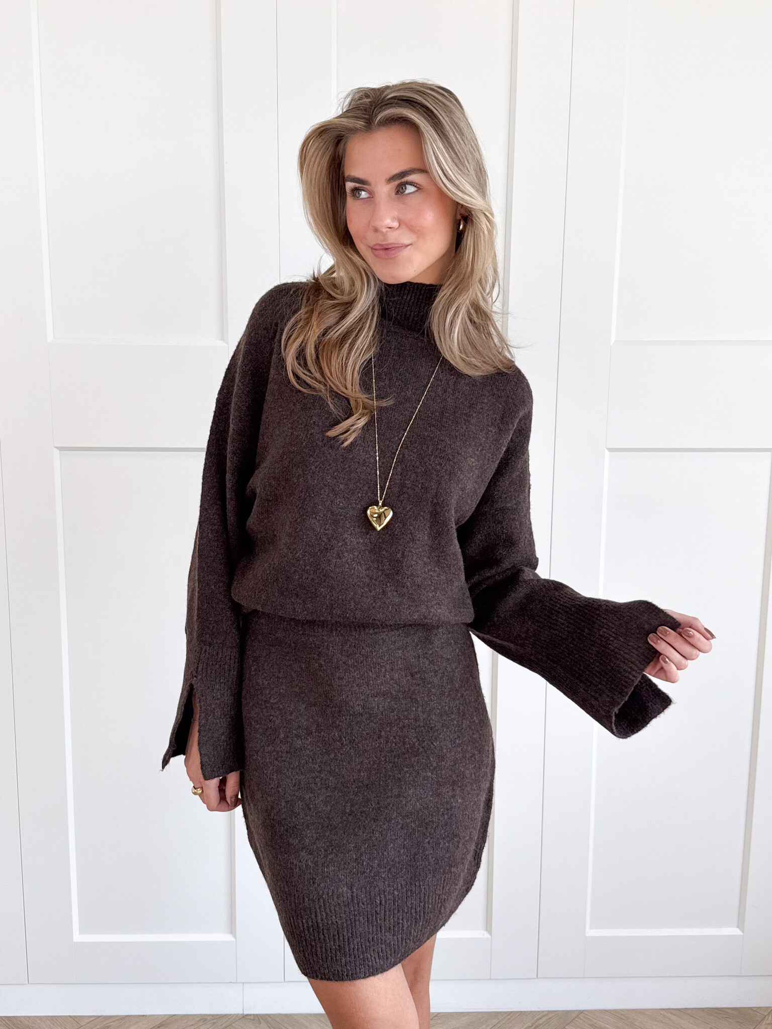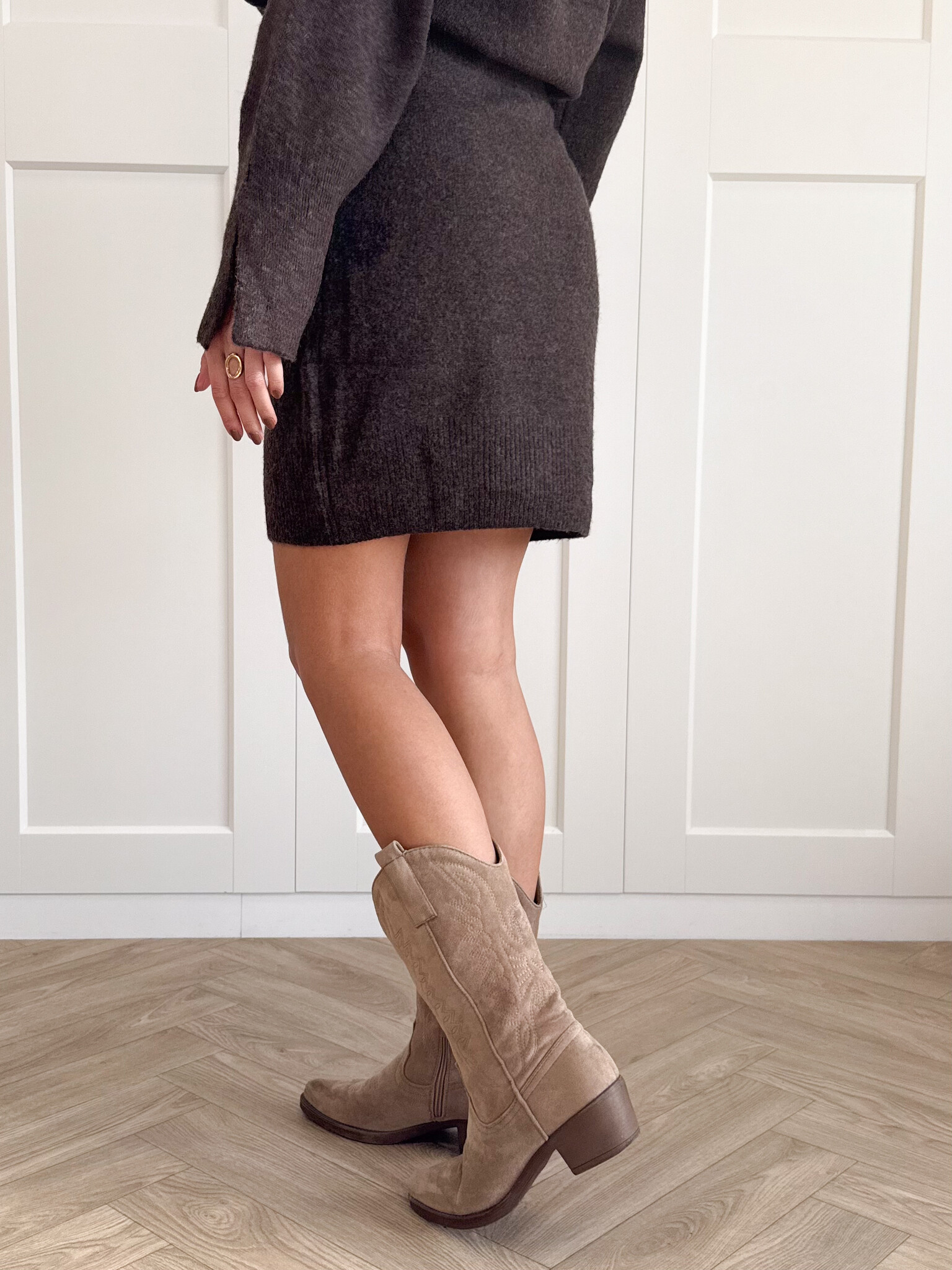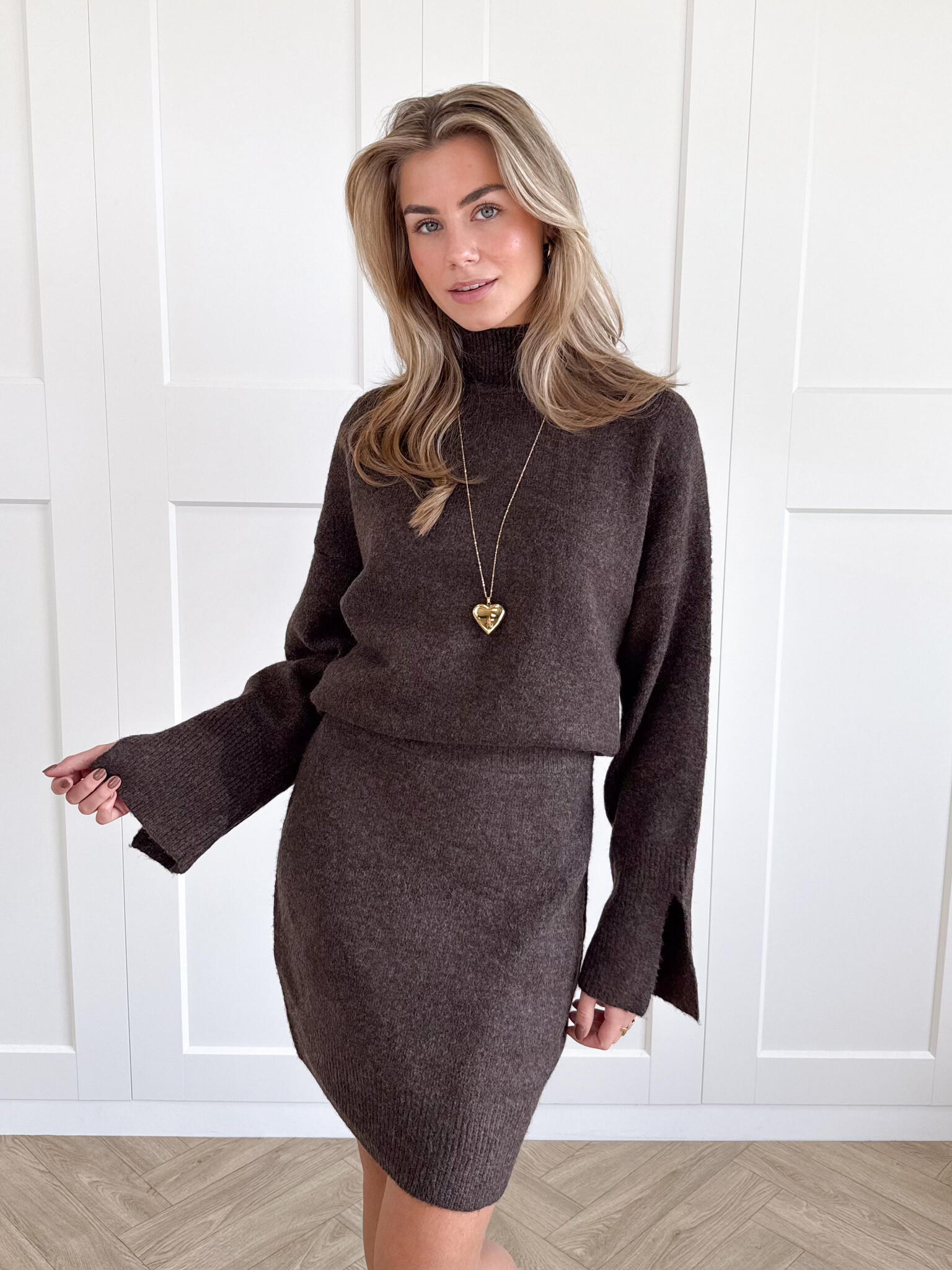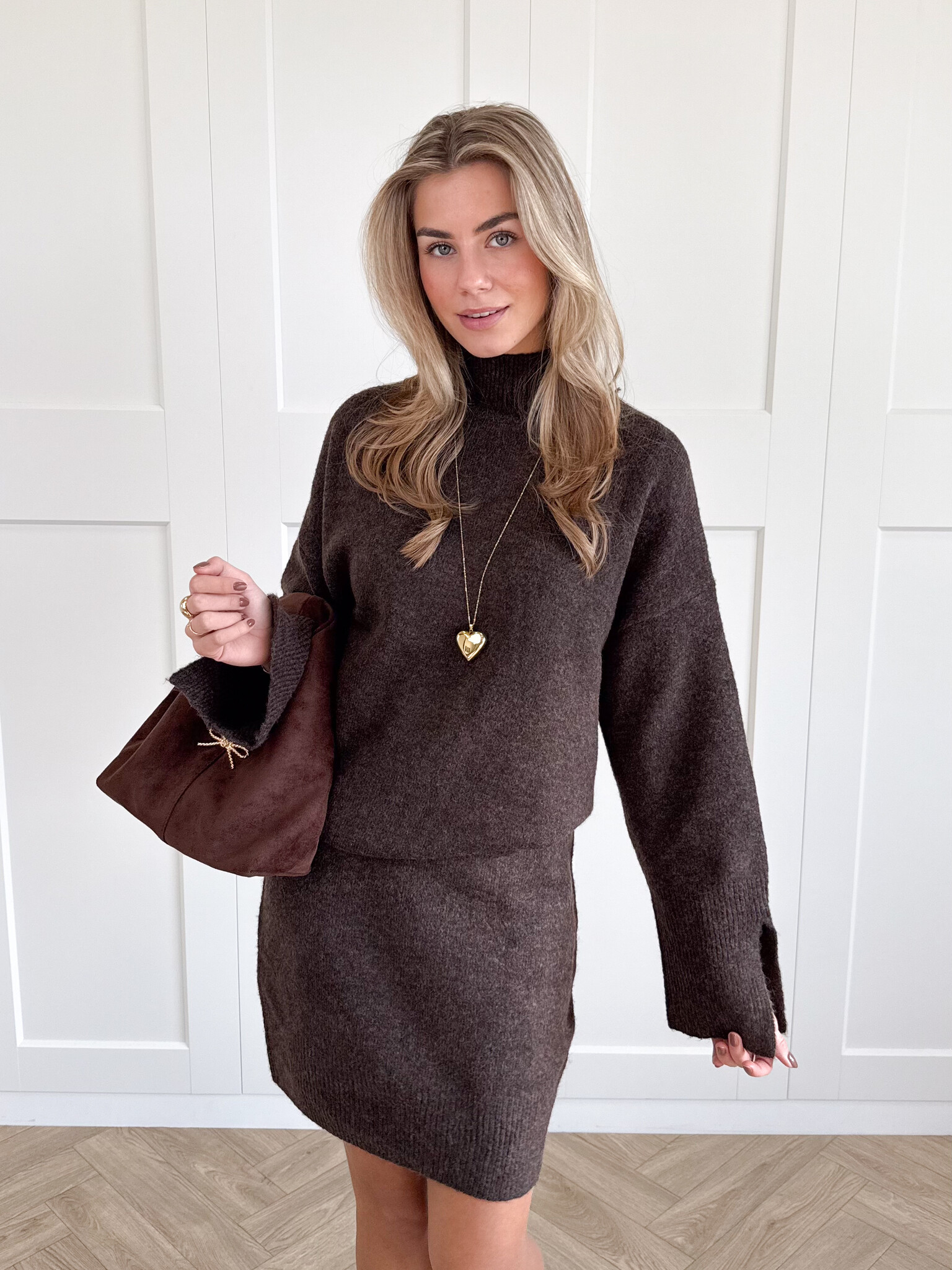 Deze zachte wollen knit rok is een absolute must voor het najaar. De warme, stretchy stof voelt heerlijk comfortabel aan en beweegt soepel met je mee. Dankzij de flatterende pasvorm en het minimalistische design is dit item perfect te combineren met jouw favoriete truien en stoere boots. Draag hem met een oversized knit voor een cozy look of met een blouse voor een wat chiquere uitstraling. De gebreide structuur geeft een subtiele, stijlvolle touch waardoor je er zowel casual als classy uit kunt zien. Een heerlijke rok die warmte, stijl en vrouwelijkheid moeiteloos samenbrengt. Ideaal voor de koude dagen waarop je er nog steeds fashionable uit wilt zien.