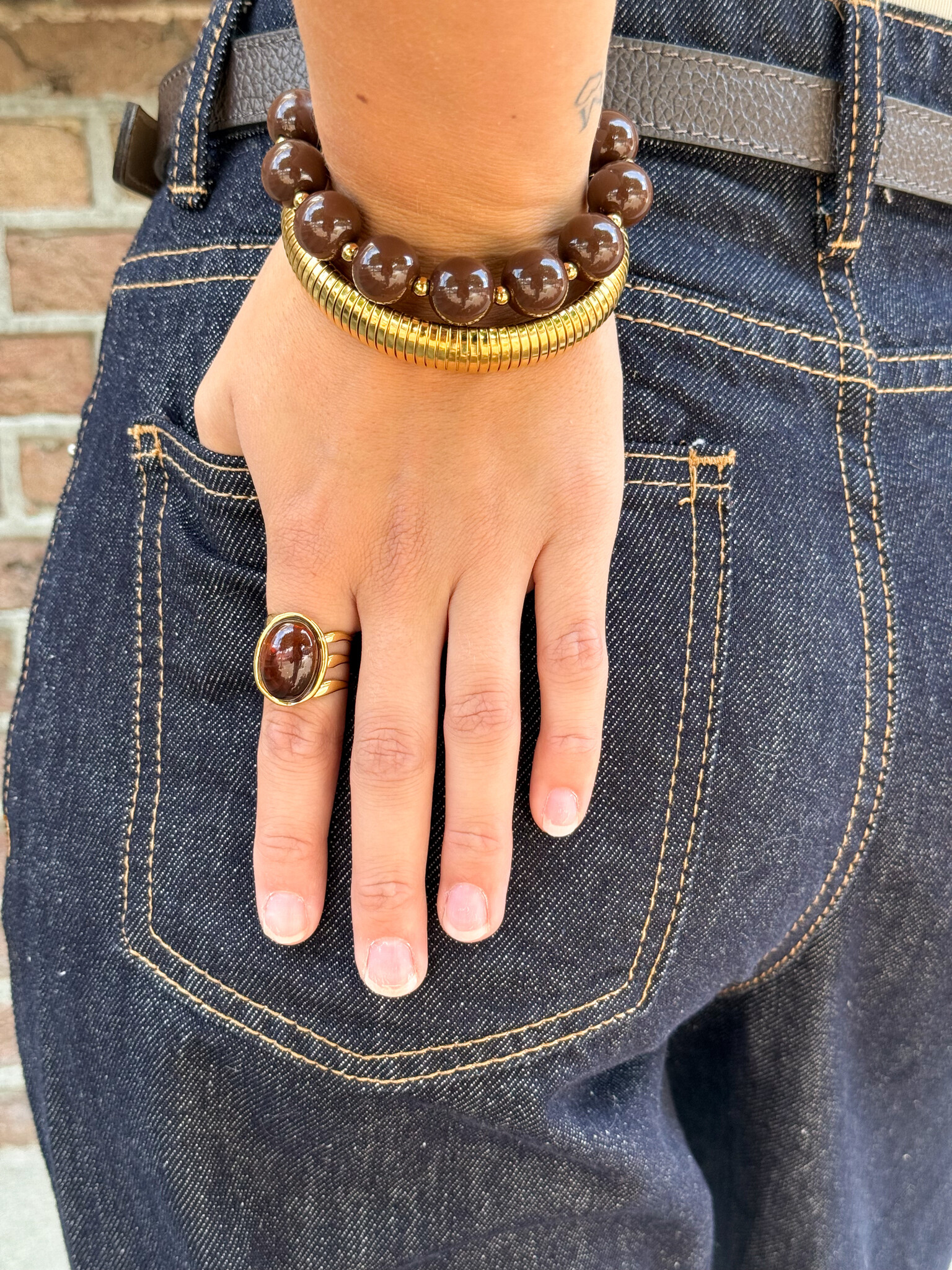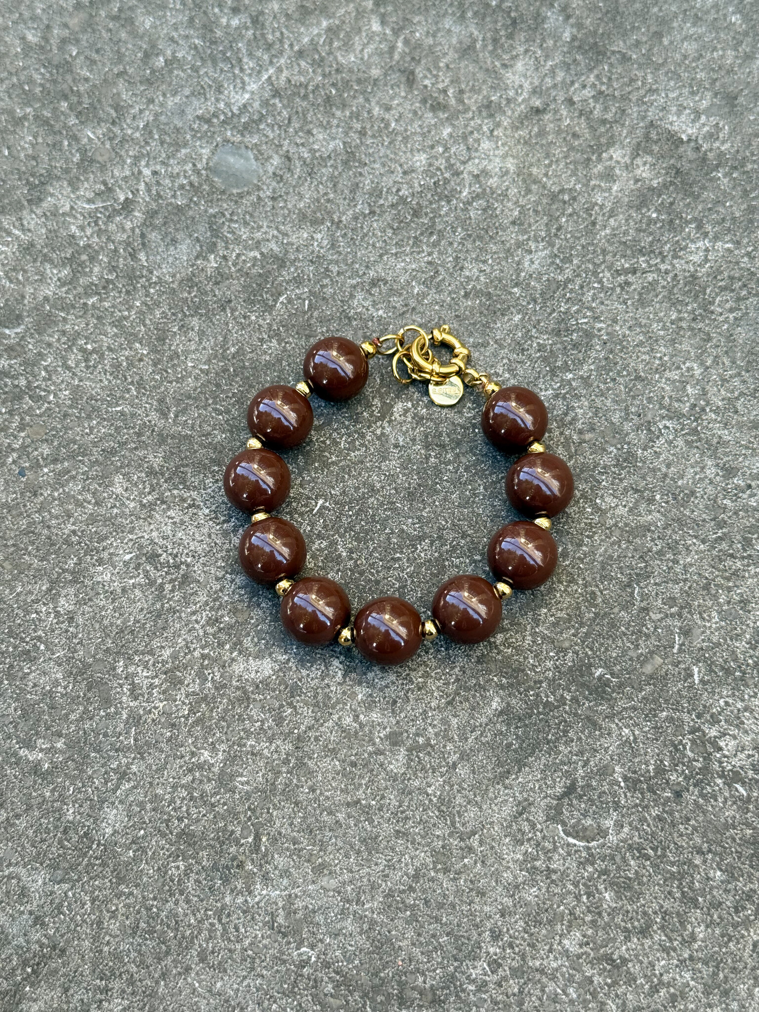 Chique bruine kralen armband met subtiele gouden details. Verkrijgbaar in meerdere kleuren. Ook leuk te dragen met de bijhorende kralen ketting.