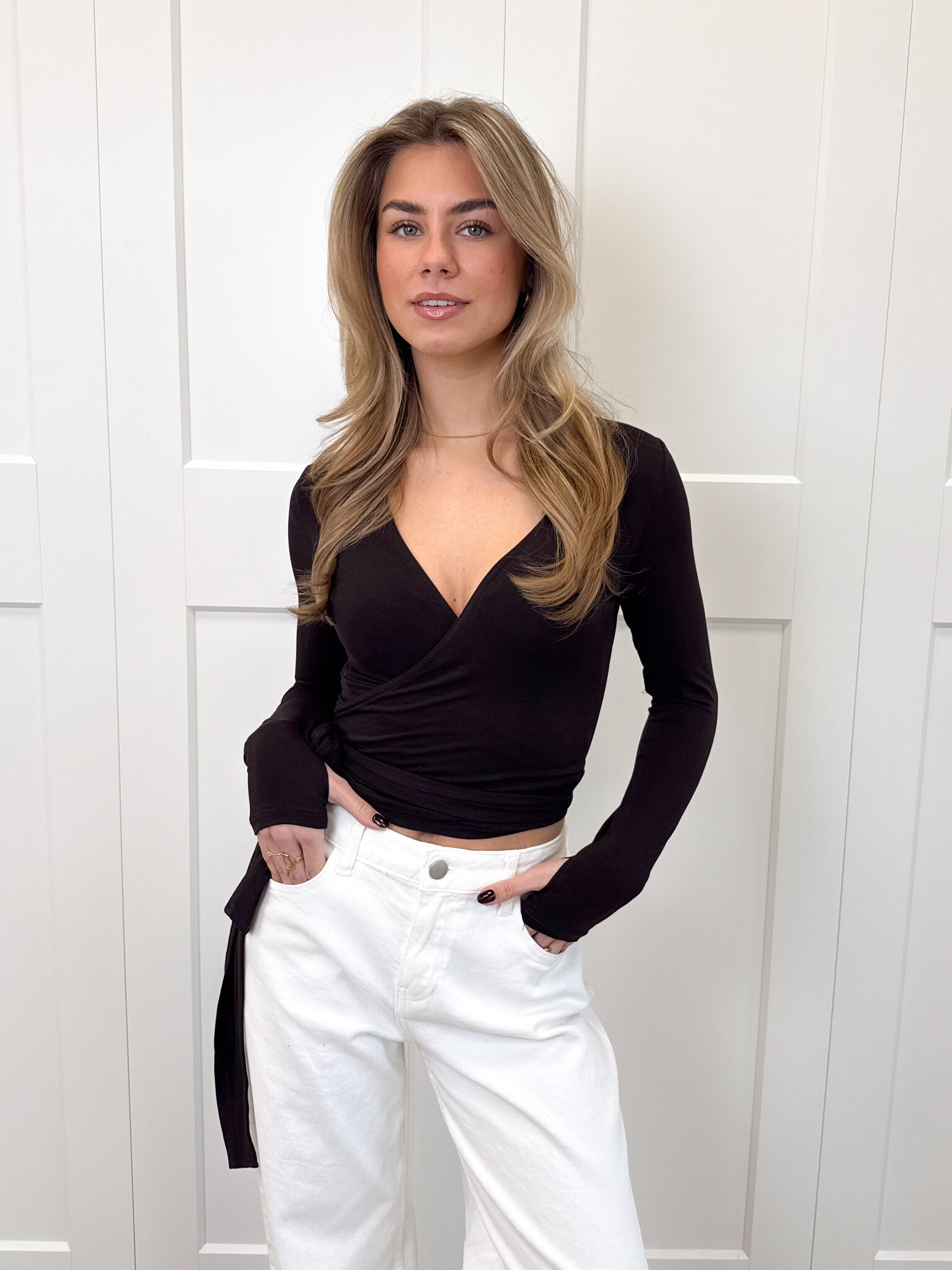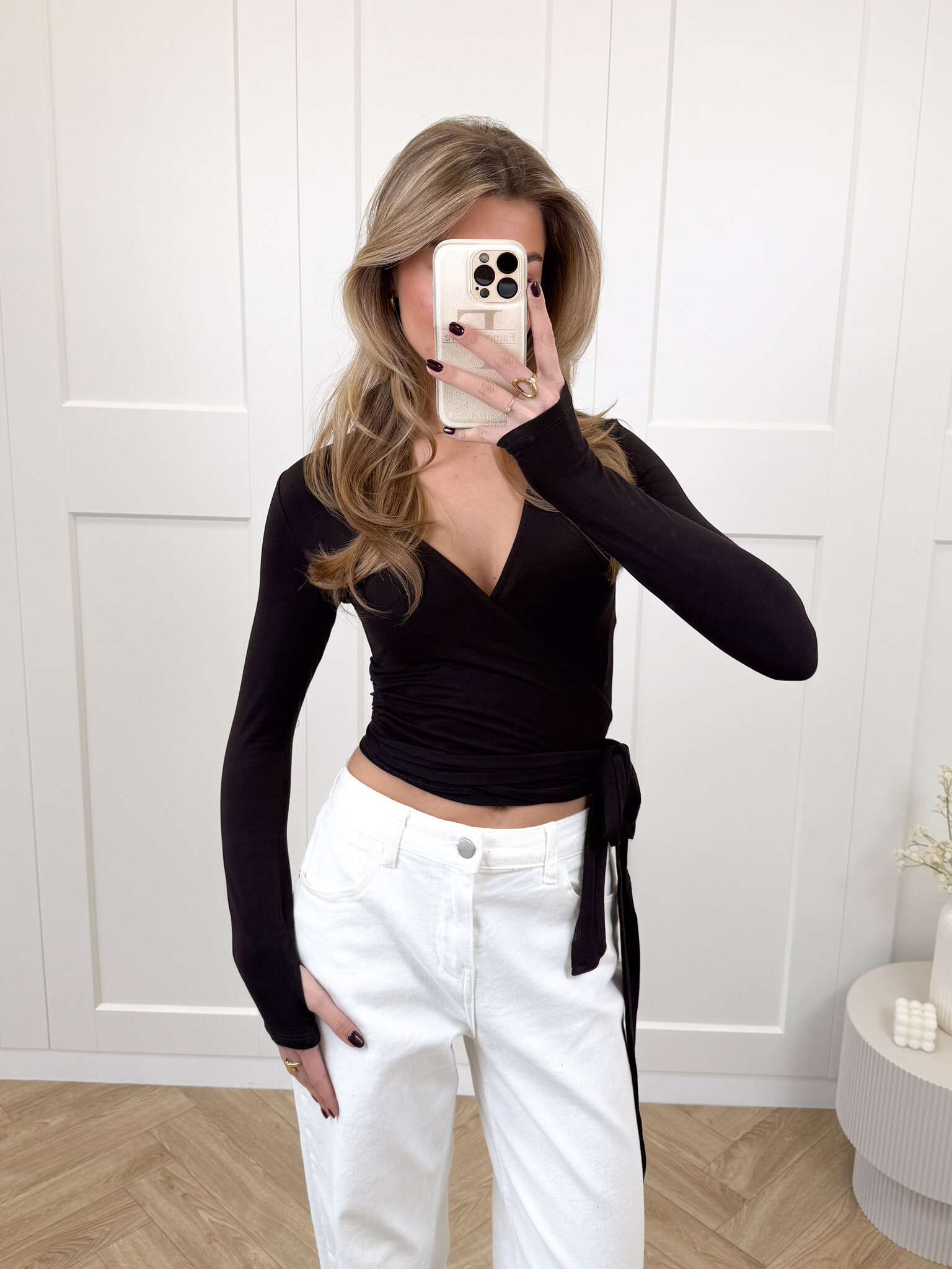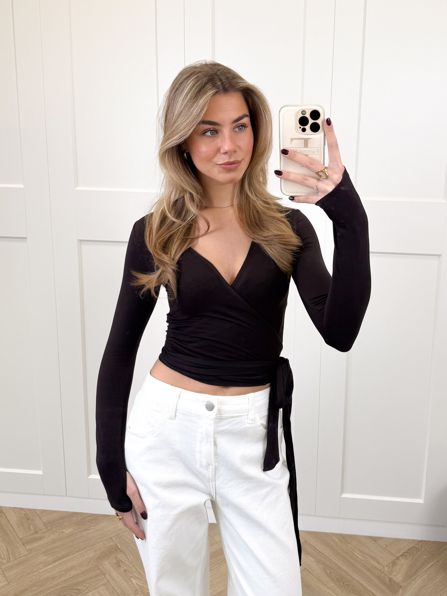 Dit is de omslagtop die comfort en stijl moeiteloos combineert. De top heeft lange mouwen, een omslag die je zelf kunt knopen voor de perfecte pasvorm, en een zachte stretchstof die heerlijk draagt. Het dubbelgevoerde materiaal voelt luxe en comfy aan, terwijl de subtiele details zoals het touwtje en de elegante drapering een girly touch geven. Ideaal om te dragen tijdens relaxte dagen thuis, casual coffee dates, een dagje shoppen of een lunch met vriendinnen. Combineer met jeans, leggings of een joggingbroek voor een effortless, stijlvolle look die je keer op keer wilt dragen. Deze comfy top geeft elke outfit een feminine twist en maakt je casual looks direct girly-chic.