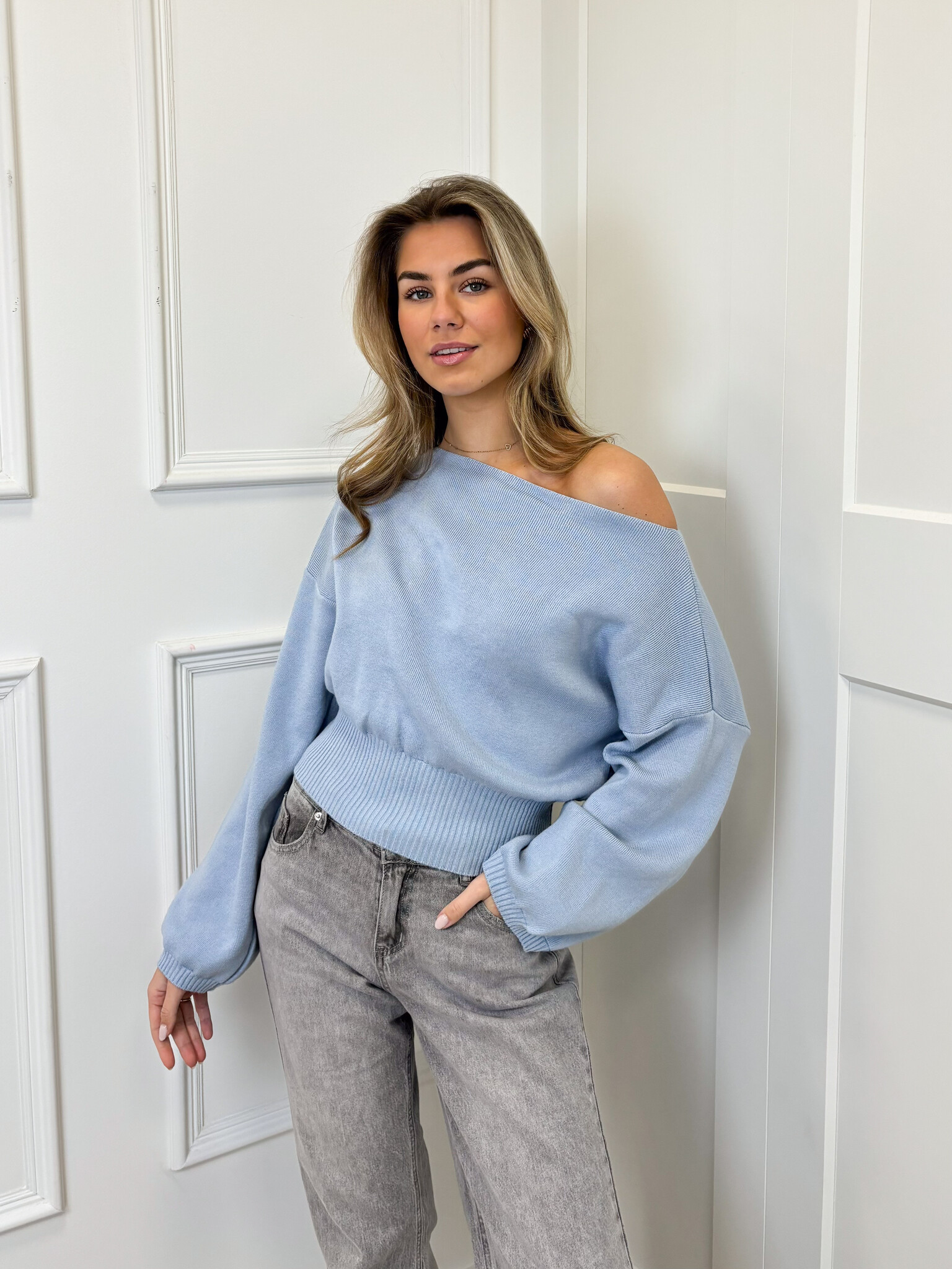 De perfecte basic trui! Door het cropped model, wijd uitlopende mouwen en de off shoulder model is de trui net even wat specialer! Deze trui zit aan de onderkant wat getailleerd, waardoor het een mooi model geeft. Een tijdloze trui die je gemakkelijk overal op kan combineren. Dit truitje valt mooi soepel en houdt je lekker warm voor de koudere dagen. Je shopt deze trui in meerdere kleuren!