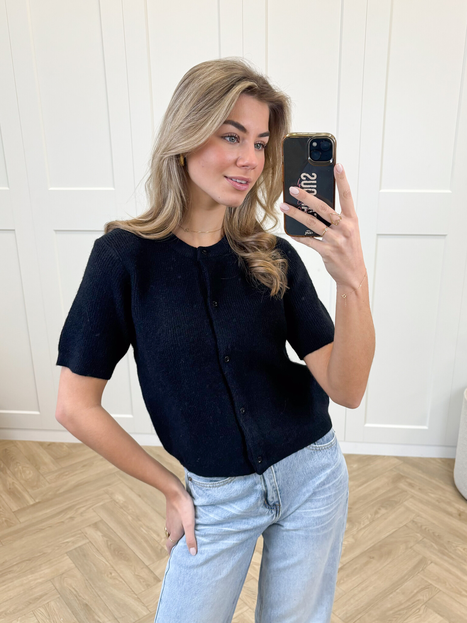 Hoe cute is dit knit vestje?! Het zit echt heerlijk door het zachte stof. De knoopjes maakt het vestje helemaal. Gemakkelijk overal op te combineren. Spijkerbroek, pantalon het kan allemaal. Voor de net iets frisse daagjes is dit een echte musthave. Je shopt dit vestje in meerdere kleuren!