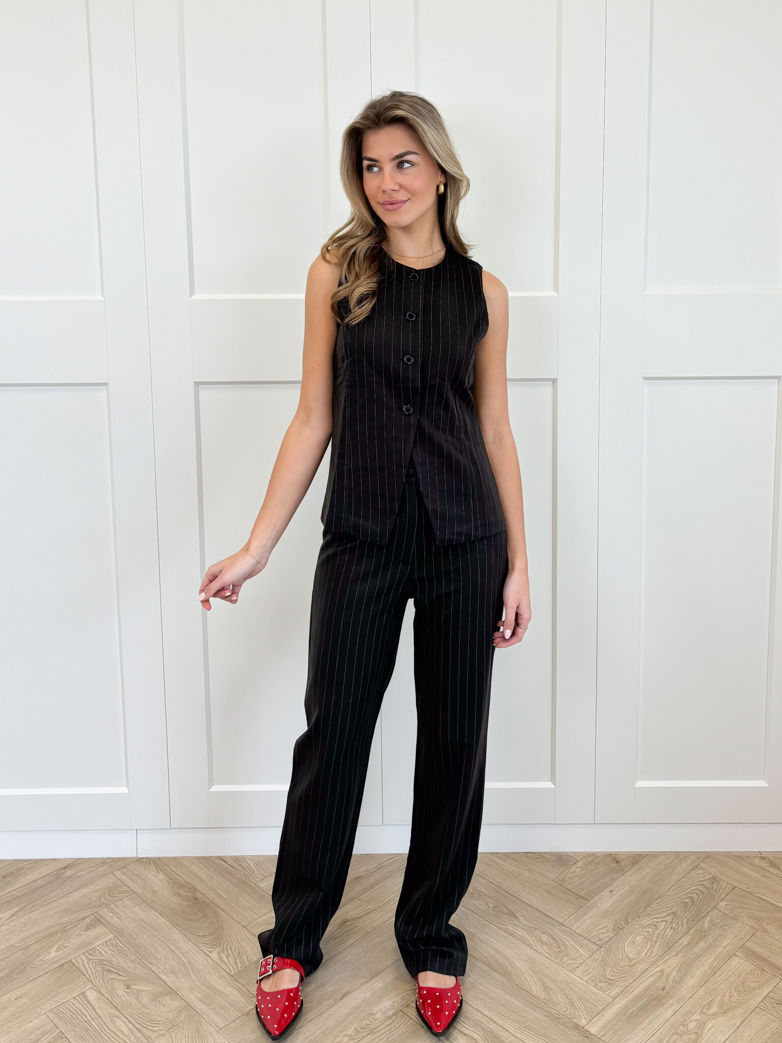 Een pantalon is onmisbaar in je kledingkast! Deze broek heeft een streep patroon en sluit mooi aan bij de taille. De Hannah pantalon heeft een knoopsluiting. Gemakkelijk te combineren met de bijpassende gilet of een leuke top. Je shopt deze pantalon in twee kleuren!