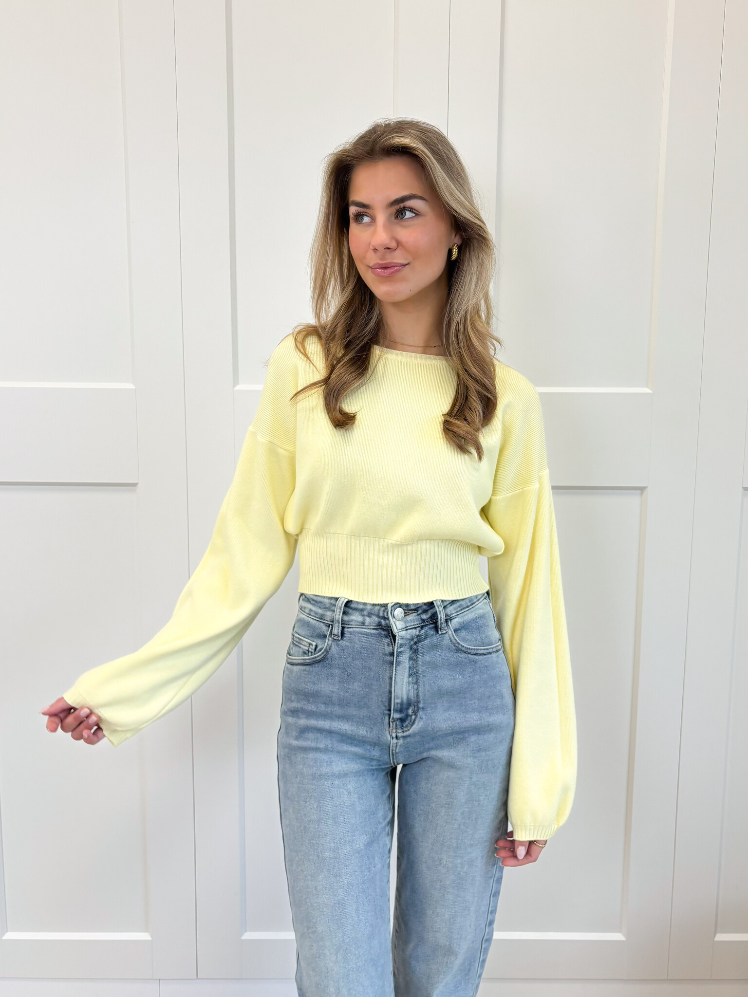 De perfecte basic trui! Door het cropped model en de wijd uitlopende mouwen is de trui net even wat specialer! Deze trui zit aan de onderkant wat getailleerd, waardoor het een mooi model geeft. Een tijdloze trui die je gemakkelijk overal op kan combineren. Dit truitje valt mooi soepel en houdt je lekker warm voor de koudere dagen. Je shopt deze trui in meerdere kleuren!