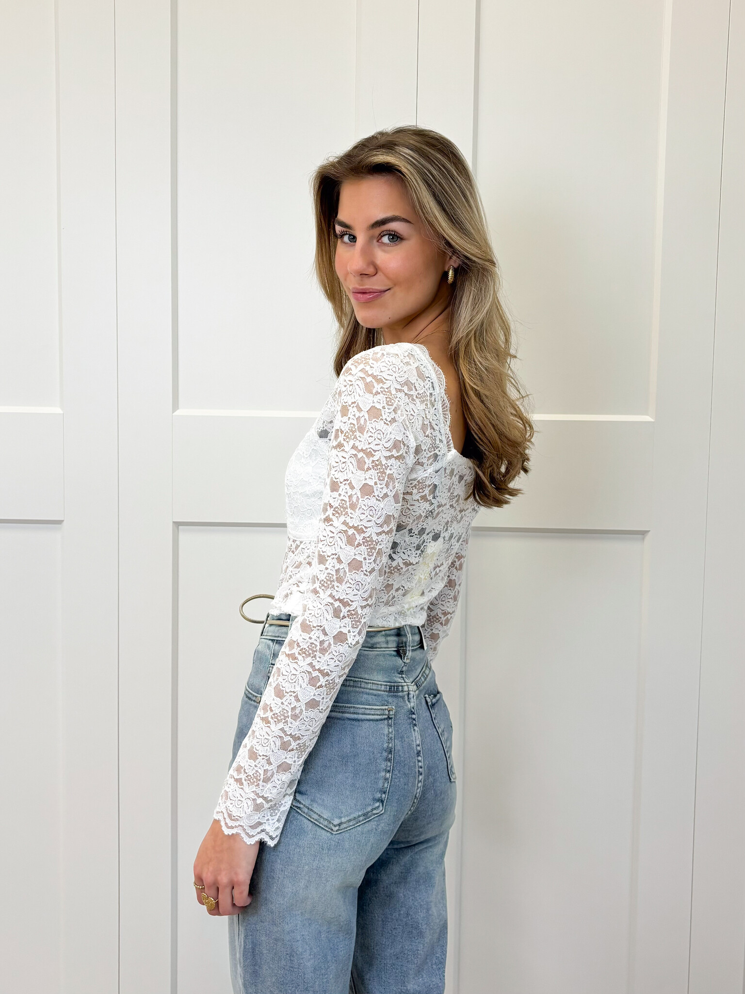 Een lace top maakt je outfit helemaal fashionable. Een kanten top is te leuk om te combineren onder een blazer en het maakt je outfit helemaal af! En no worries er zit al een top onder. Een echte musthave die niet kan missen in je kledingkast!