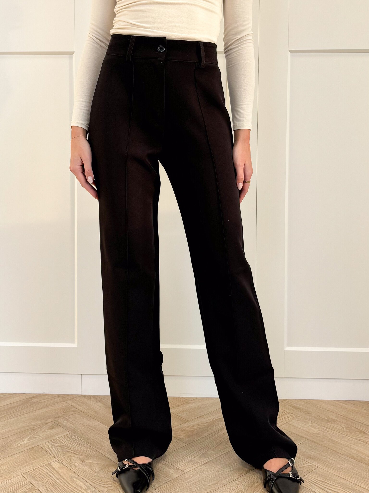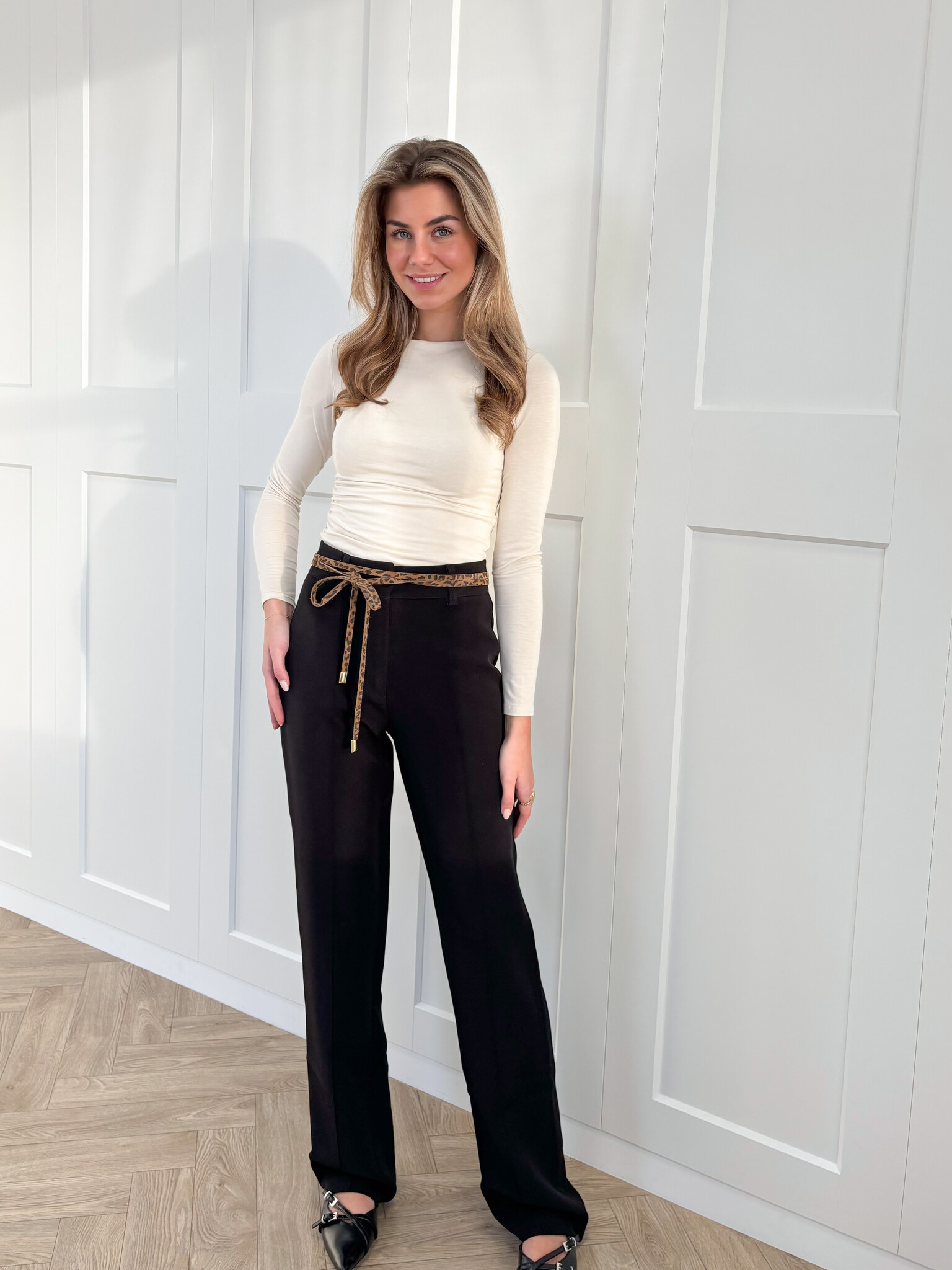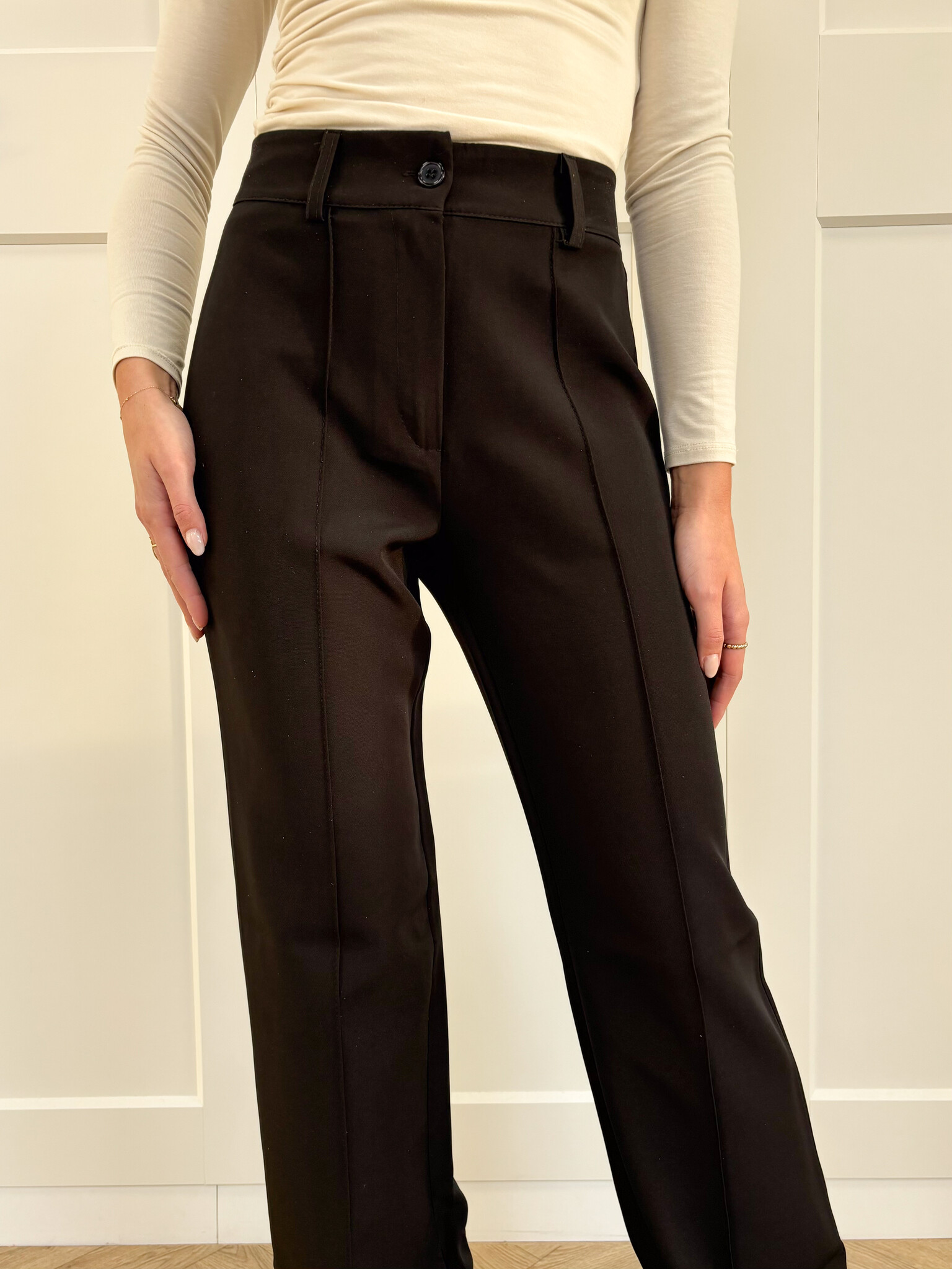 Een pantalon is een musthave voor in je kledingkast! Dit is de perfecte mid waist broek, het is een wide leg model en sluit mooi aan bij de taille. Aan de voorkant zit een naad in het midden van de broekspijp. Er zitten ook zakken aan de voorkant. Gemakkelijk te combineren met een leuke top, doe er een blazer over en you are ready to go. Je shopt deze pantalon in meerdere kleuren!