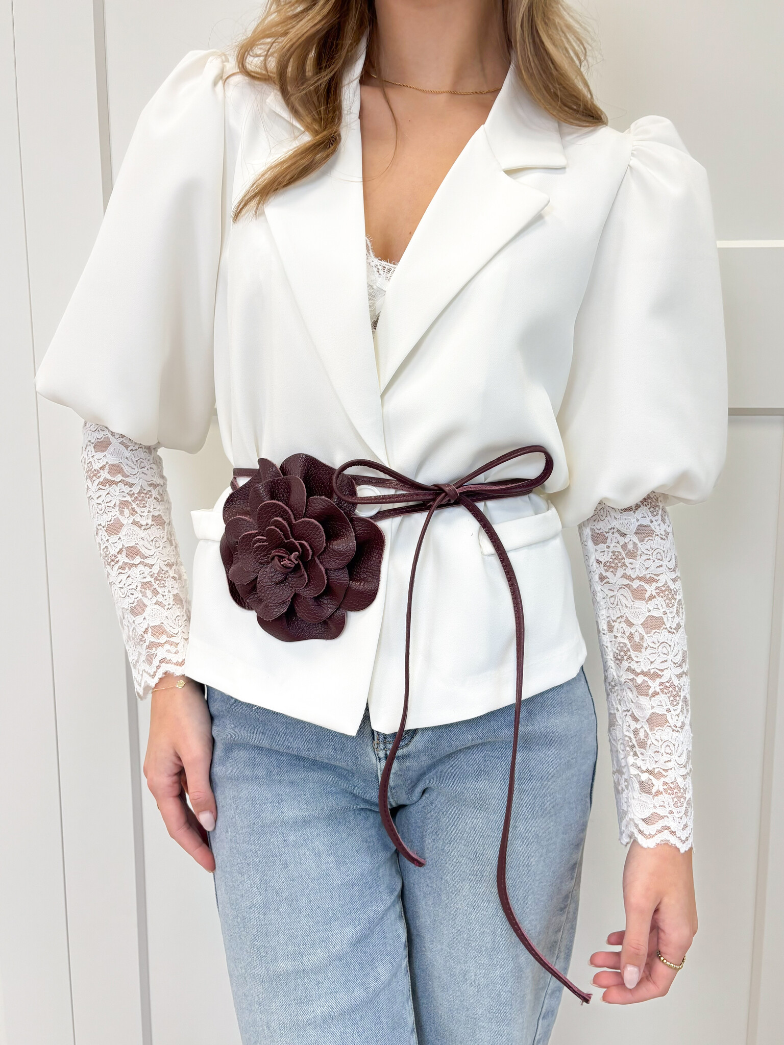 Taille knoopriem bloem bordeaux