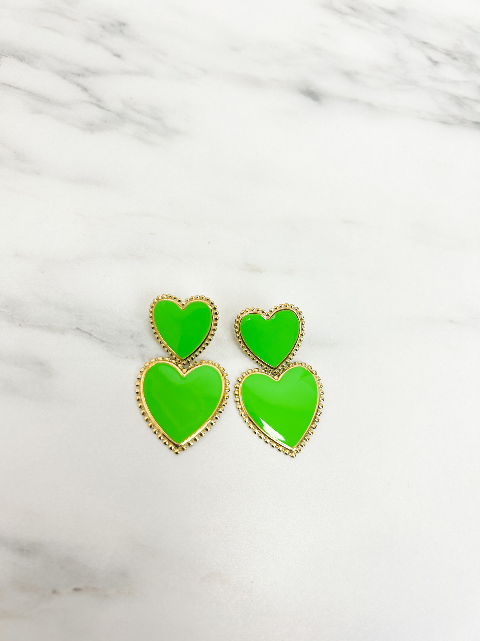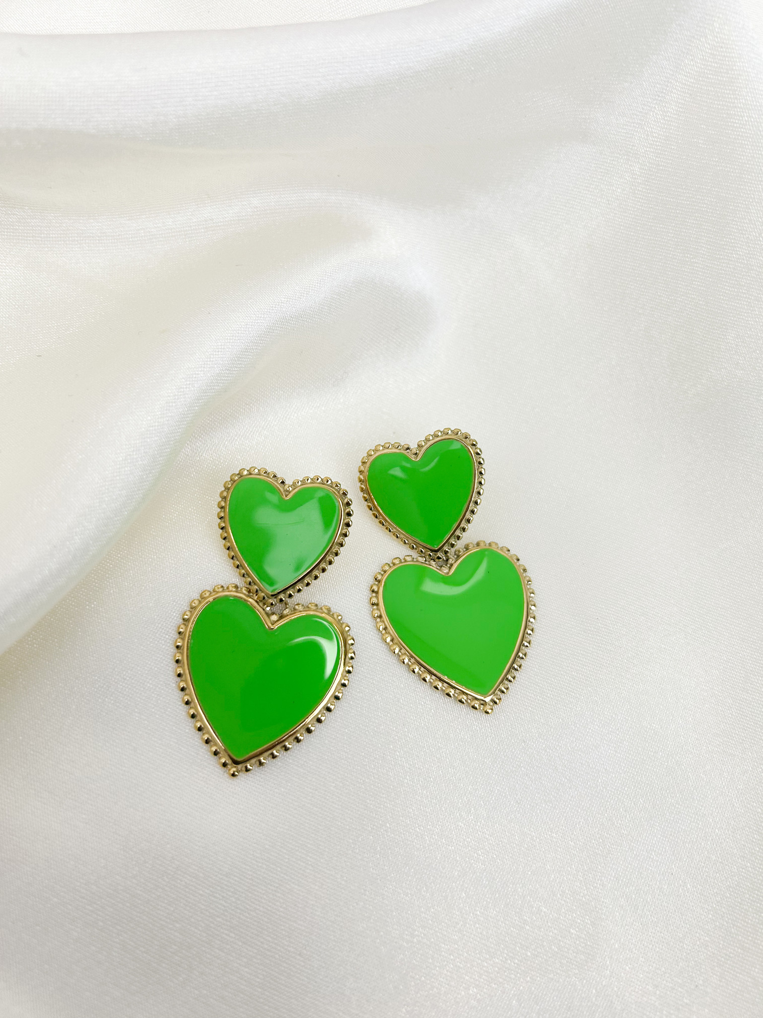Deze hartjes oorbel met een leuke kleur is een statement piece! Maak je outfit ermee compleet.