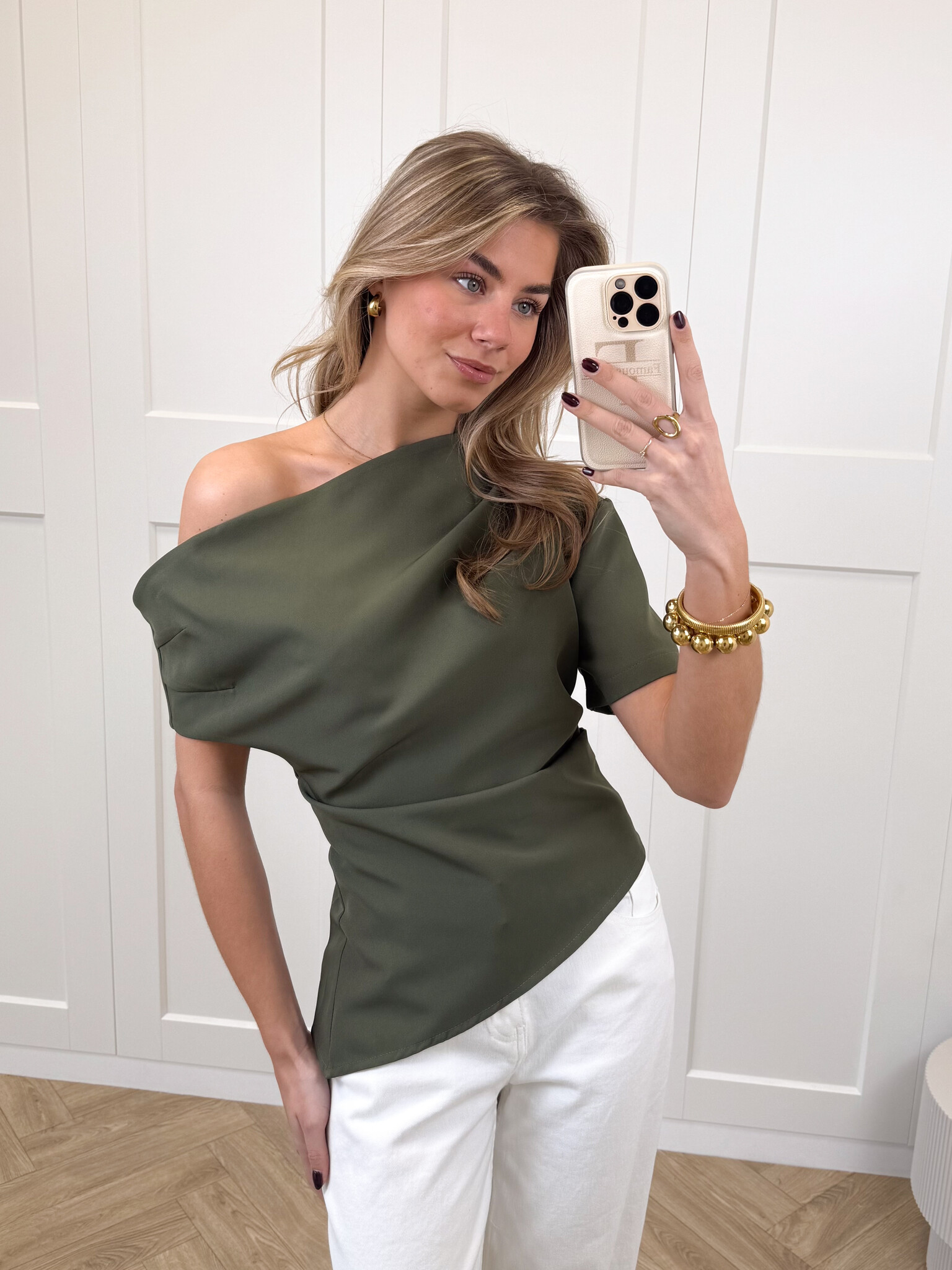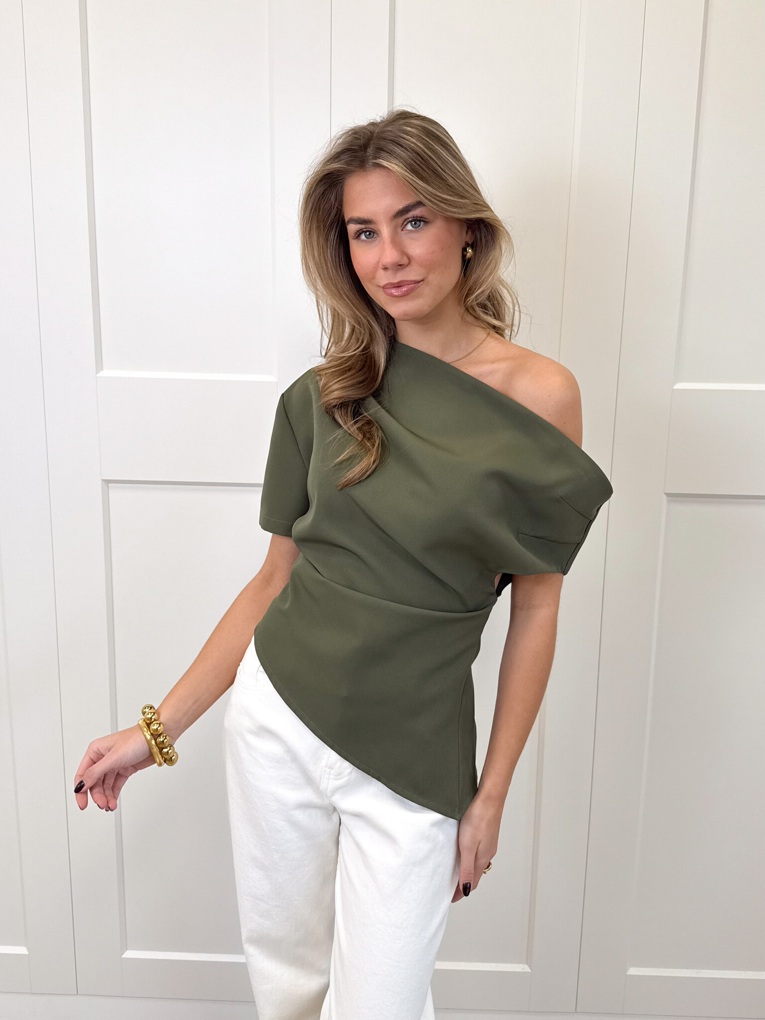Op zoek naar een elegante top die zowel speels als stijlvol is? Deze one off shoulder top heeft het allemaal: een ritssluiting en ook iets aan stretch. De top sluit perfect aan op je lichaam door de lichte stretch en zorgt voor een flatterende, vrouwelijke fit.