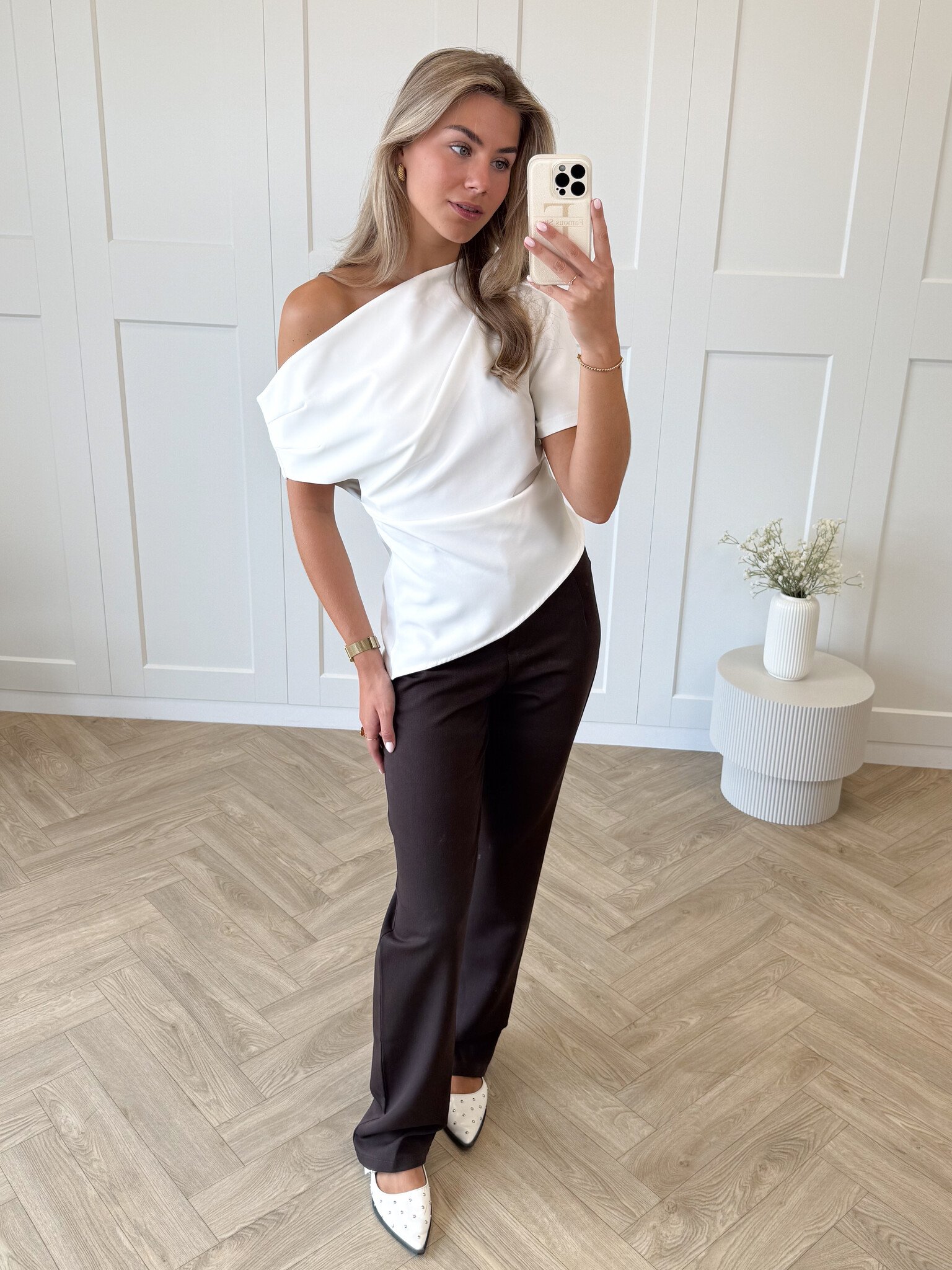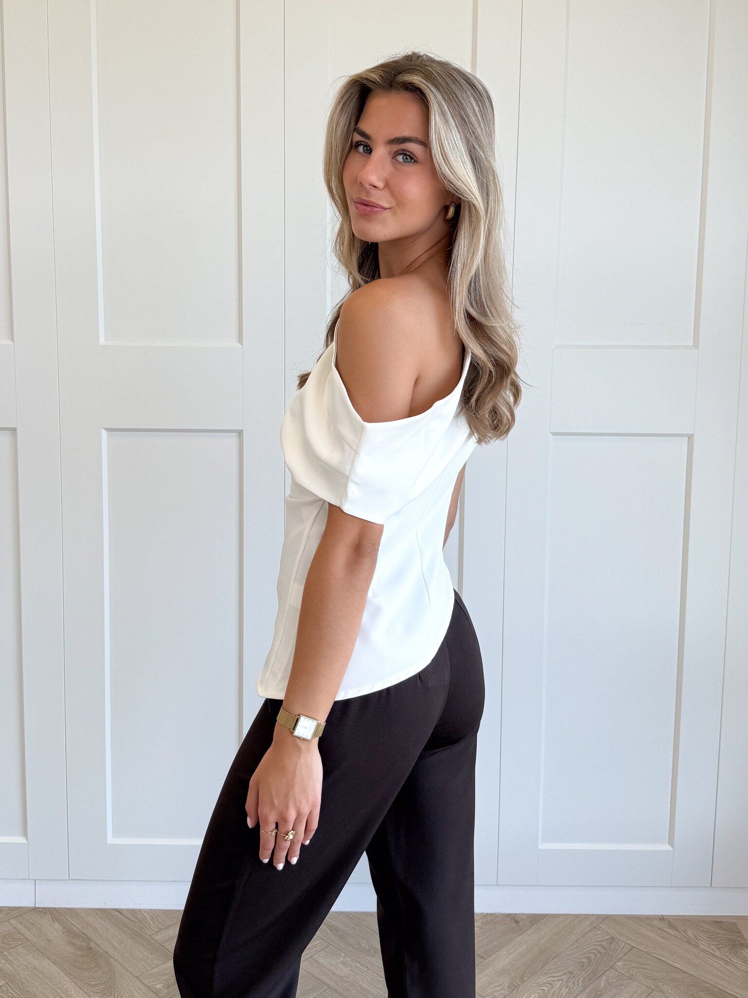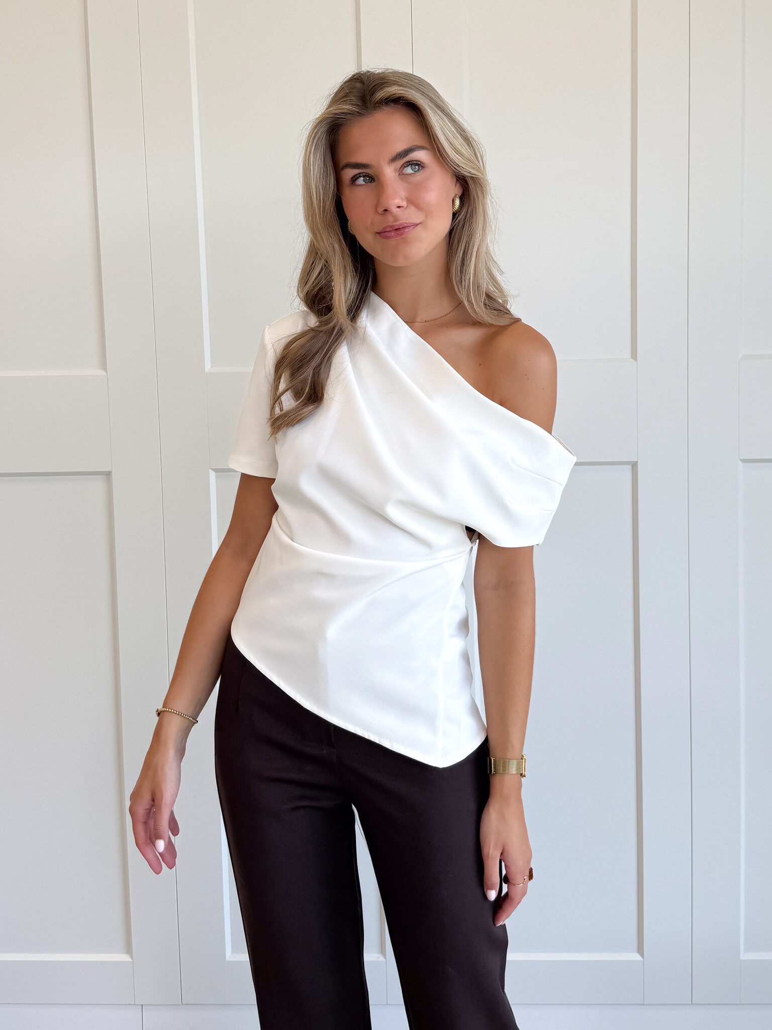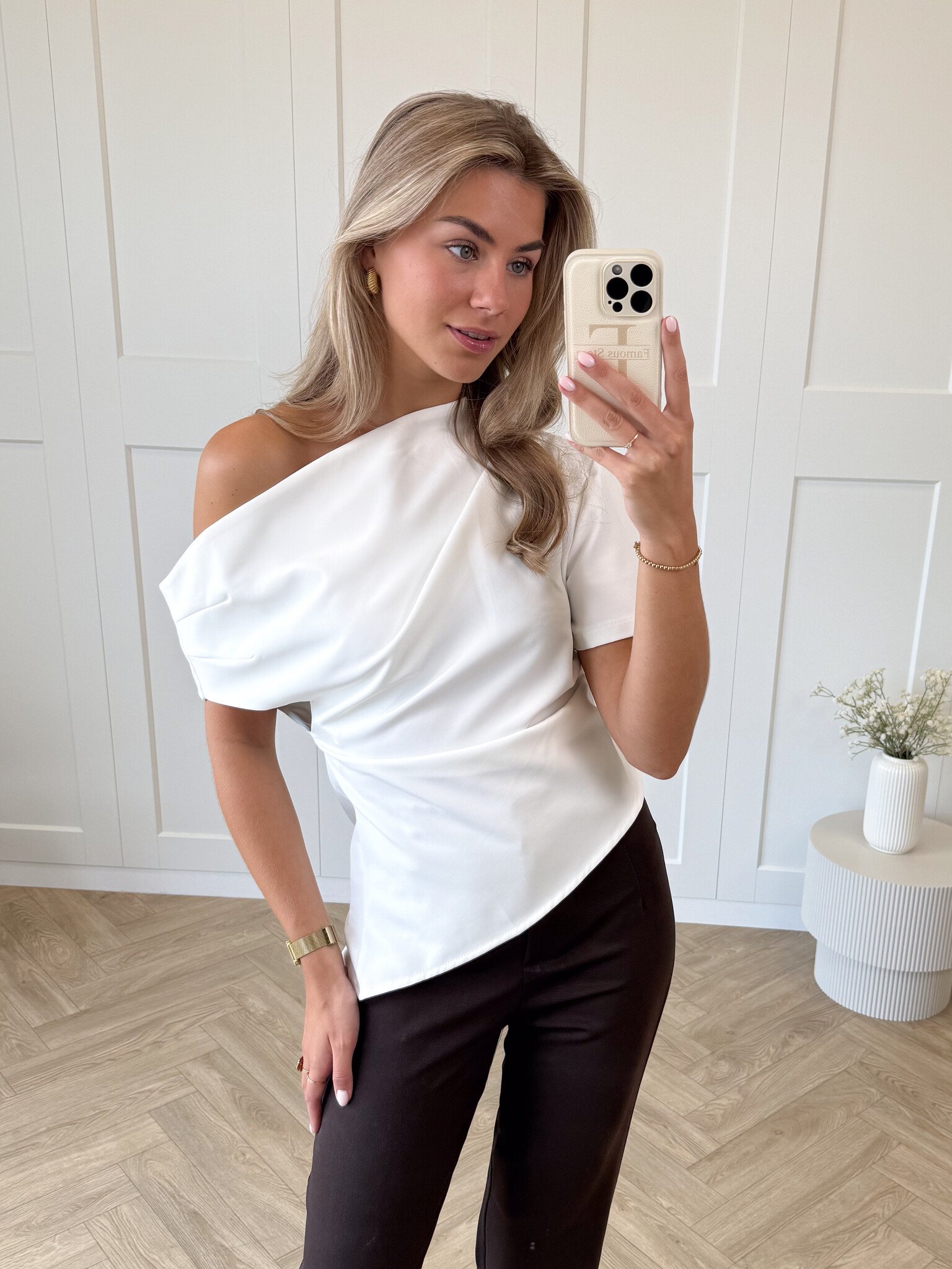 Op zoek naar een top die zowel speels als stijlvol is? Deze one off shoulder top heeft het allemaal: een ritssluiting en ook iets aan stretch. De top sluit perfect aan op je lichaam door de lichte stretch en zorgt voor een flatterende, vrouwelijke fit.