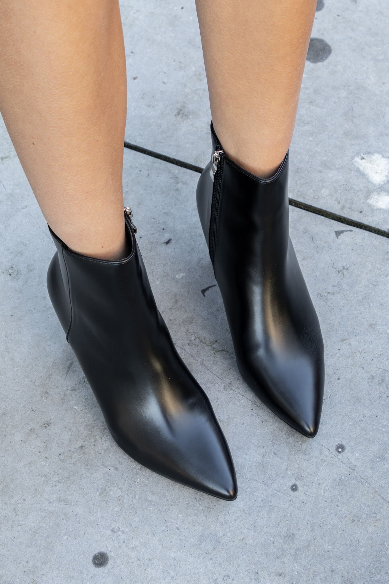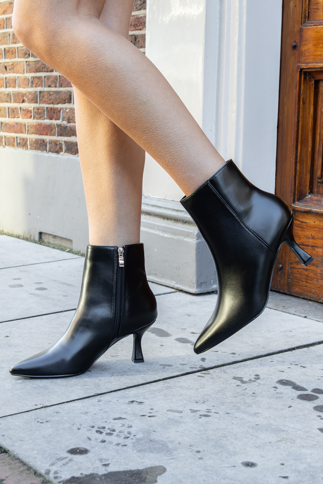De perfecte enkellaars met hak! Deze zwarte boots hebben een rits aan de zijkant en een subtiel hakje. De neus loopt in een punt. Combineer deze laarzen met een jurkje of een pantalon! Voor een tijdloze elegante look.