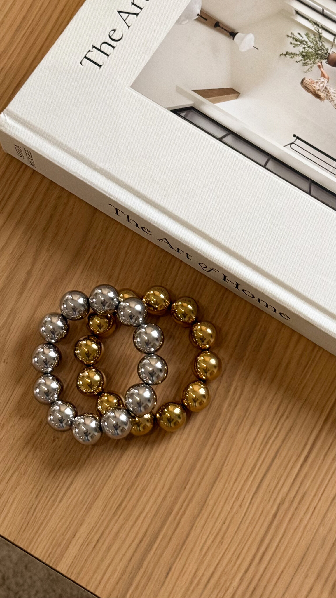 Deze armband is ontworpen met grovere kralen die zorgen voor een opvallende en stijlvolle uitstraling. Dankzij het elastische ontwerp schuif je hem makkelijk om en zit hij comfortabel om de pols. De goudkleurige finish geeft een luxe touch en maakt dit item perfect om te combineren met zowel casual als feestelijke outfits. Draag hem solo als statement piece of mix & match met andere armbanden voor een speelse layered look. Een tijdloos accessoire dat niet mag ontbreken in je sieradencollectie.