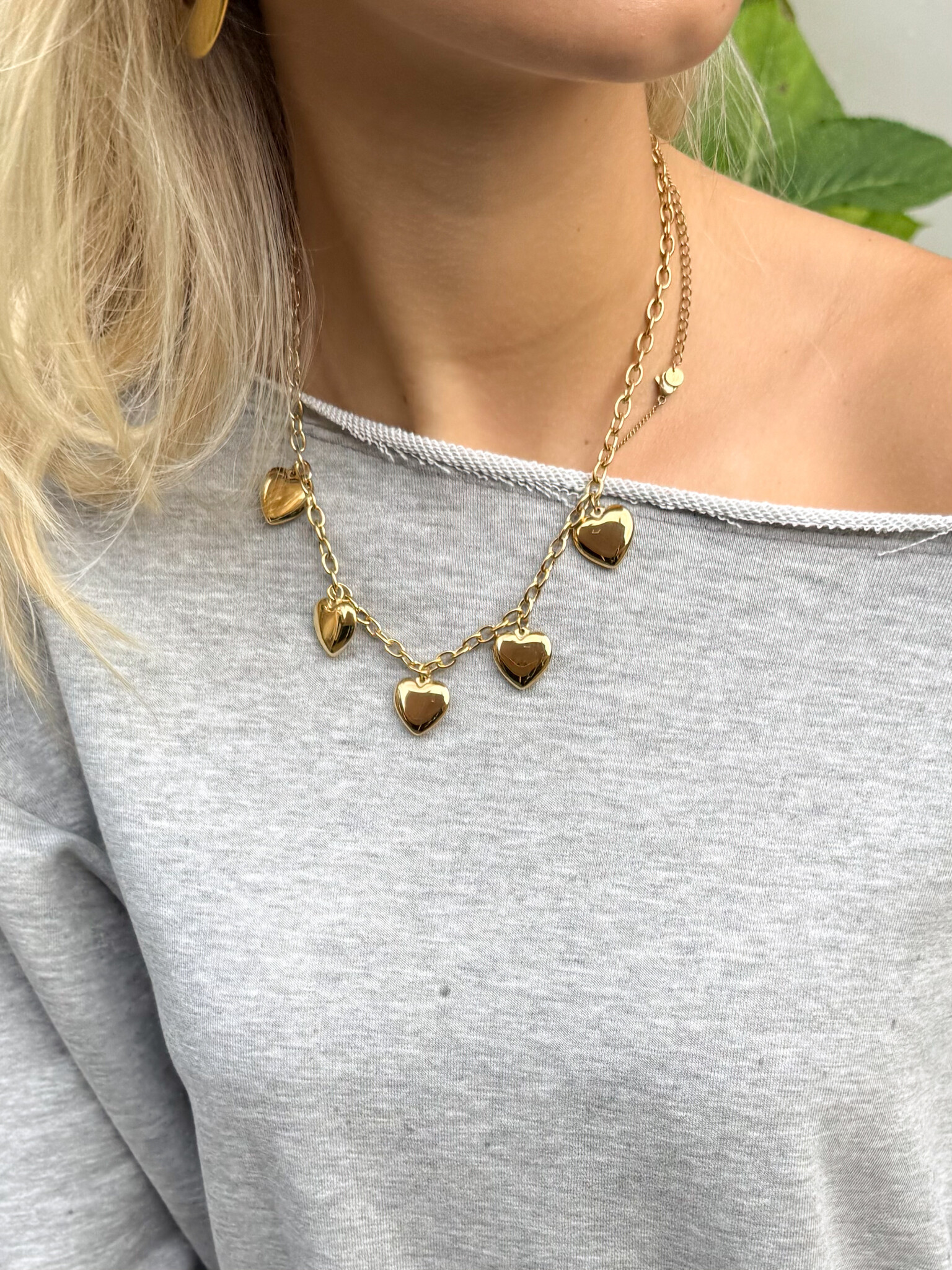 De Golden Affection Necklace combineert stoere schakels met speelse hartjesbedels voor een moderne en romantische look. Draag haar solo voor een subtiel statement of layer met andere kettingen voor een trendy effect. Licht, comfortabel en perfect voor dagelijks gebruik, feestjes of een date night. Een musthave voor elke fashionista die van klassieke romance met een moderne twist houdt.