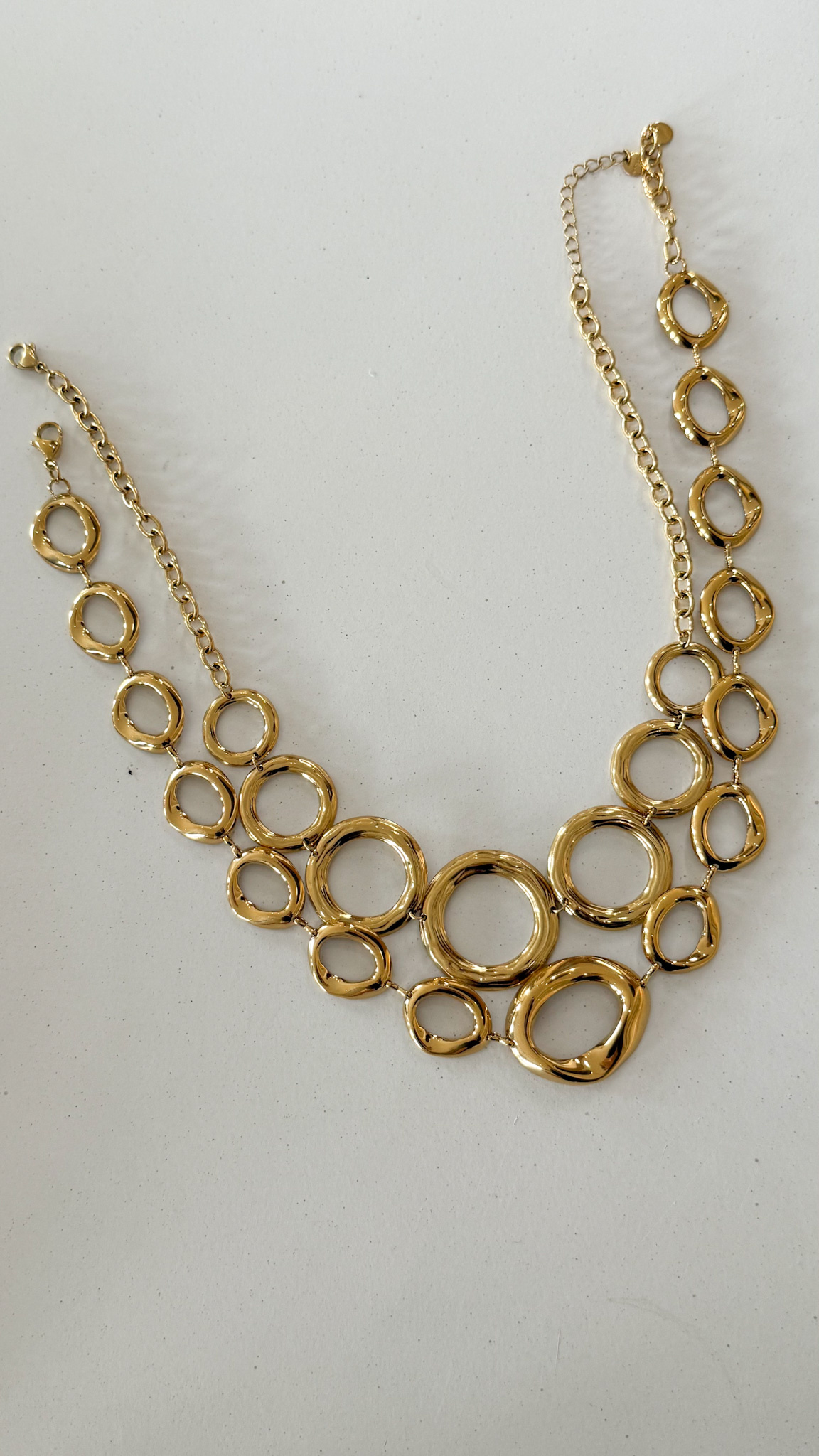 Deze goudkleurige ketting met organische bedel straalt zachtheid, elegantie en een moderne girly vibe uit. De vloeiende, natuurlijke vorm van de bedel geeft het sieraad een unieke en trendy uitstraling, terwijl de glanzende goudkleur zorgt voor een luxe touch. Het ontwerp is subtiel maar toch opvallend, waardoor het perfect is om zowel solo te dragen als te combineren met andere kettingen voor een stijlvolle layered look. Licht van gewicht en comfortabel om de hele dag te dragen, ideaal voor school, werk, een etentje of een avondje uit. Een tijdloos accessoire voor meiden en vrouwen die houden van feminine sieraden met een natuurlijke, chique uitstraling.