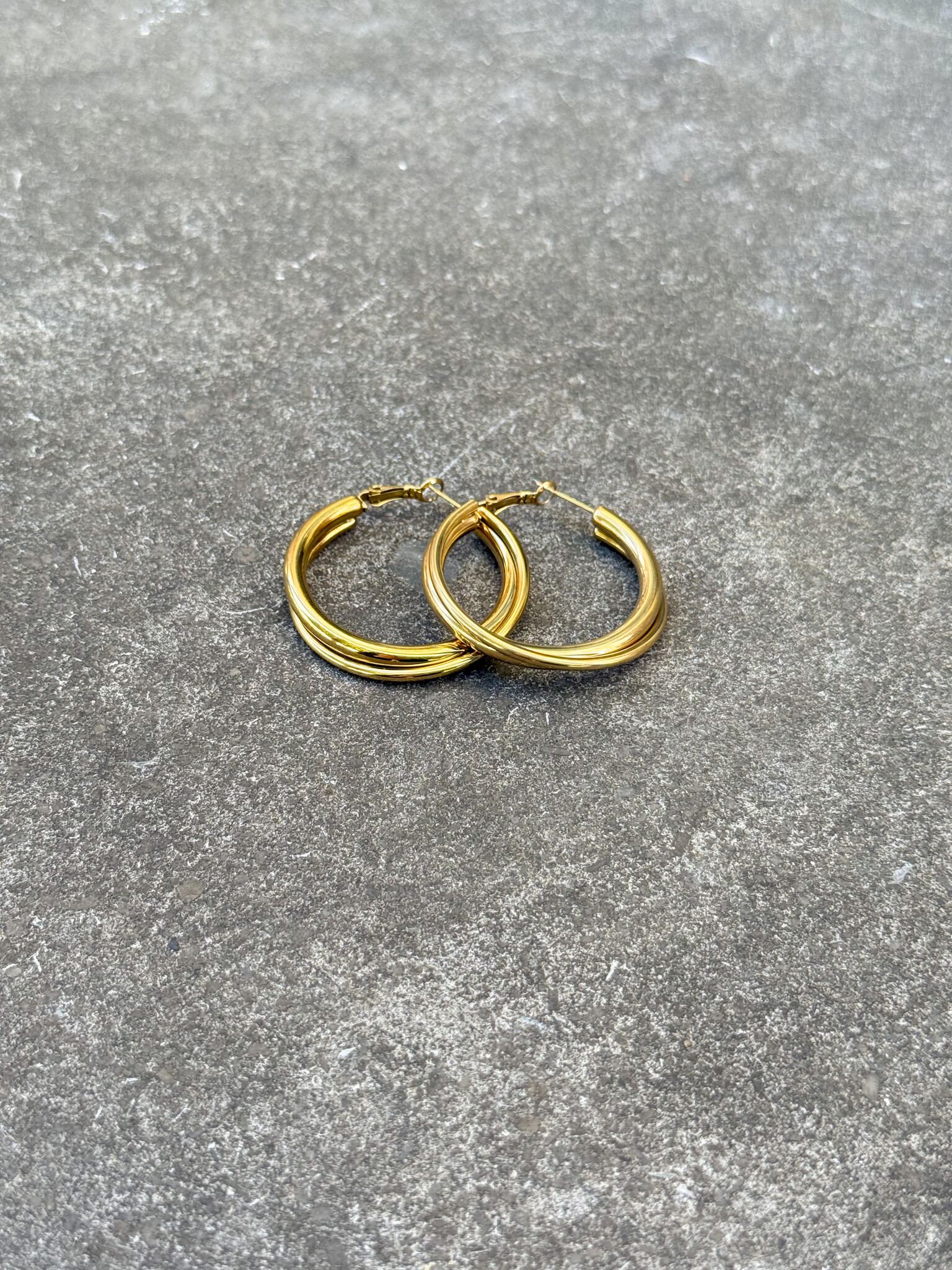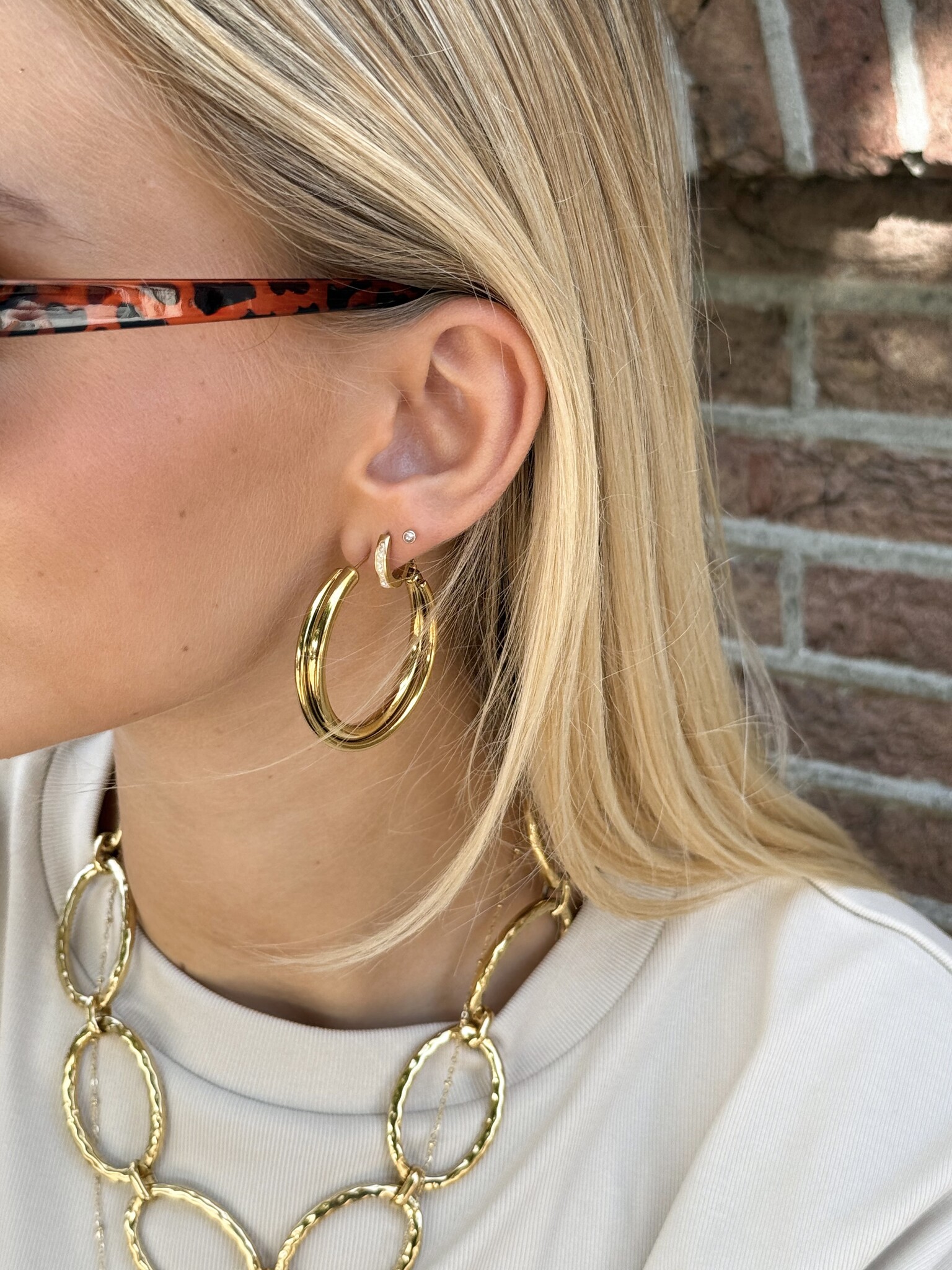 Stijlvolle gouden steek oorbellen met een unieke ronde vorm. Elegant en modern tegelijk, perfect voor elke gelegenheid.