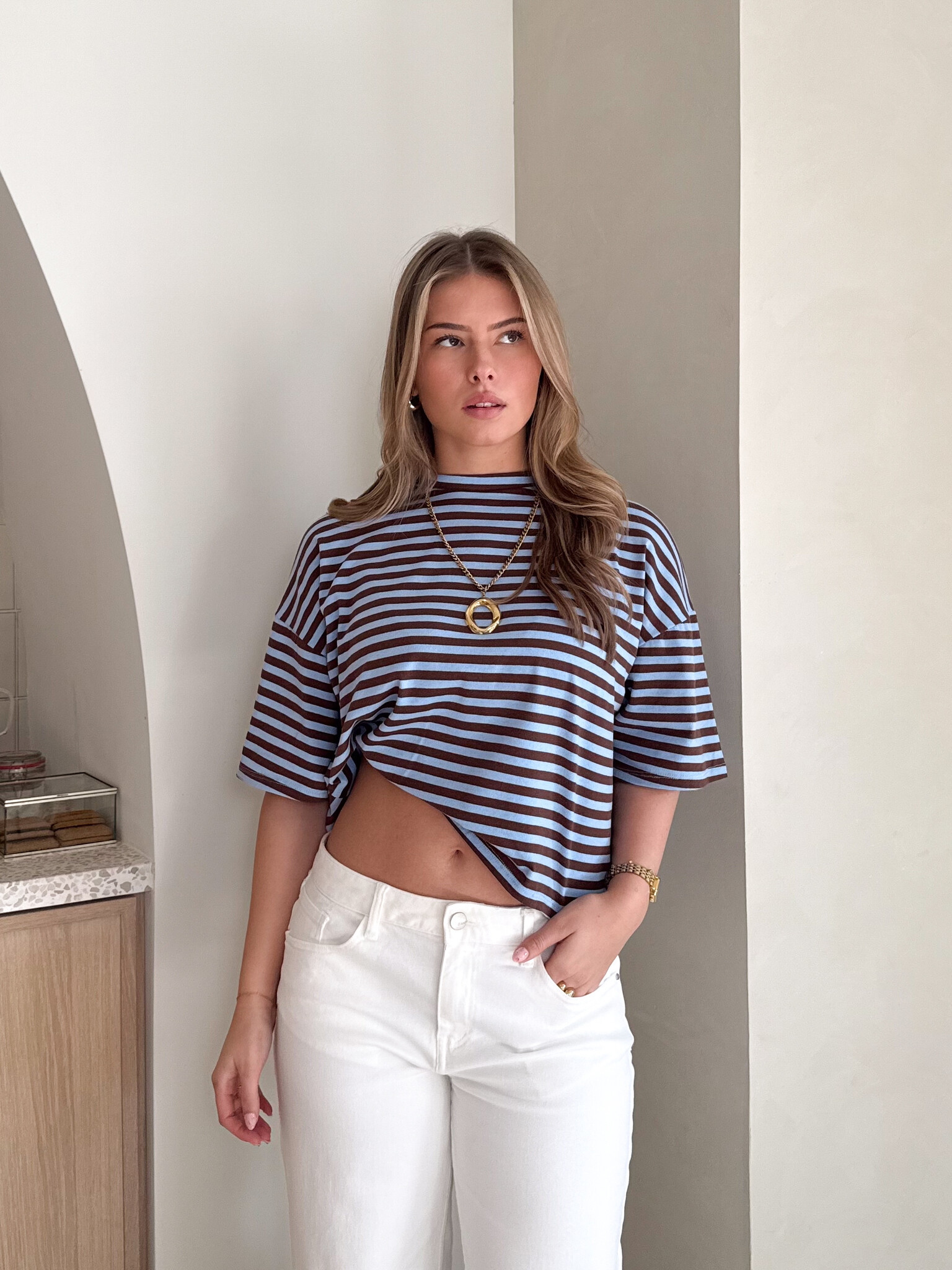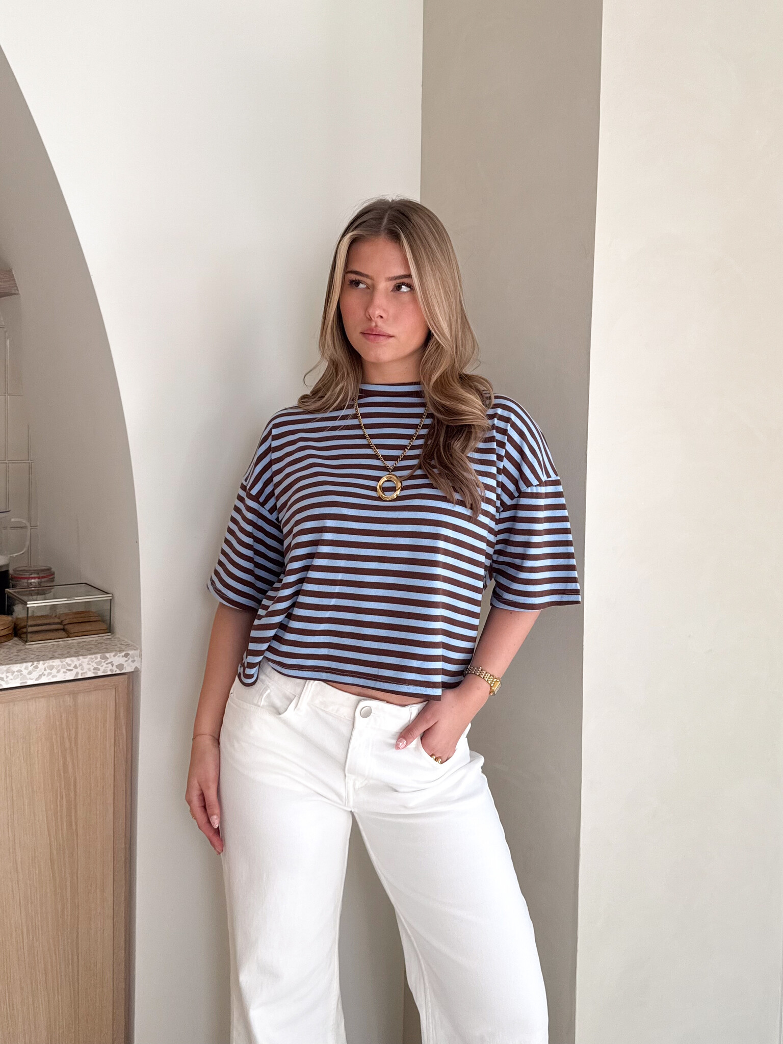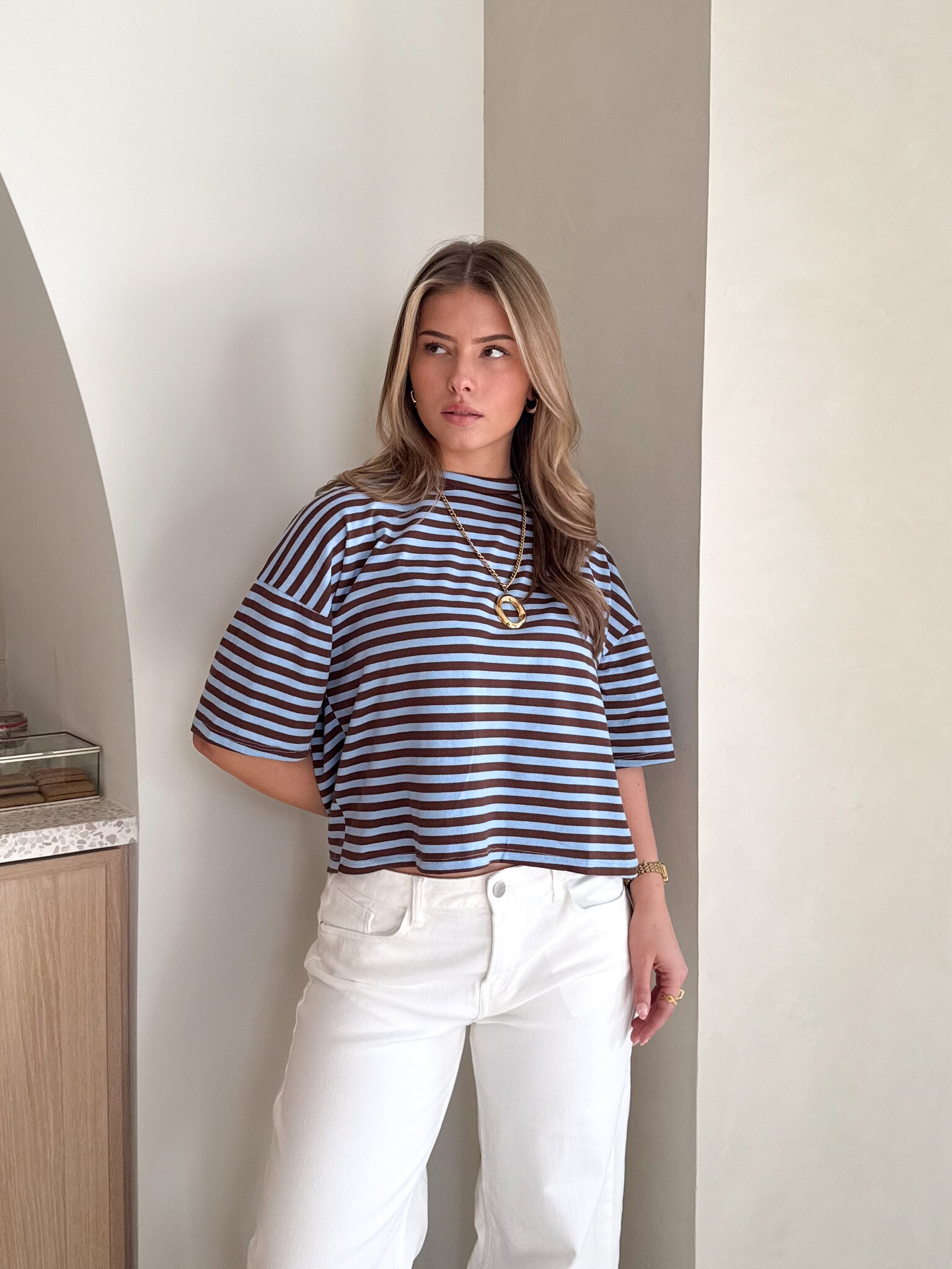 Deze top is een echte eyecatcher dankzij de speelse kleurencombinatie van strepen. De korte mouwen geven een frisse en zomerse uitstraling, terwijl de zachte stof zorgt voor een comfortabele fit. Ideaal om te dragen op een jeans, pantalon of rokje en makkelijk te stylen voor verschillende momenten. Of je nu gaat shoppen, afspreekt met vriendinnen of een casual dagje gepland hebt: dit item maakt je outfit meteen leuker. De combinatie van girly vibes en trendy details maakt dit een favoriet die je steeds opnieuw uit je kast pakt ✨