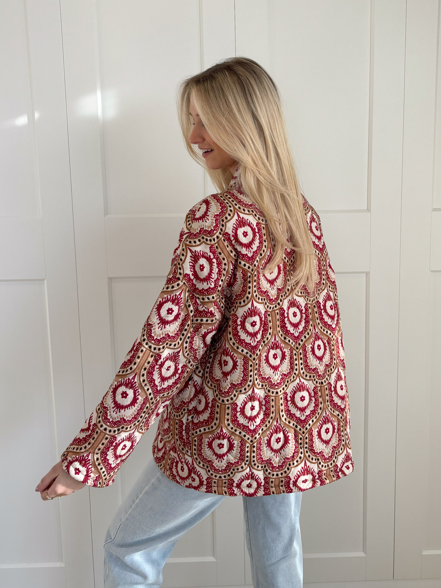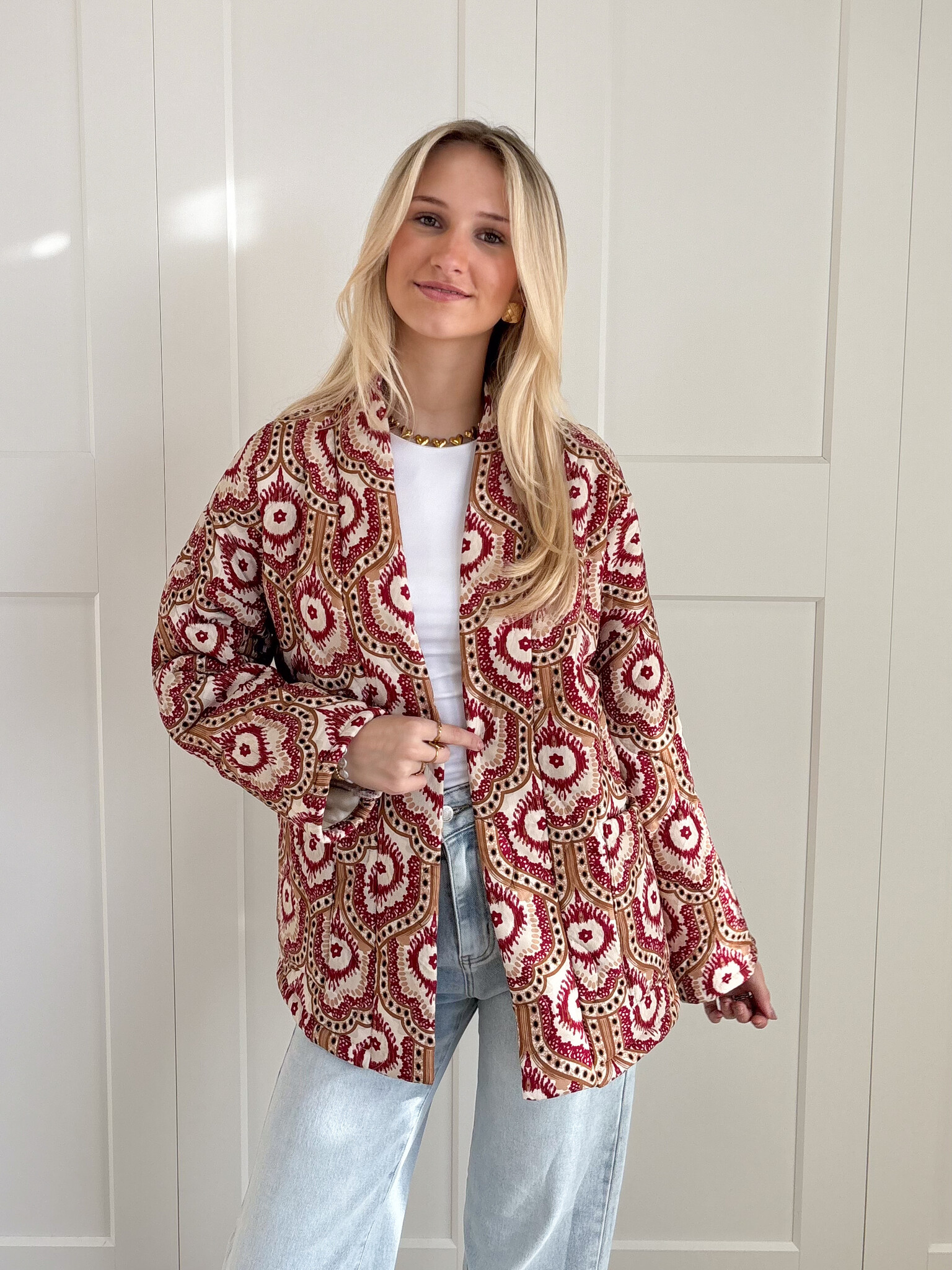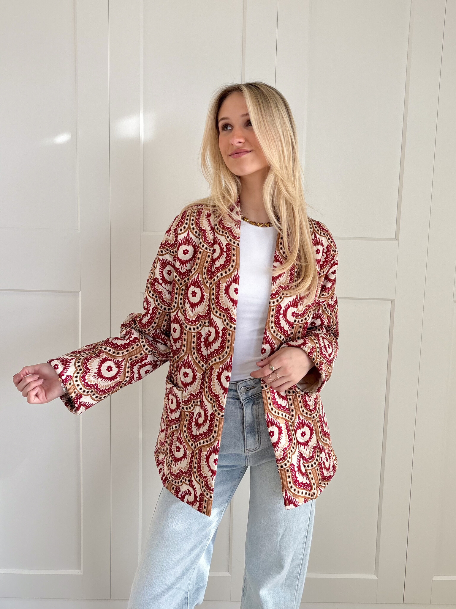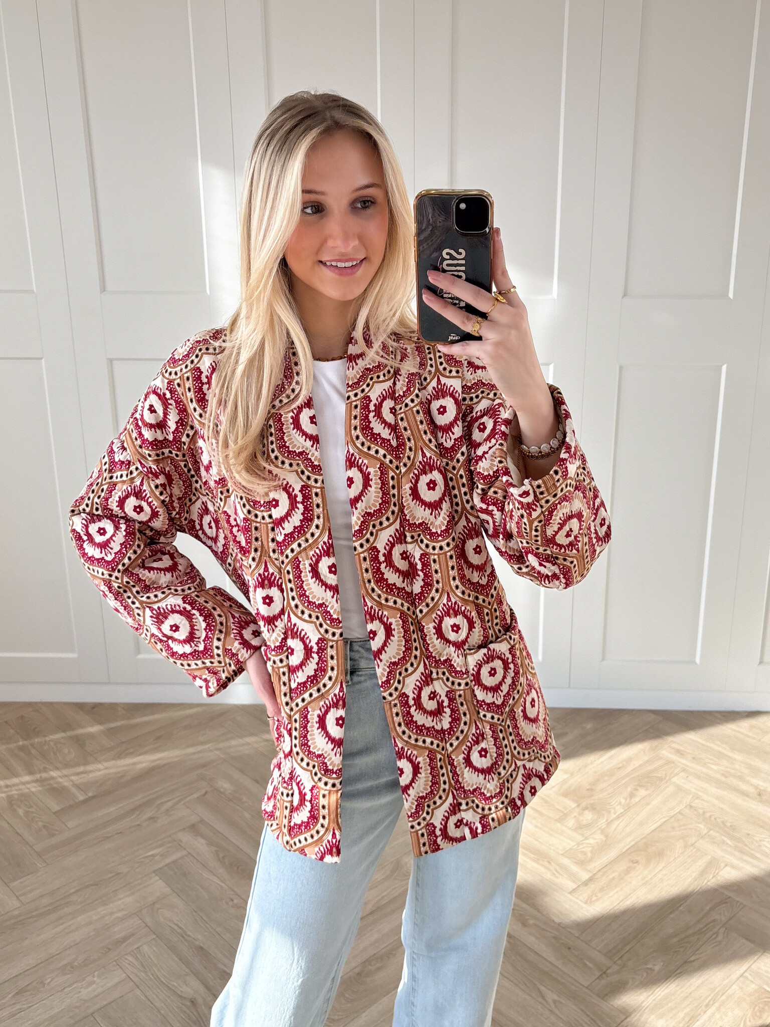 Dit jasje is het helemaal! Dit jasje heeft een mooi patroontje die je outfit helemaal opvrolijkt! De jacket heeft zakken aan beide kanten en valt lekker soepel. De perfecte jas voor een dagje shoppen of festival. Je shopt dit jasje in drie verschillende kleuren. Hoe leuk! Shop nu snel deze fantastische jas!