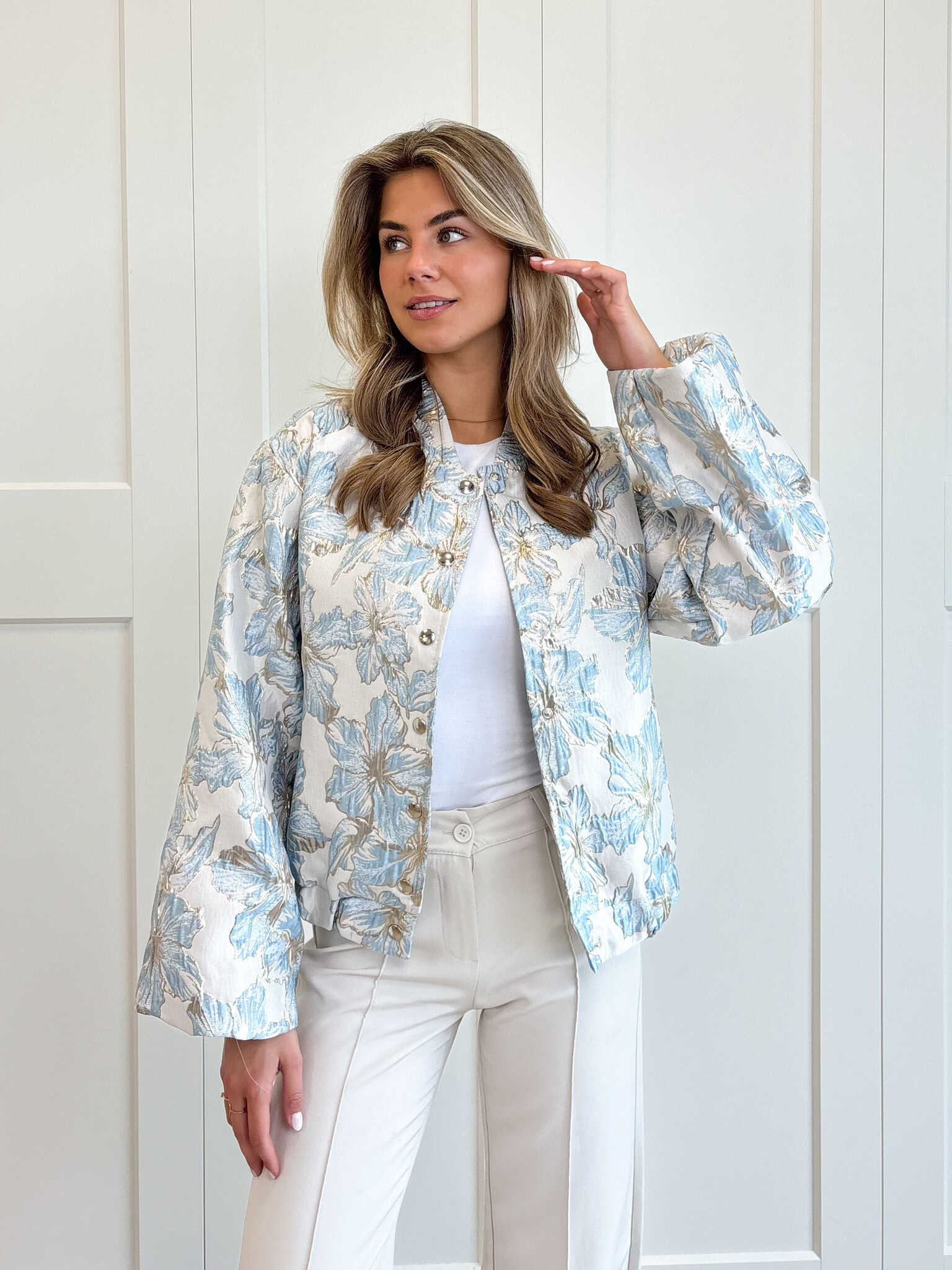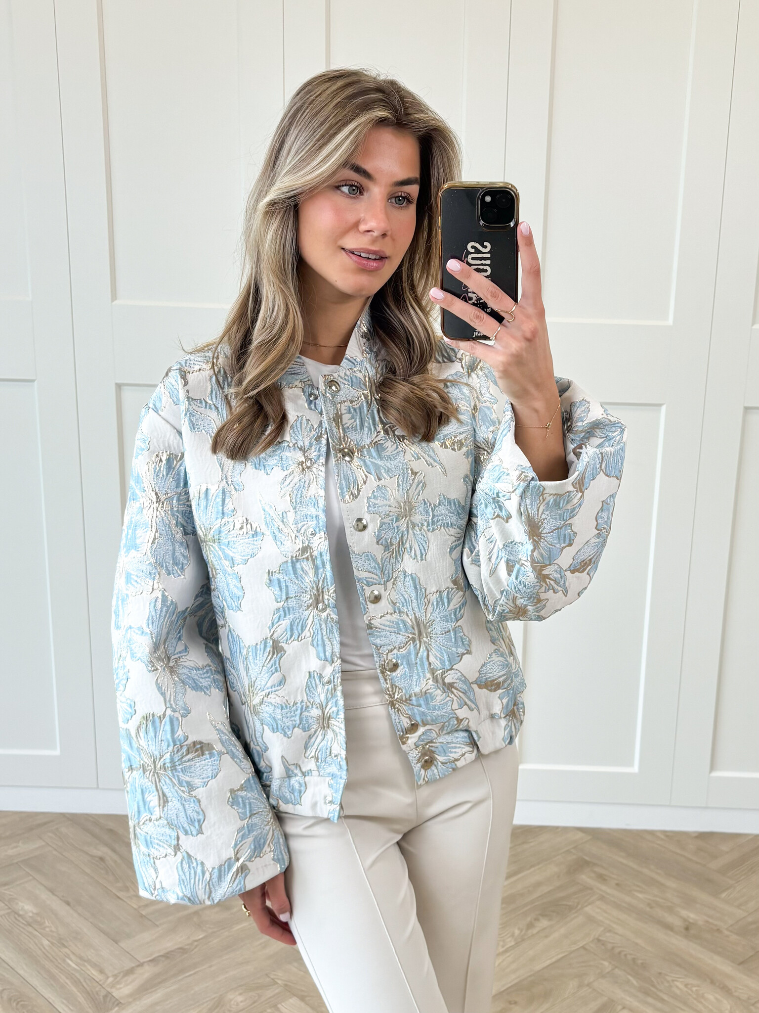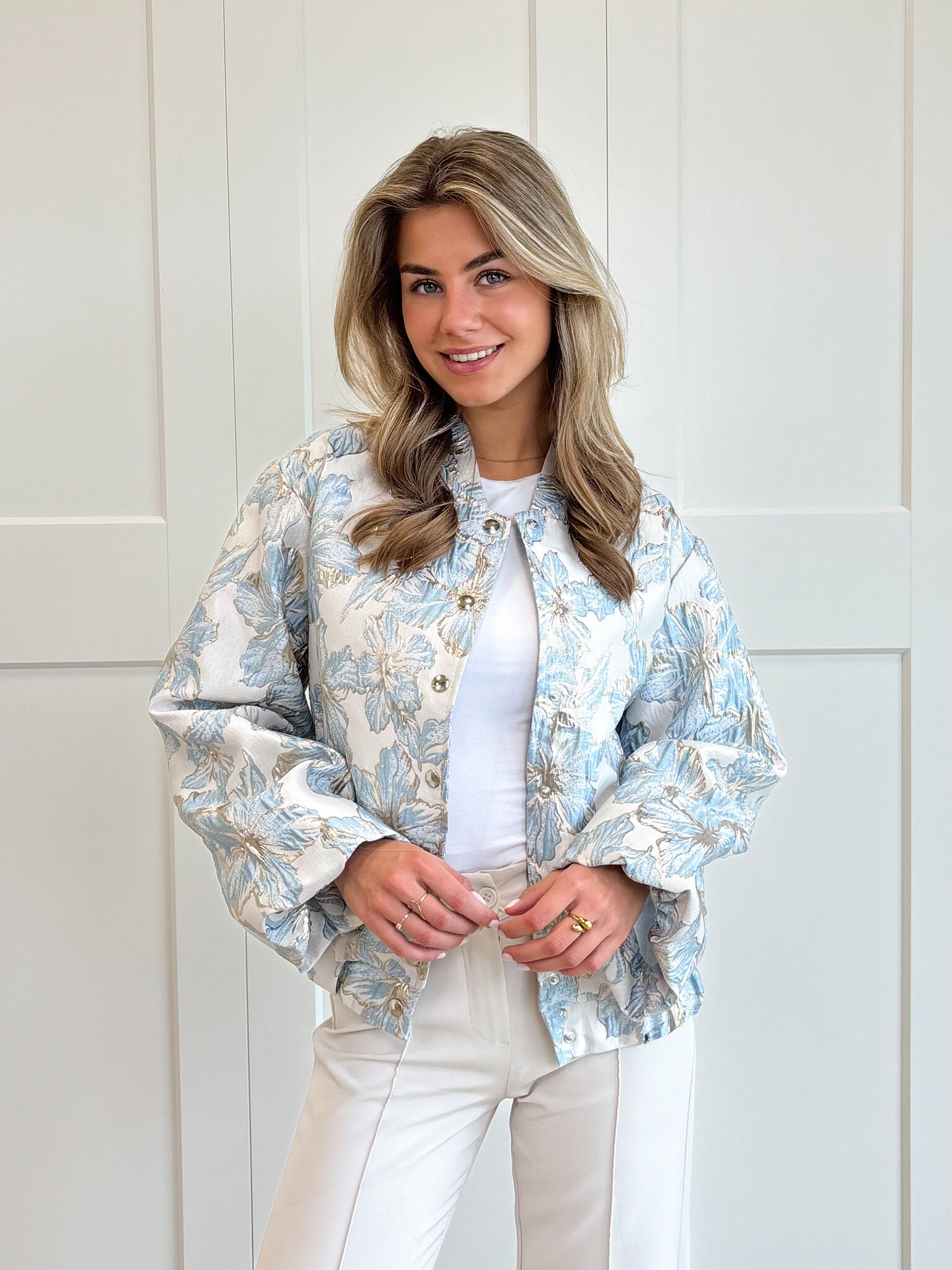 De jas is voorzien van een kleurrijke bloemenprint die een speelse touch geeft. Een prachtig detail van zachte, licht glanzende stof tot de subtiele gouden glinsterende accenten die bij elke beweging het licht vangen. De gouden details zijn verwerkt in het patroon zelf. Een subtiele glamour die net dat beetje extra geeft. De jas heeft een comfortabele pasvorm wat zorgt voor een perfecte aansluiting. Binnenin is hij gevoerd met een gladde, ademende stof die warmte biedt zonder zwaar aan te voelen, ideaal voor het tussenseizoen. Combineer hem moeiteloos met jeans en sneakers voor een casual look, of draag hem over een jurk voor een verrassend contrast. Of je nu een fashion statement wilt maken of gewoon iets zoekt dat zowel stijlvol als comfortabel is. Deze bloemen bomber jas met gouden glans is een echte eyecatcher die elke outfit naar een hoger niveau tilt!