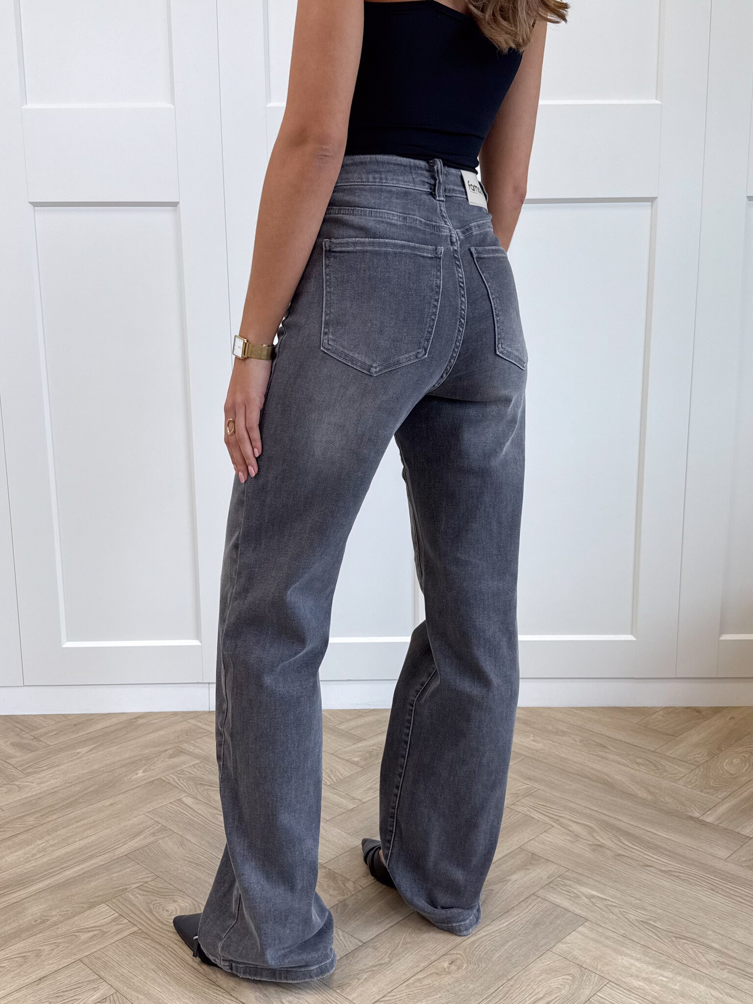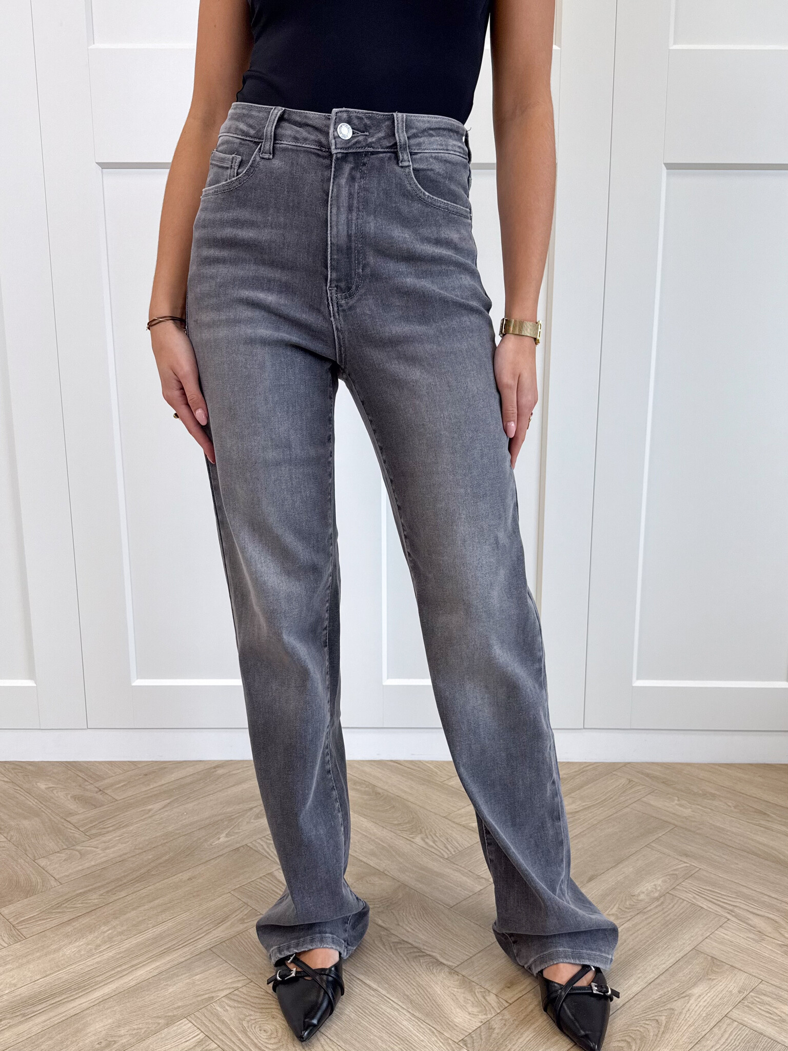 Deze lichtgrijze jeans is de perfecte combinatie van comfort en stijl. De subtiele wassing geeft een frisse, casual look, terwijl de stretchy stof zorgt dat hij heerlijk meebeweegt en een perfecte pasvorm biedt. Dankzij de ritssluiting blijft de jeans tijdloos, maar de moderne grijze tint maakt hem extra veelzijdig. Combineer hem met een oversized trui voor een relaxte look, of met een blouse en boots voor een casual-chic outfit.