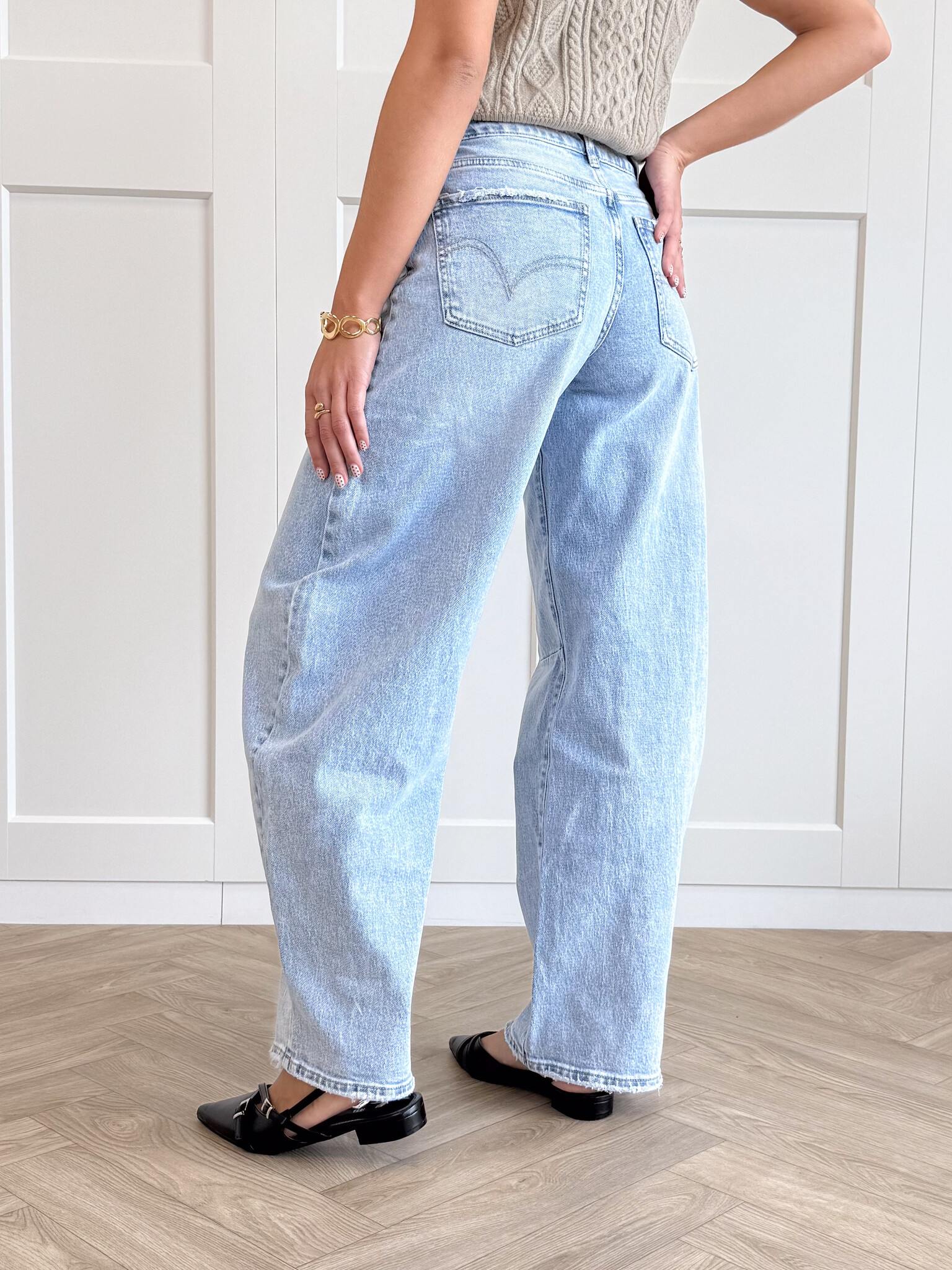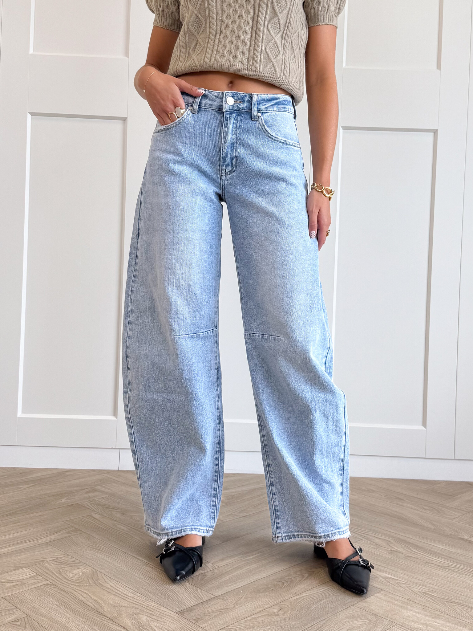 De klassieke blauwe kleur maakt deze jeans veelzijdig en makkelijk te combineren met verschillende tops, sneakers of enkellaarsjes. Dankzij de unieke ballonvorm en de lichte tapering bij de enkels krijgt de broek een speelse, trendy twist die perfect past bij zowel streetstyle- als casual chic outfits. Ideaal voor een dagje shoppen, een koffiedate met vriendinnen of een relaxte werkdag.