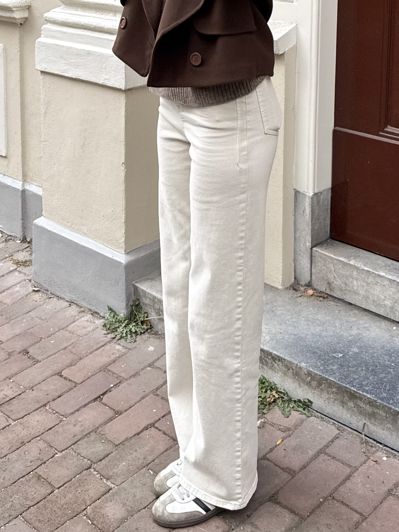 Wat deze jeans echt bijzonder maakt, is dat hij niet alleen een trendstuk is, maar ook een tijdloze basic. De beige tint geeft je outfit een frisse en moderne uitstraling, die je zowel in de lente en zomer als in de herfst en winter kunt dragen. Hierdoor wordt dit zo’n broek die je het hele jaar door uit de kast pakt.