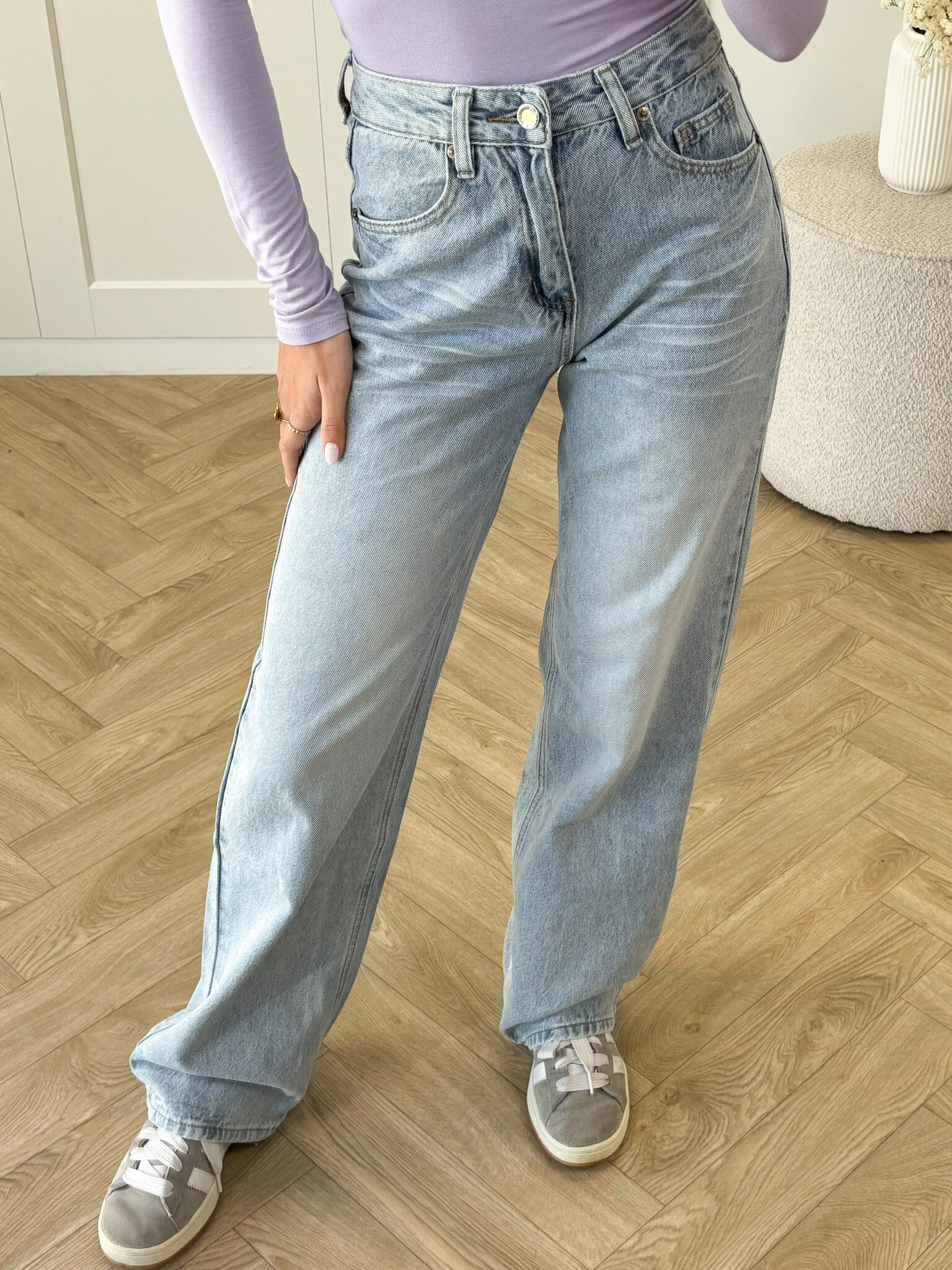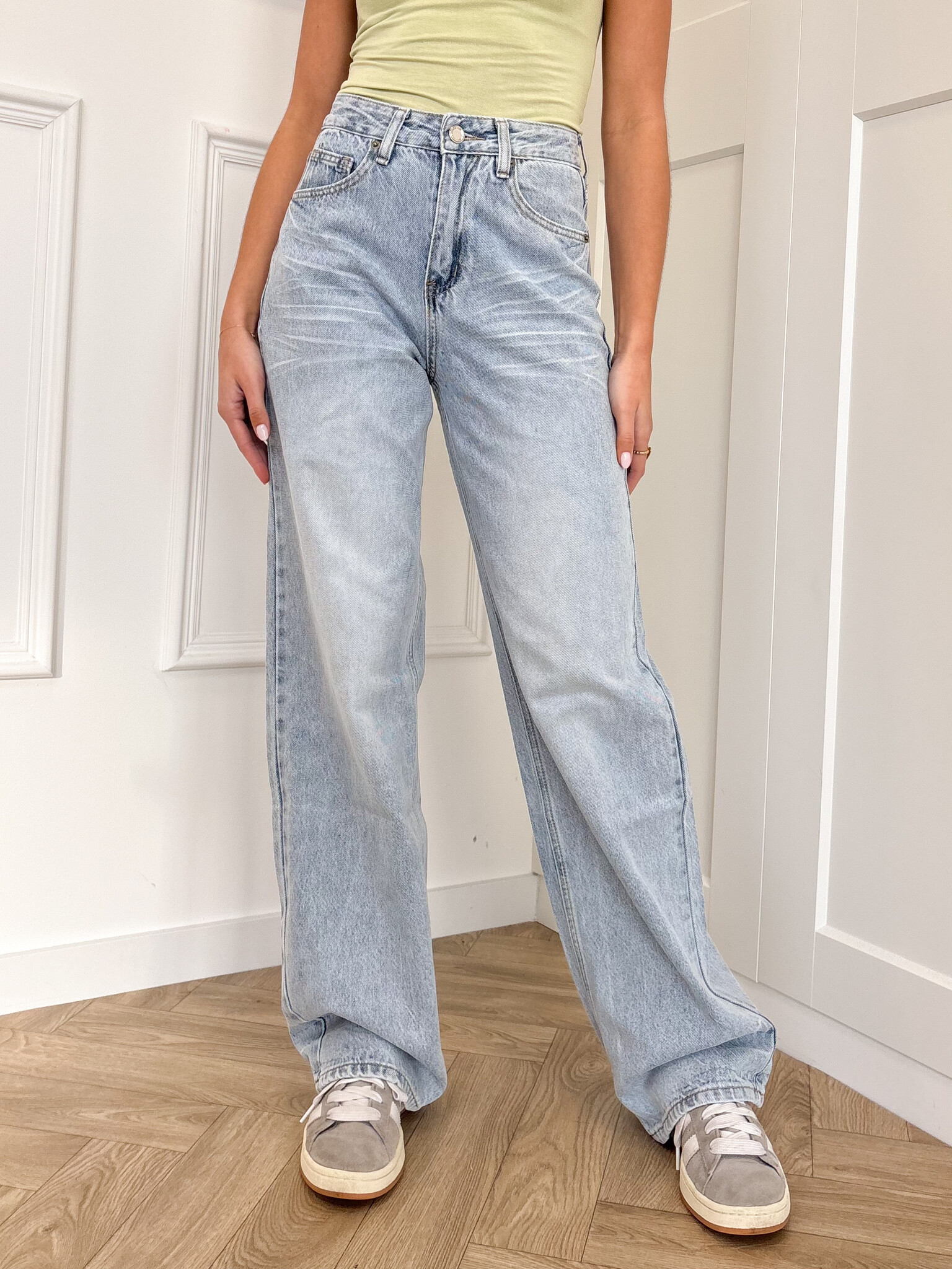 Deze straight leg jeans is een musthave! Het is een high waist model en valt soepel. De lichte wassing geeft een stoere touch. De perfecte jeans voor every day!