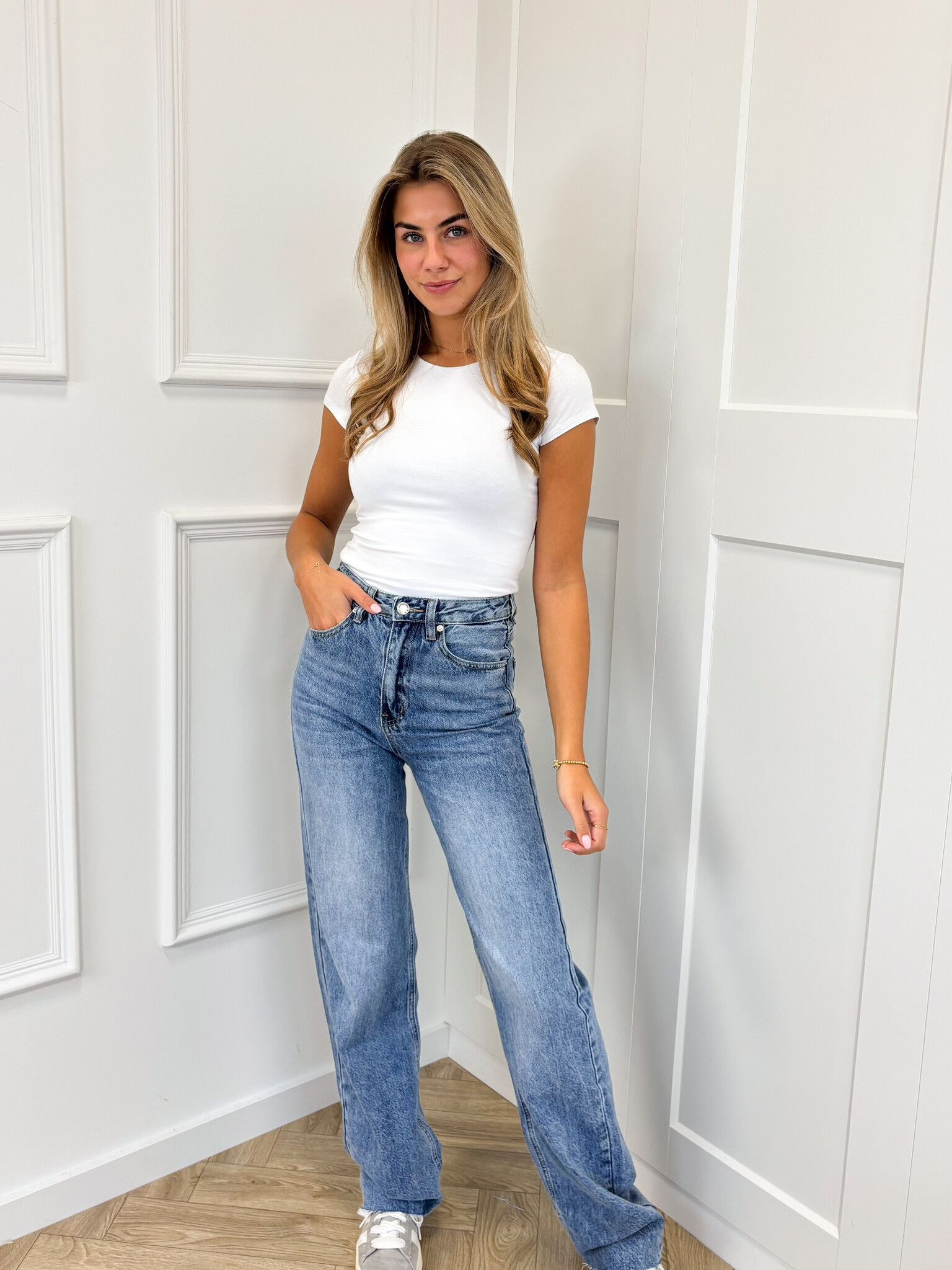 Deze straight leg fit model jeans is een musthave! Het zit heerlijk door de lichte stretch en sluit daardoor perfect aan. Het is een mid waist model en de onderkant heeft een leuke ruffel. Deze perfecte every day jeans kan je niet missen in je kledingkast!