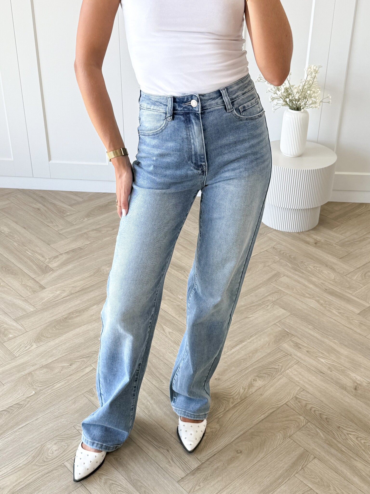 Say hello to je nieuwe go-to jeans! Deze blauwe denim heeft een straight leg met een losse fit die relaxed valt, maar toch mooi in shape blijft. Dankzij de stretch draagt hij super comfortabel, en de extra lengte maakt hem perfect voor lange dames. Combineer met sneakers voor een casual look of met hakken voor effortless chic.