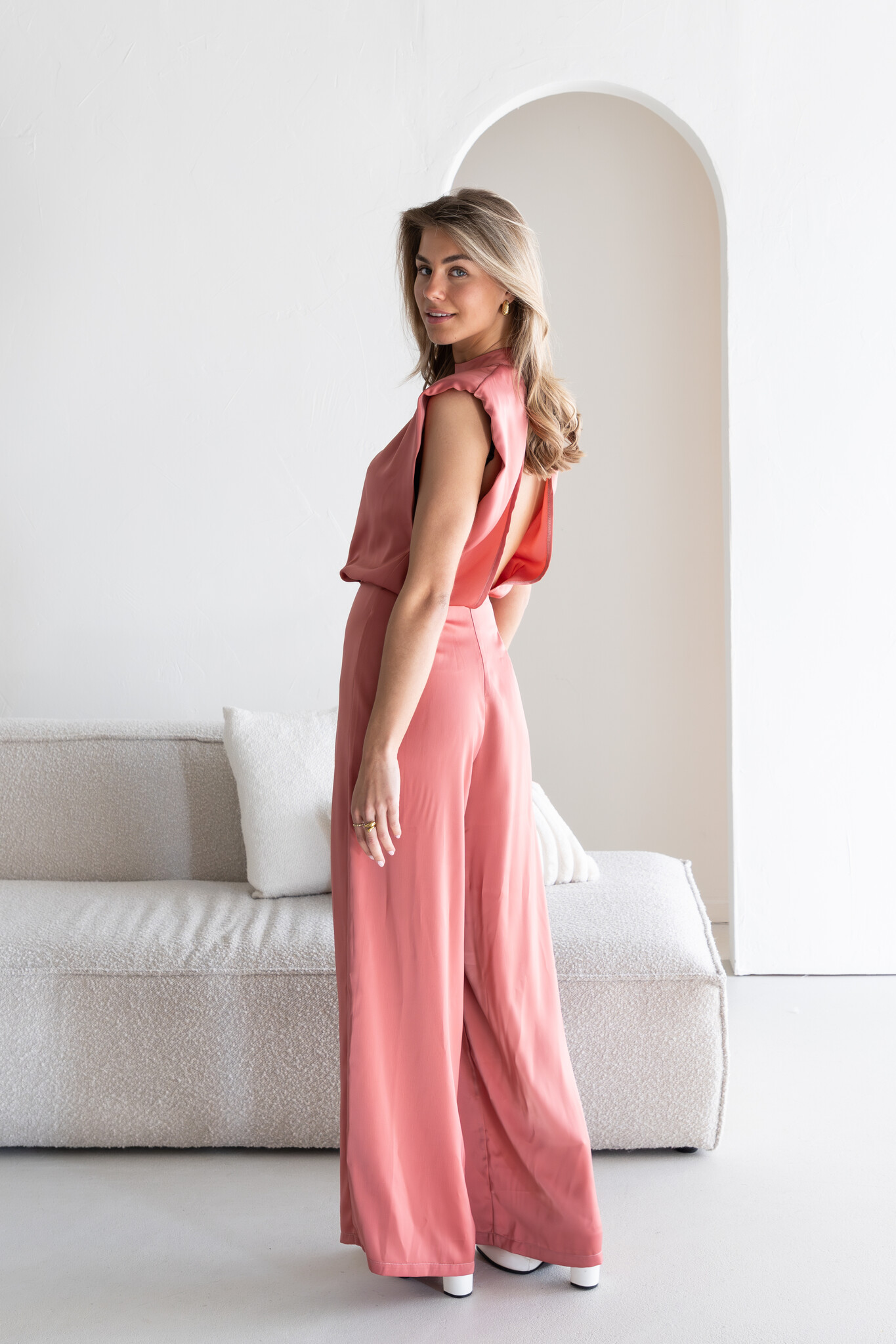 Byebye keuzestress! Weet je niet wat je aan moet trekken? Met deze satin jumpsuit met open back heb je in één keer een complete on-trend outfit. Ideaal voor een feestje, festival, bruiloft of een diploma uitreiking. Voor een classy look, draag dan een mooi paar pumps onder de satin jumpsuit. Satijn is een gevoelige kwetsbaren stof, wij zijn dan ook niet verantwoordelijk voor draagschades zoals haaltjes en ladders in het materiaal. Je shopt deze mooie jumpsuit in verschillende leuke kleuren!