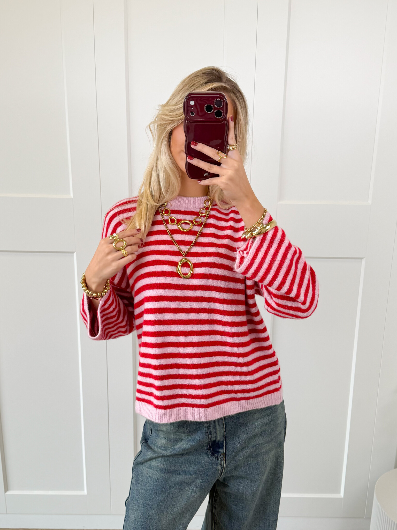 Strepen trui Fien rood/roze