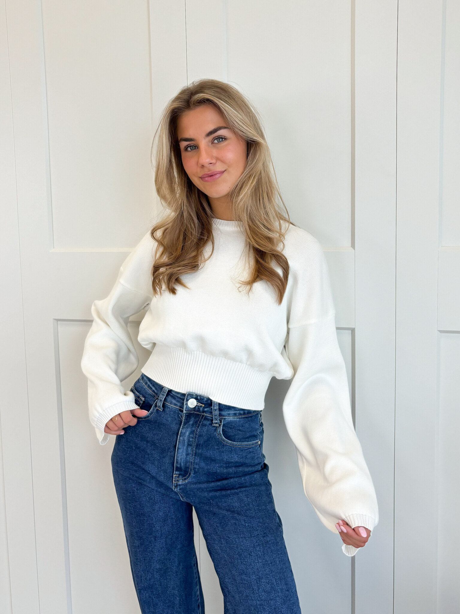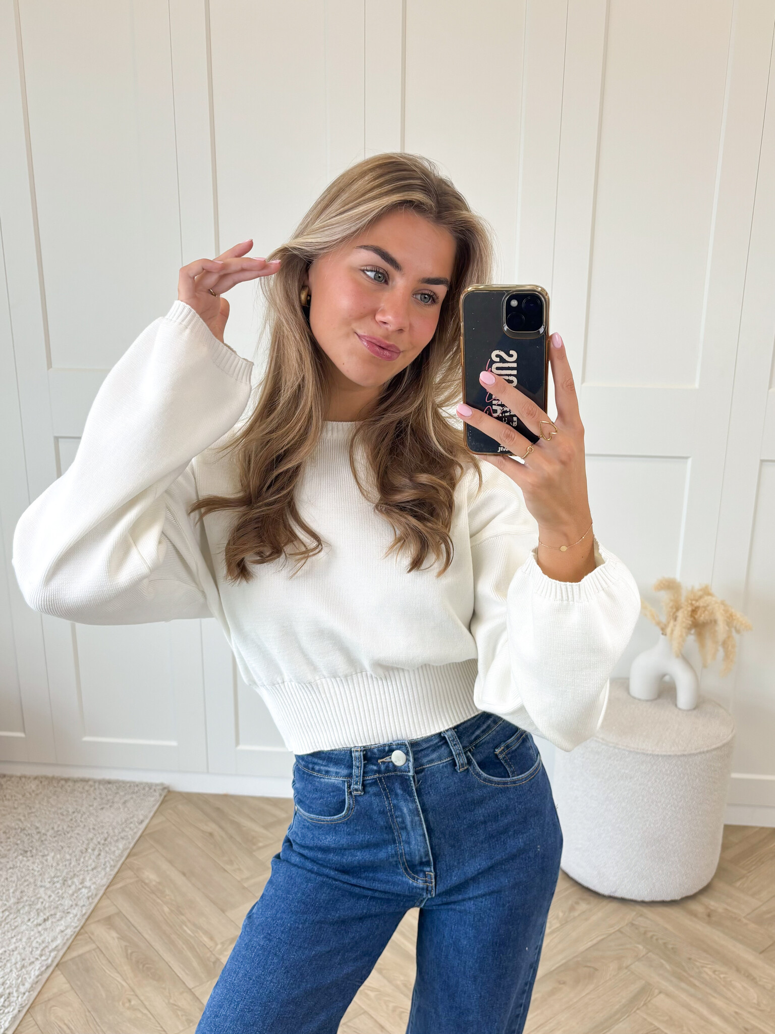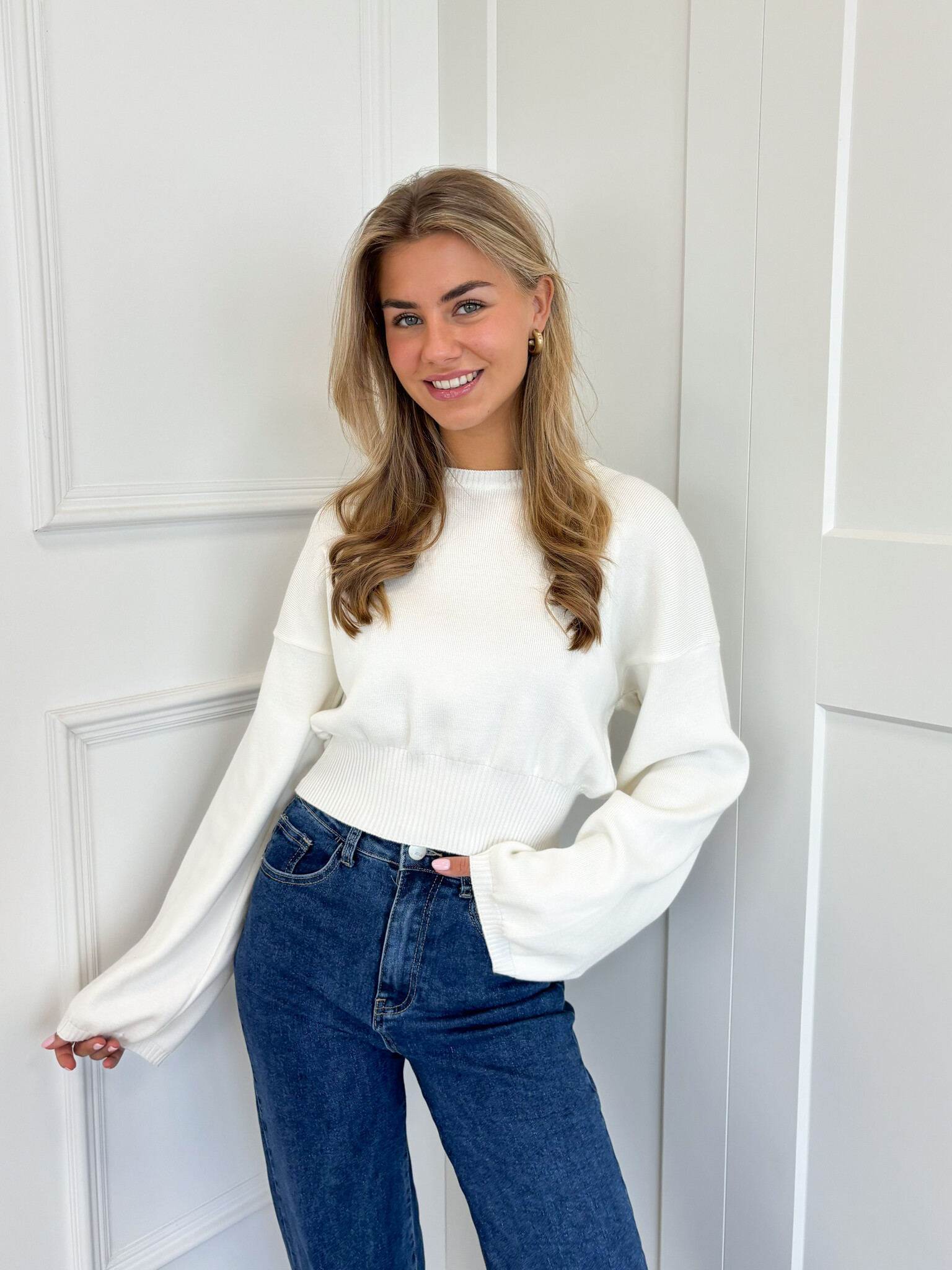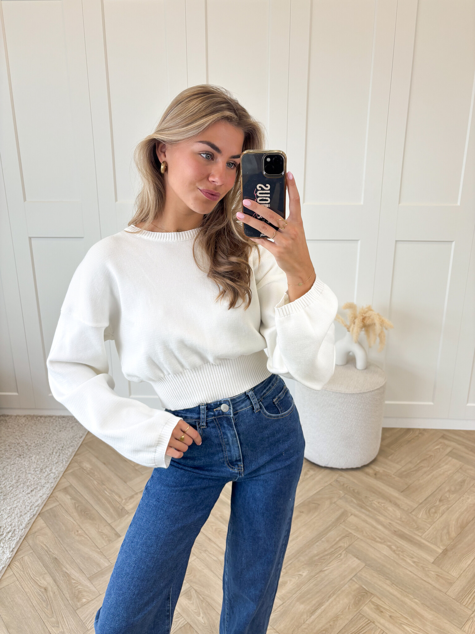 De perfecte basic trui! Door de cropped model maakt dit een echte musthave. Deze trui zit aan de onderkant wat getailleerd, waardoor het een mooi model geeft. Een tijdloze trui die je gemakkelijk overal op kan combineren. Dit truitje valt mooi soepel en houdt je lekker warm voor de koudere dagen.
