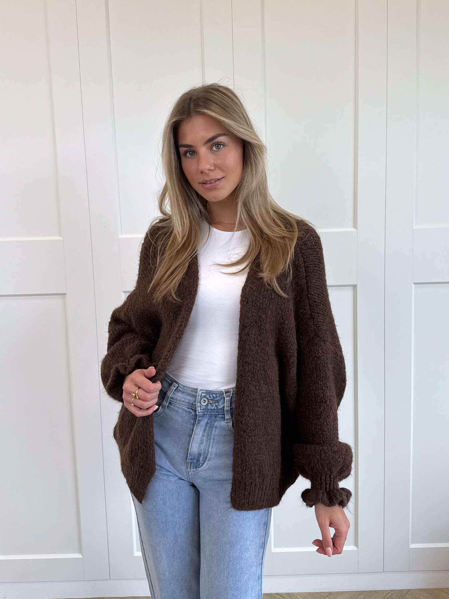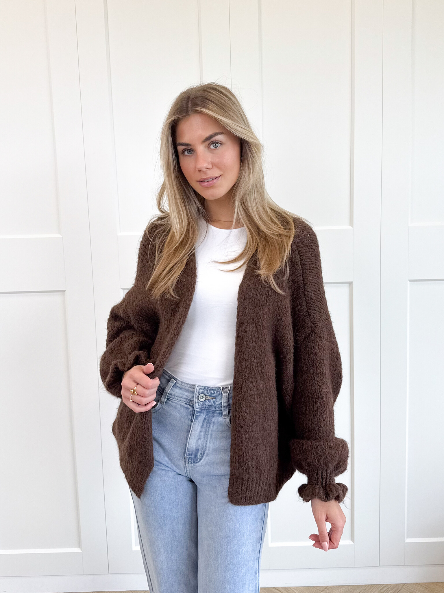 Oehh... een heerlijke vest! Deze prachtige vest heeft super leuke ruffels aan de mouwen. Het zit lekker en is gemakkelijk te combineren. Je shopt dit vestje in meerdere kleuren