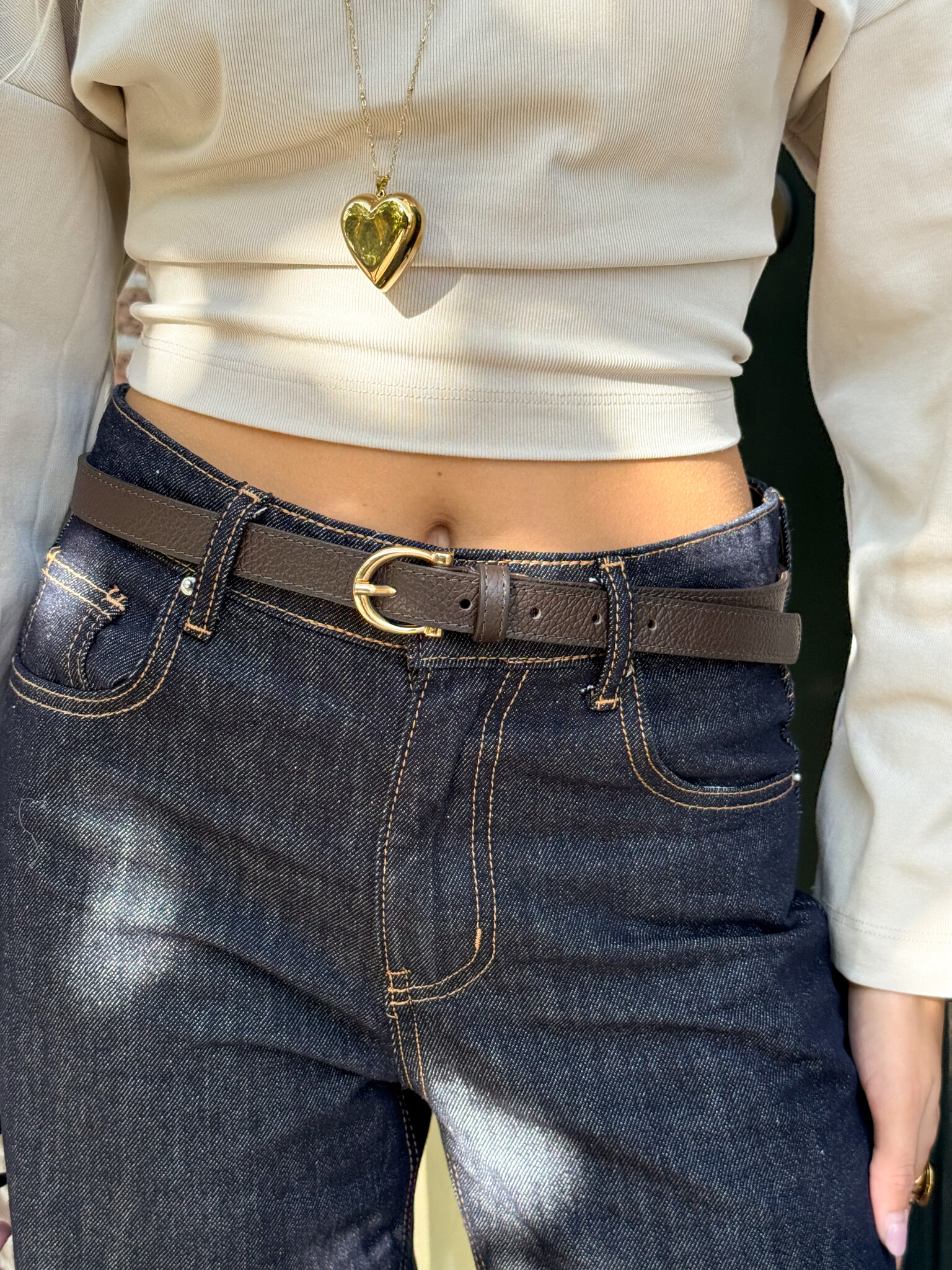 Deze riem is gemaakt van hoogwaardig echt leer en straalt klasse en kwaliteit uit. De warme bruine kleur maakt hem eenvoudig te combineren – of je nu een casual jeans draagt of een nette broek. De gesp is goudkleurig.
