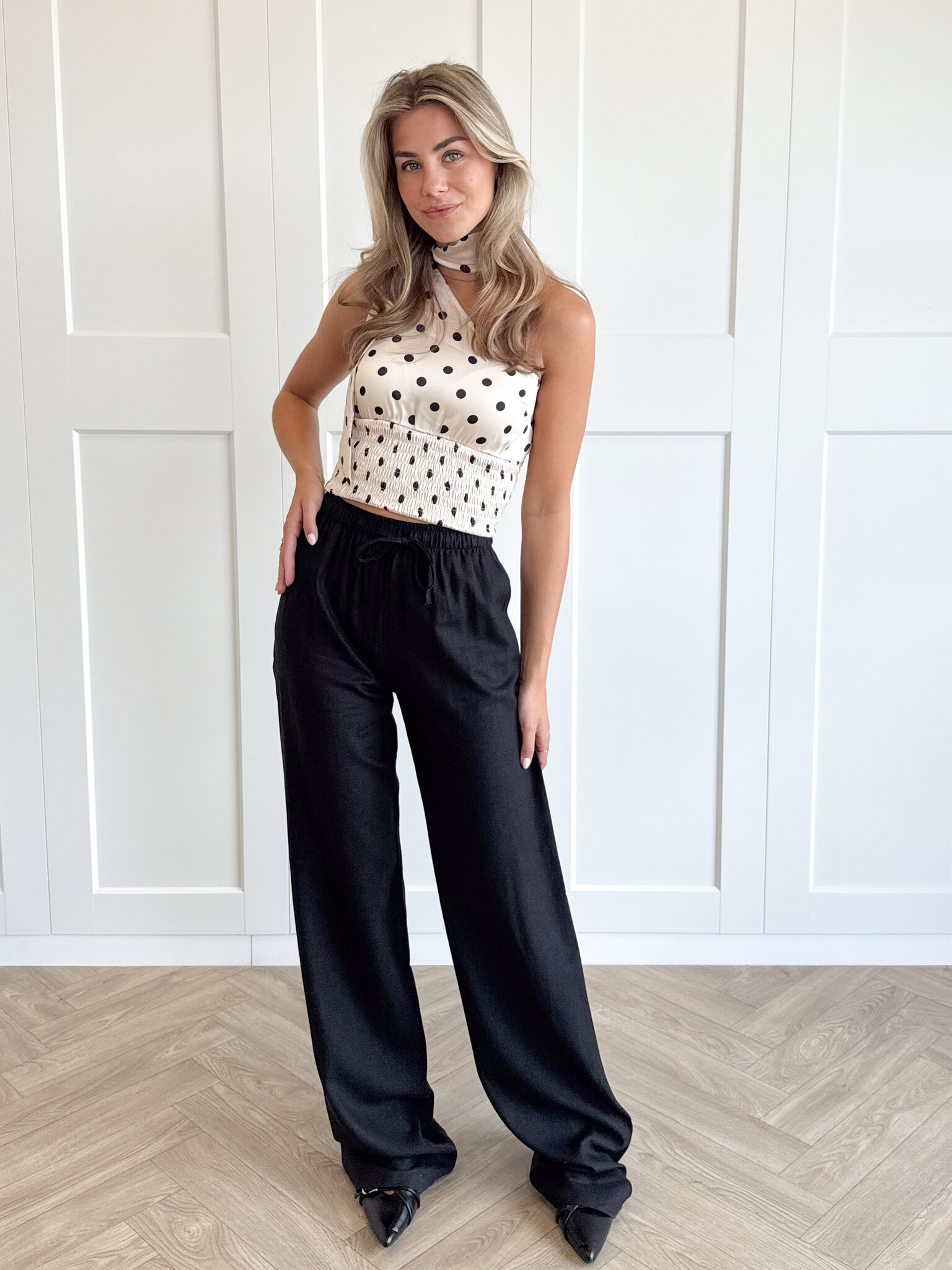 Say hi tegen jouw nieuwe favoriete zomerbroek! Deze zwarte linnen high-waist pants is speciaal ontworpen voor de tall girls onder ons. En yes, dat betekent: eindelijk een broek die écht lang genoeg is voor meiden tot 1.90 m.