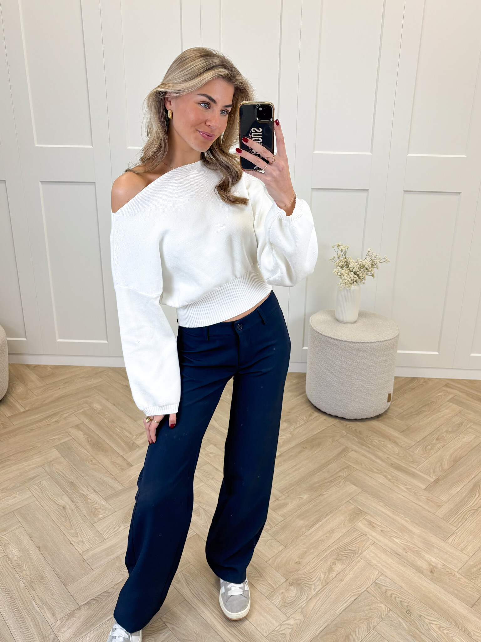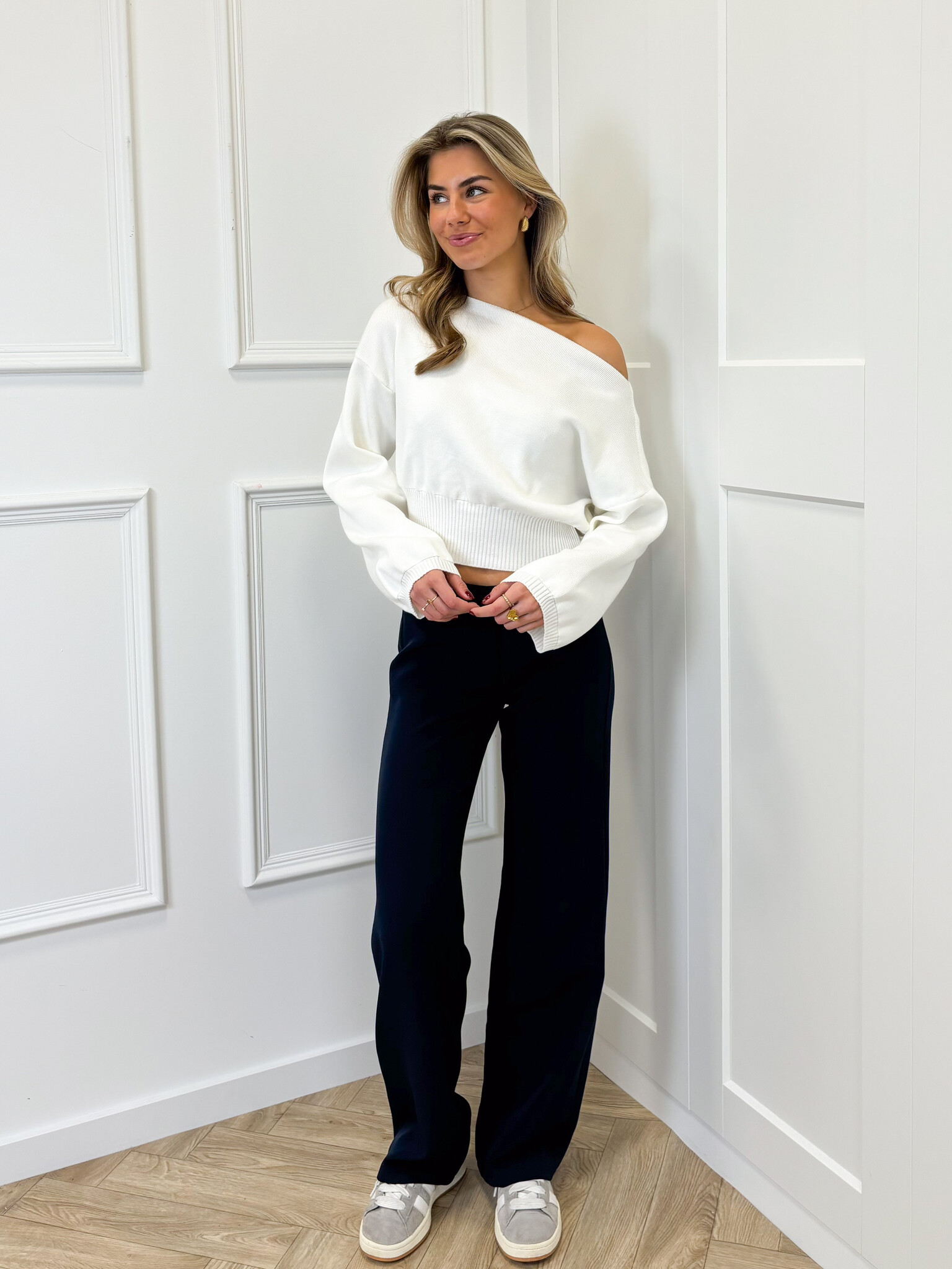 Dankzij de wide-leg pasvorm en rekbare stof voelt hij relaxed aan, maar oogt hij ook smart en polished. De verschillende kleurmogelijkheden maken dit item extreem veelzijdig. Een mix met lichte tinten en donkere basics.